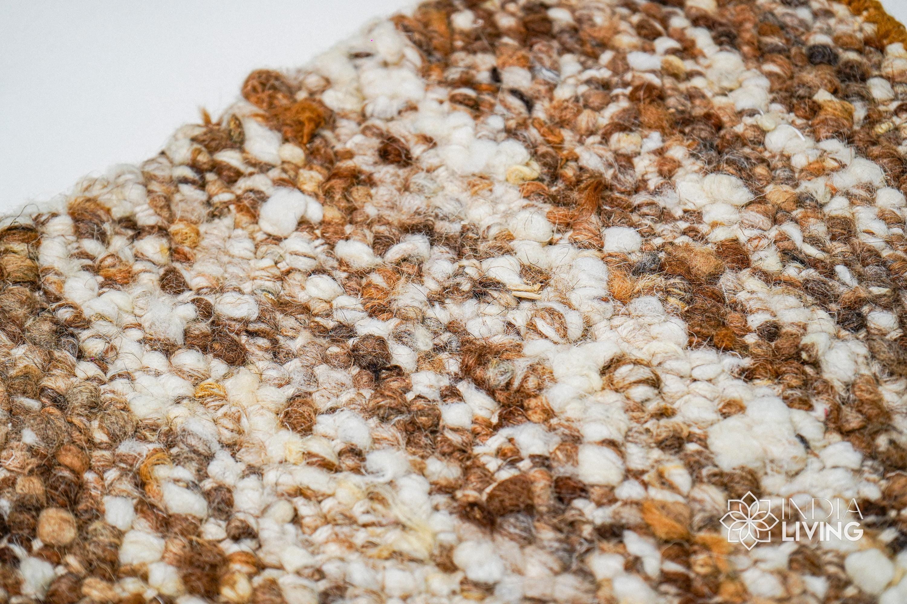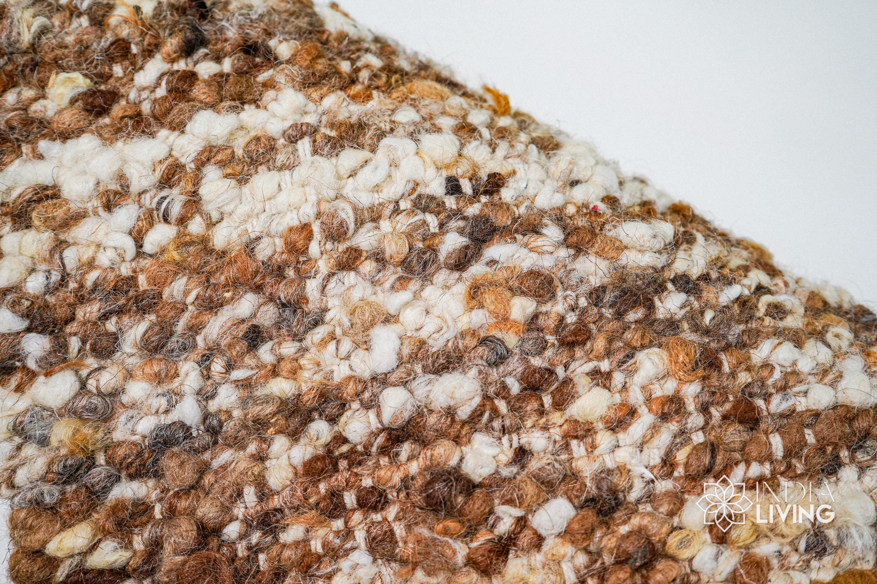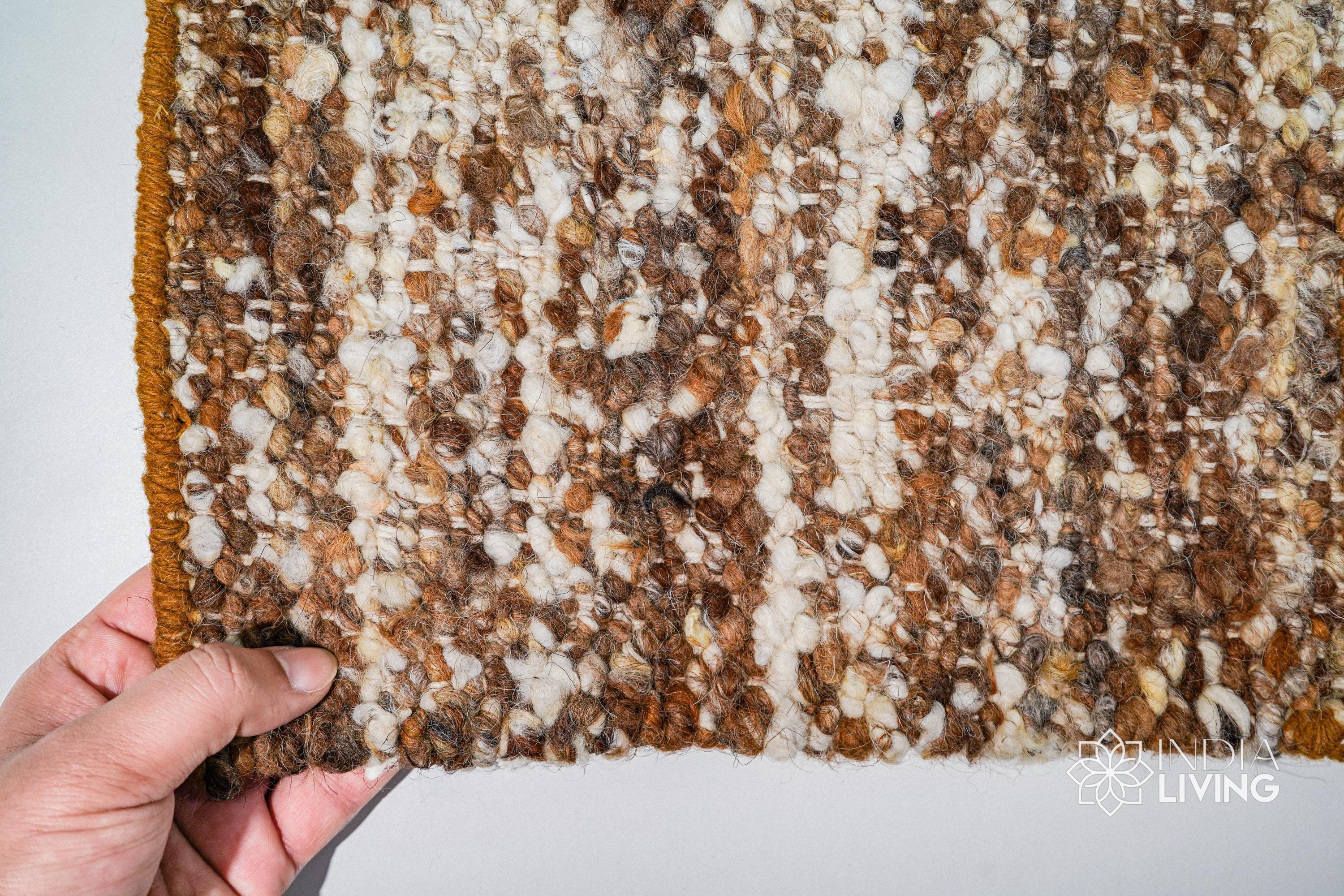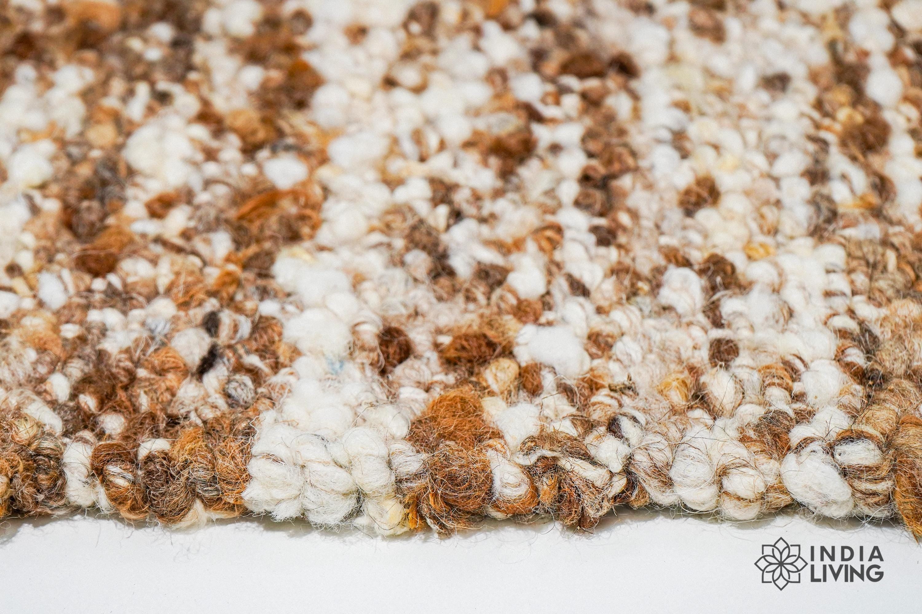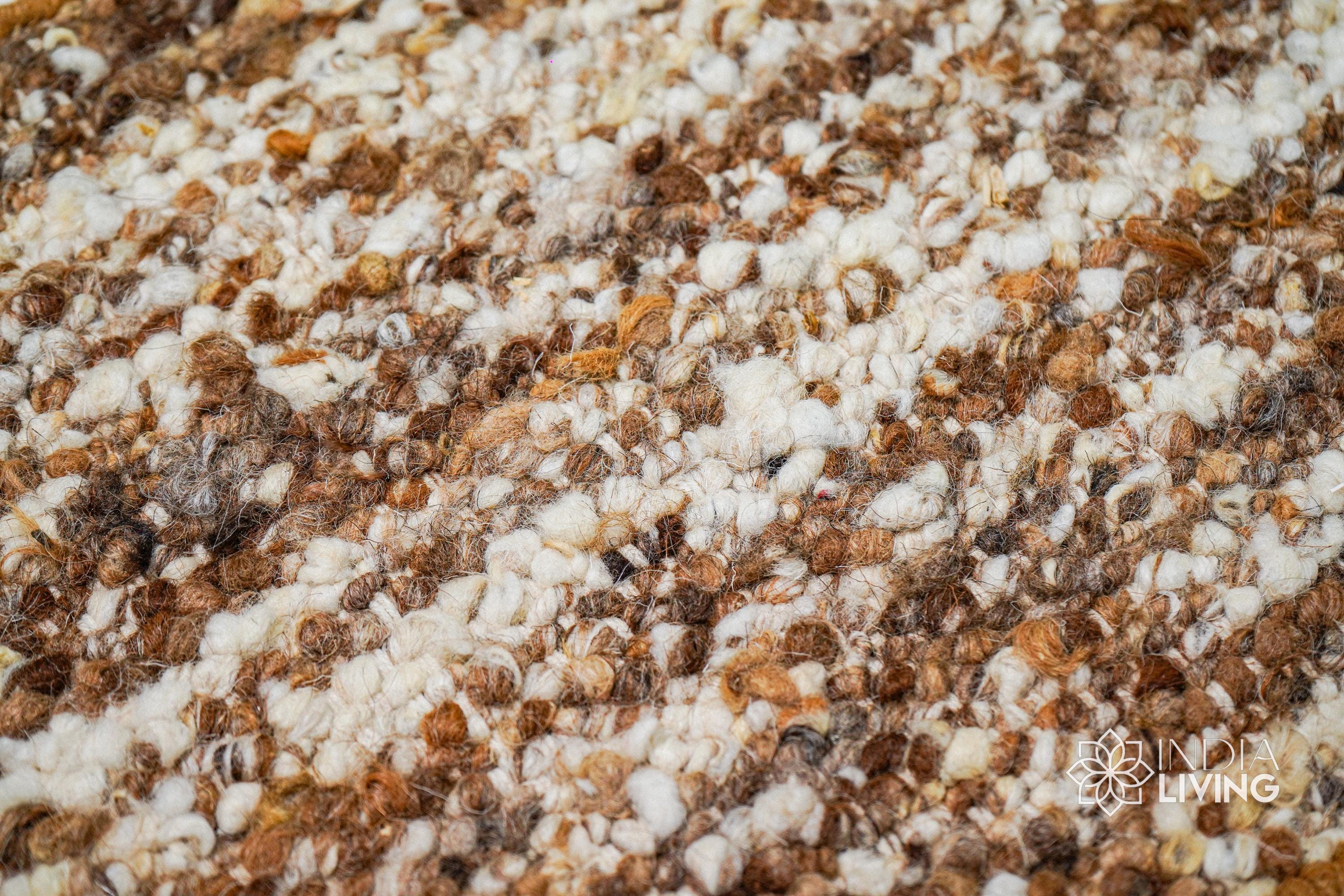 Ivory Brown Textured Wool Rug, Handwoven Organic Wool Scandinavian Carpet, Custom Sizes for Cozy Home Gift