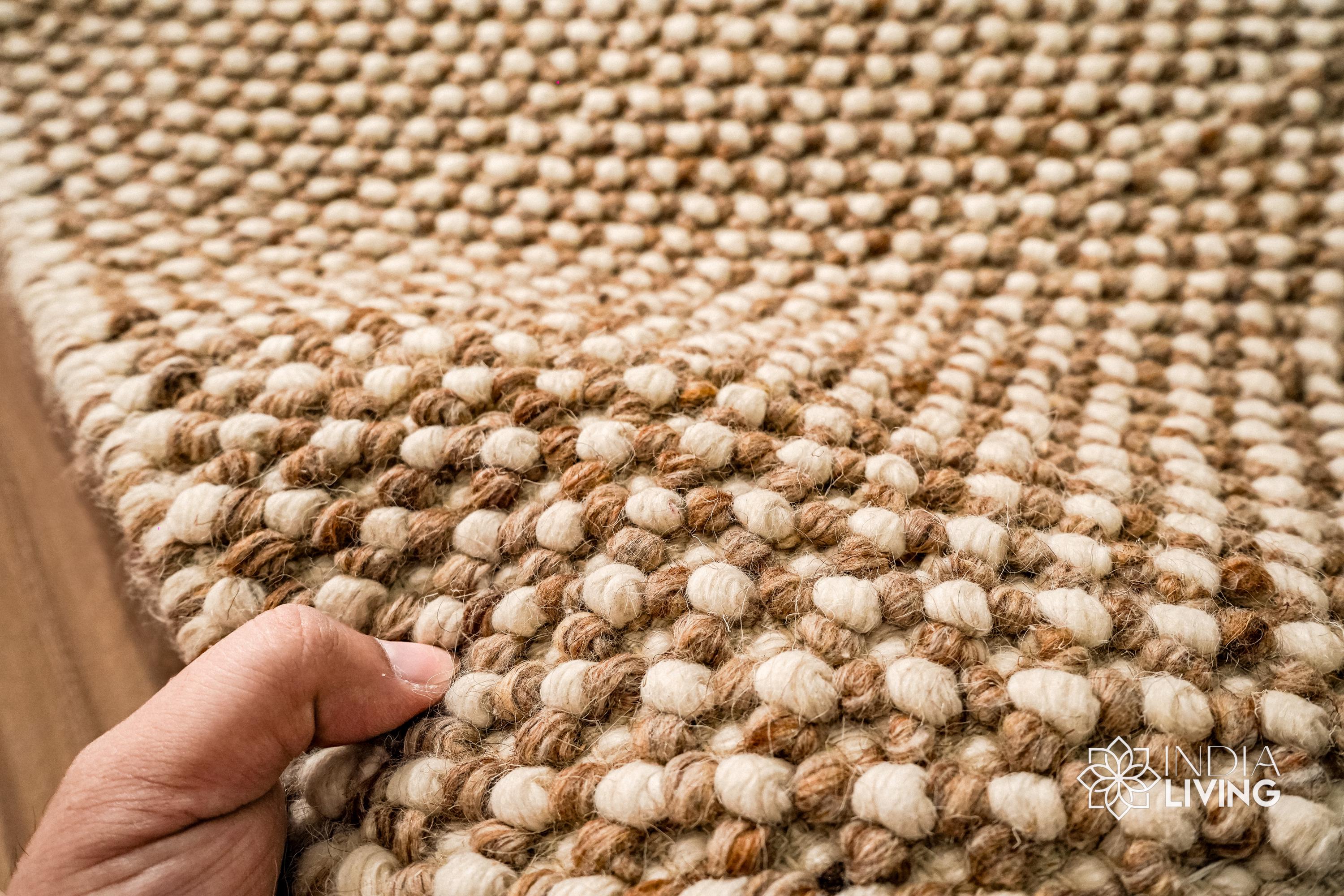Beige White Chunky Looped Wool rug - Scandinavian Hand made fluffy soft wool area rug - cozy Pet-Friendly, Personalised Room Rug