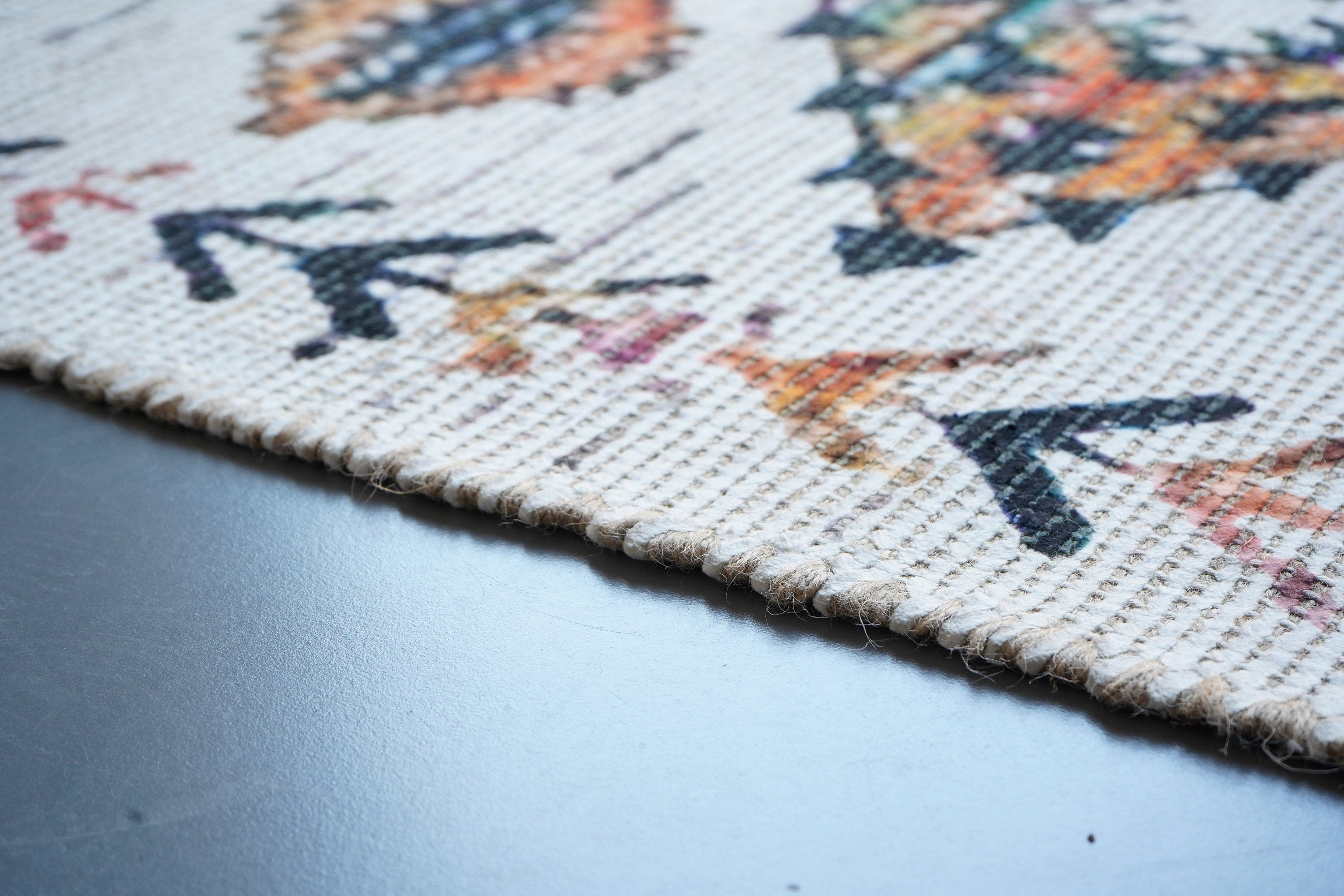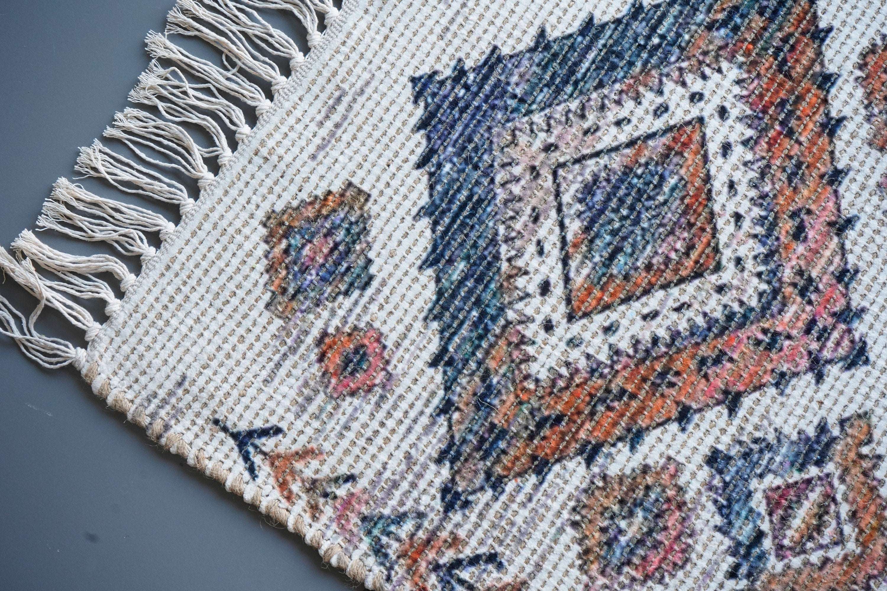 Bohemian rug 2x3, small rug, Moroccan prints, decorative rug, Off white rug 4x6, Jute Chenille rug