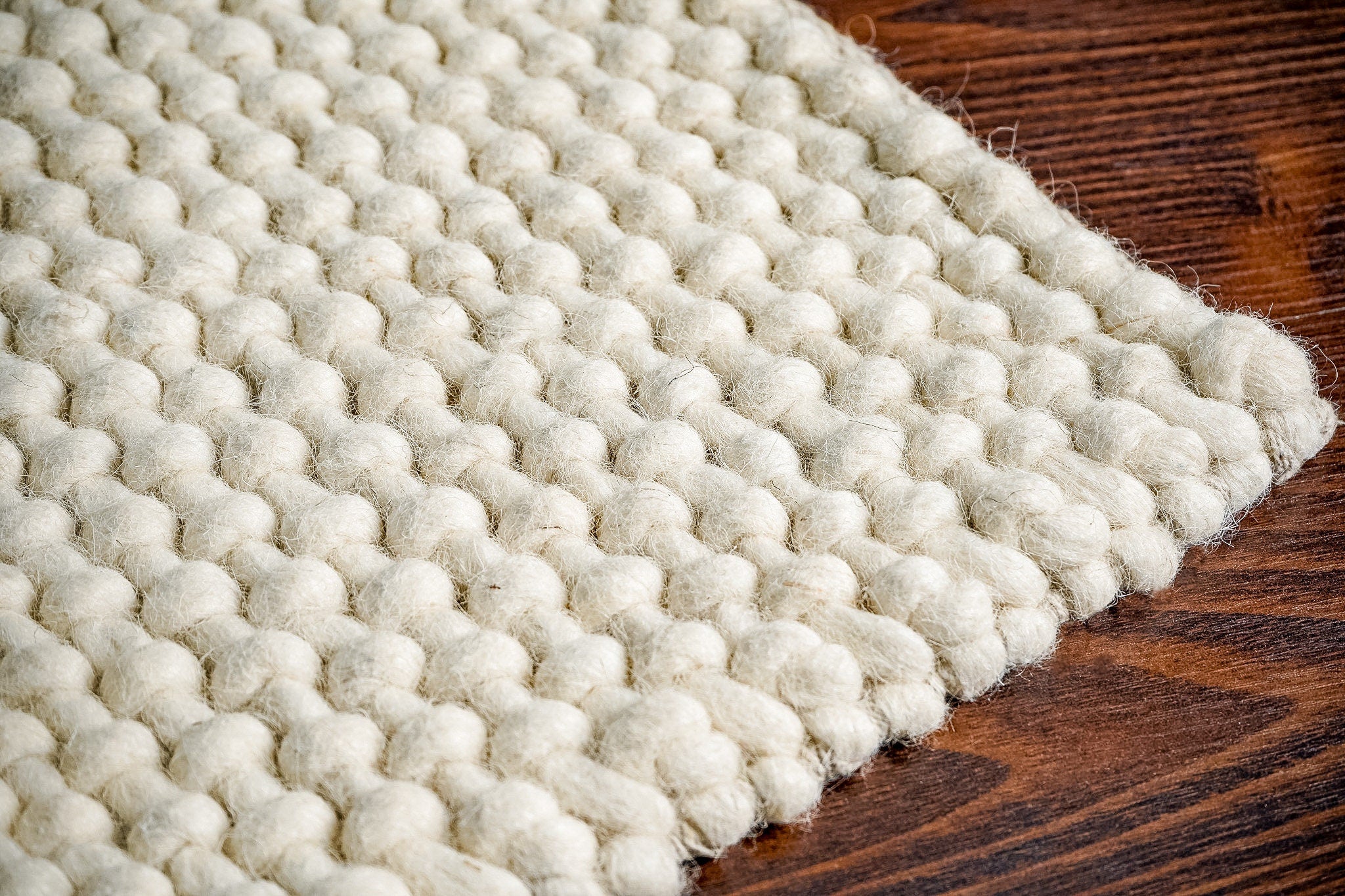 Ivory Magic Loop Chunky Wool rug - Hand woven Modern Scandinavian style indoor wool rug -Customization available