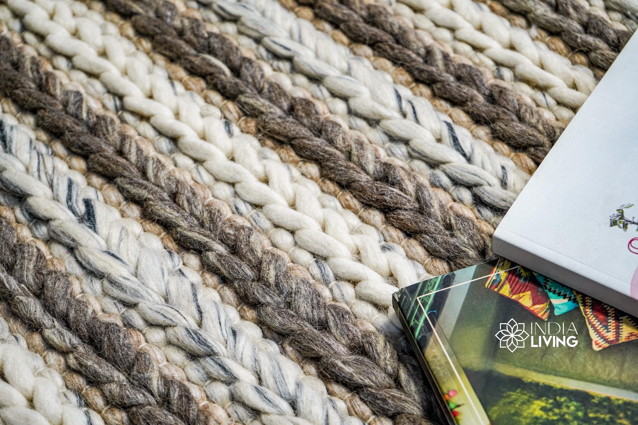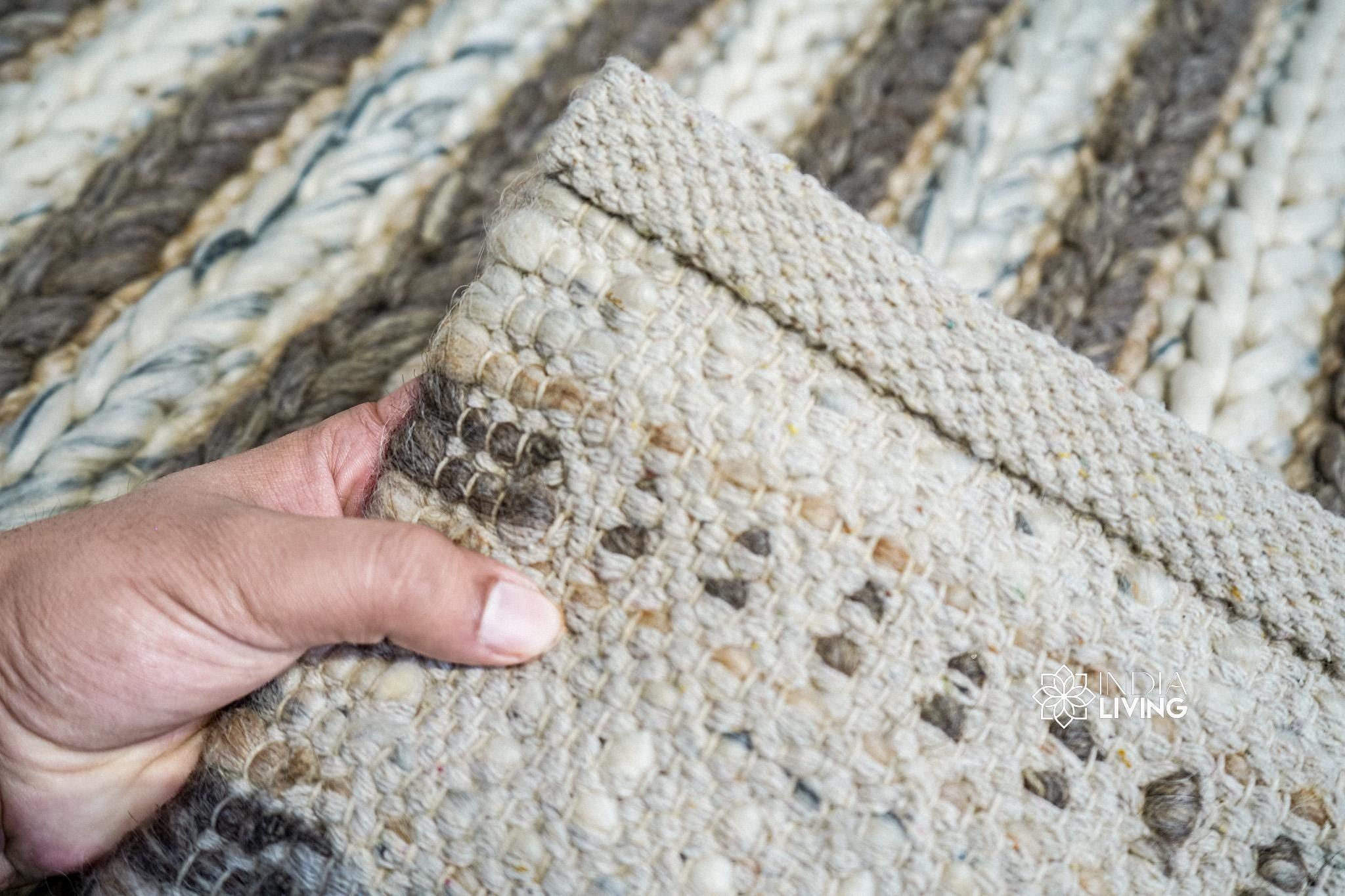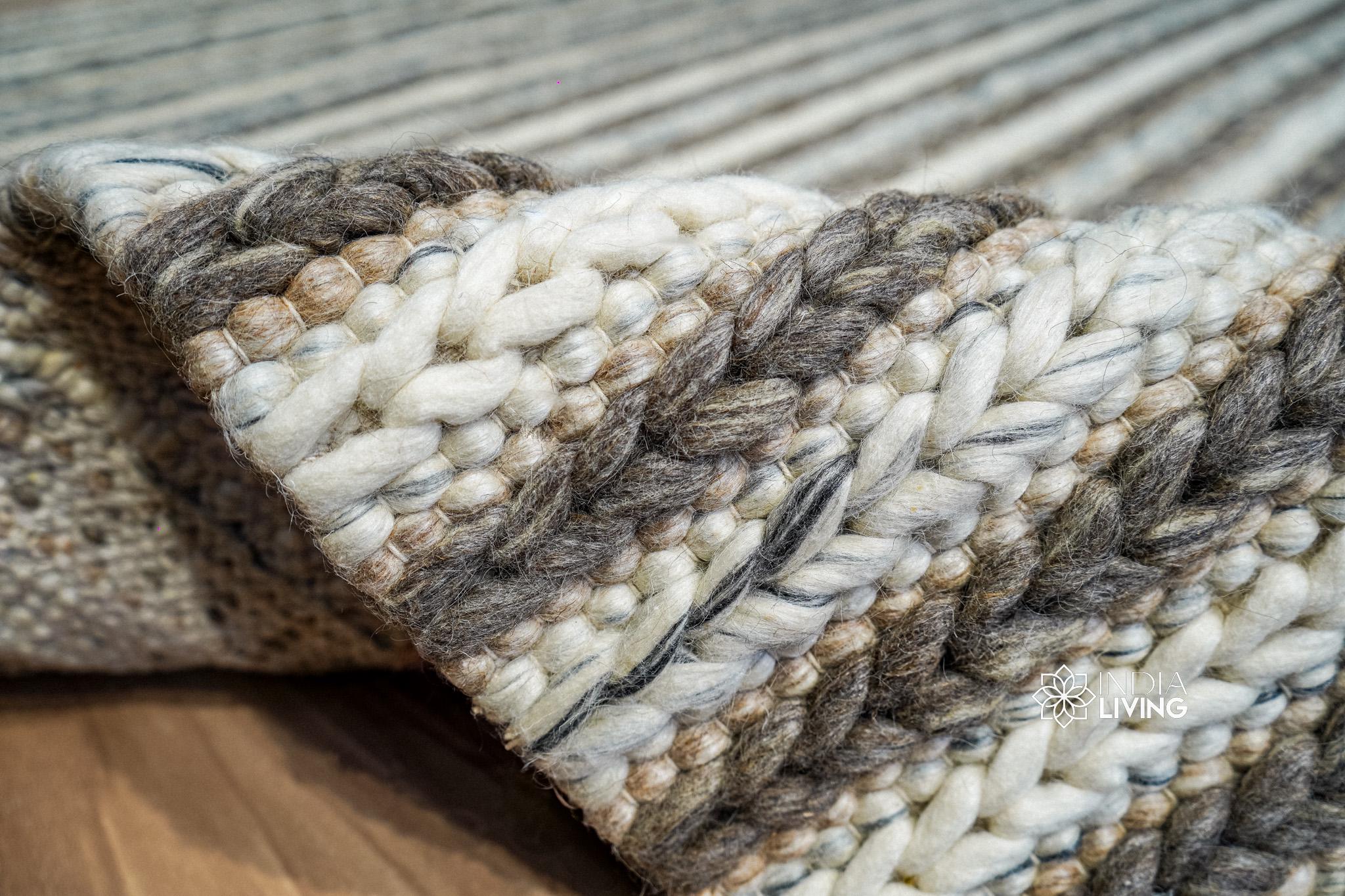 Hand woven Multi Pattern Scandinavian Chunky Knitted Rug - Brown, Grey & Ivory, Cozy Texture, Customization available