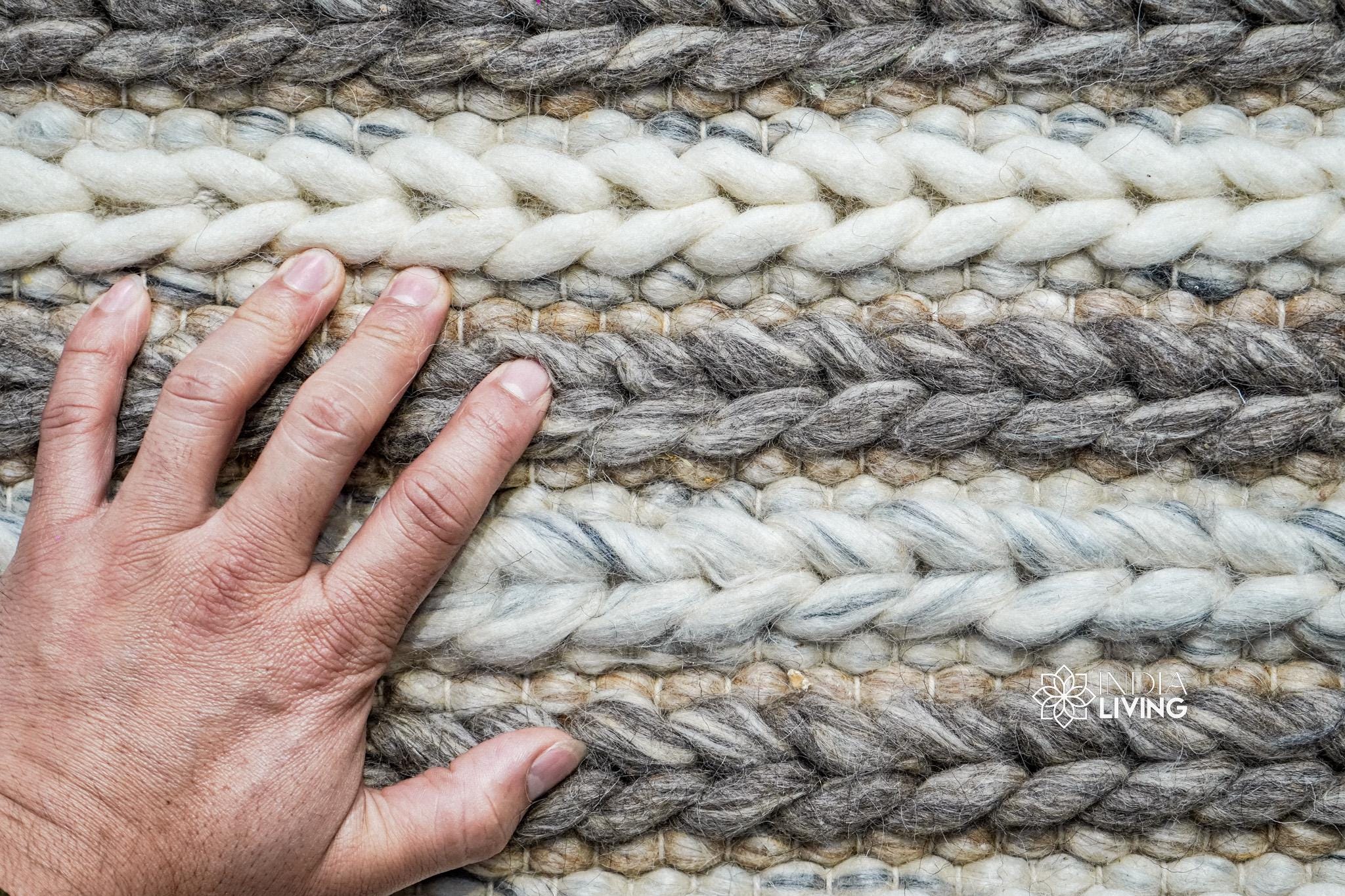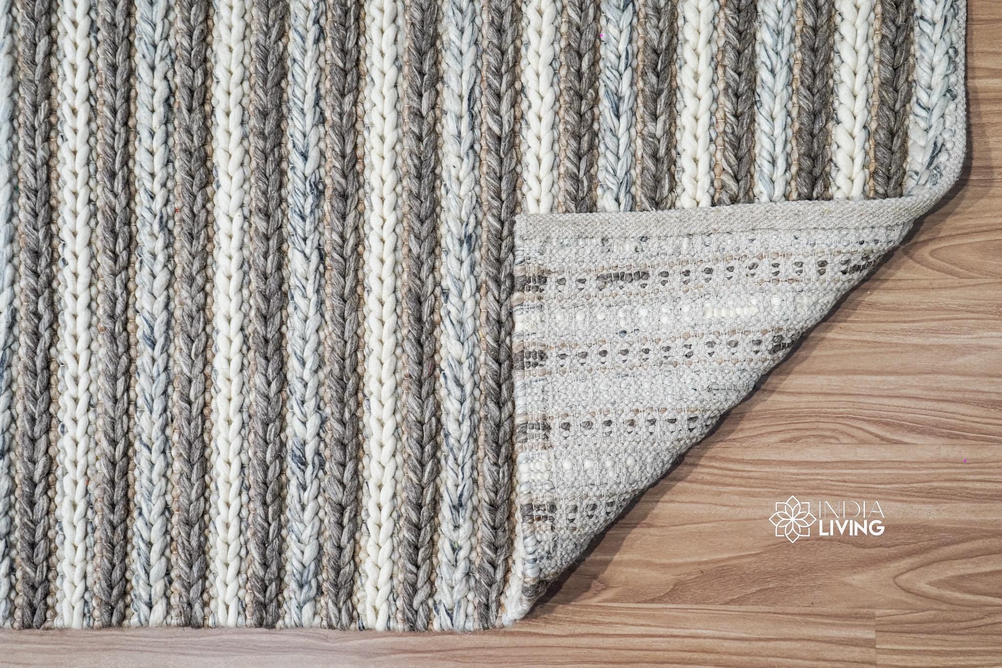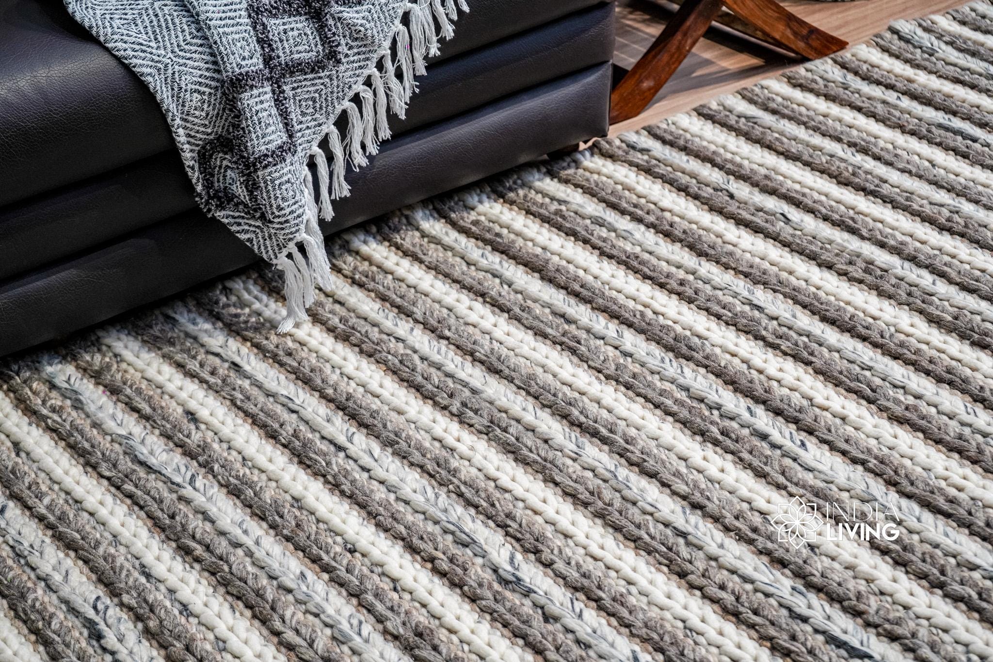Hand woven Multi Pattern Scandinavian Chunky Knitted Rug - Brown, Grey & Ivory, Cozy Texture, Customization available