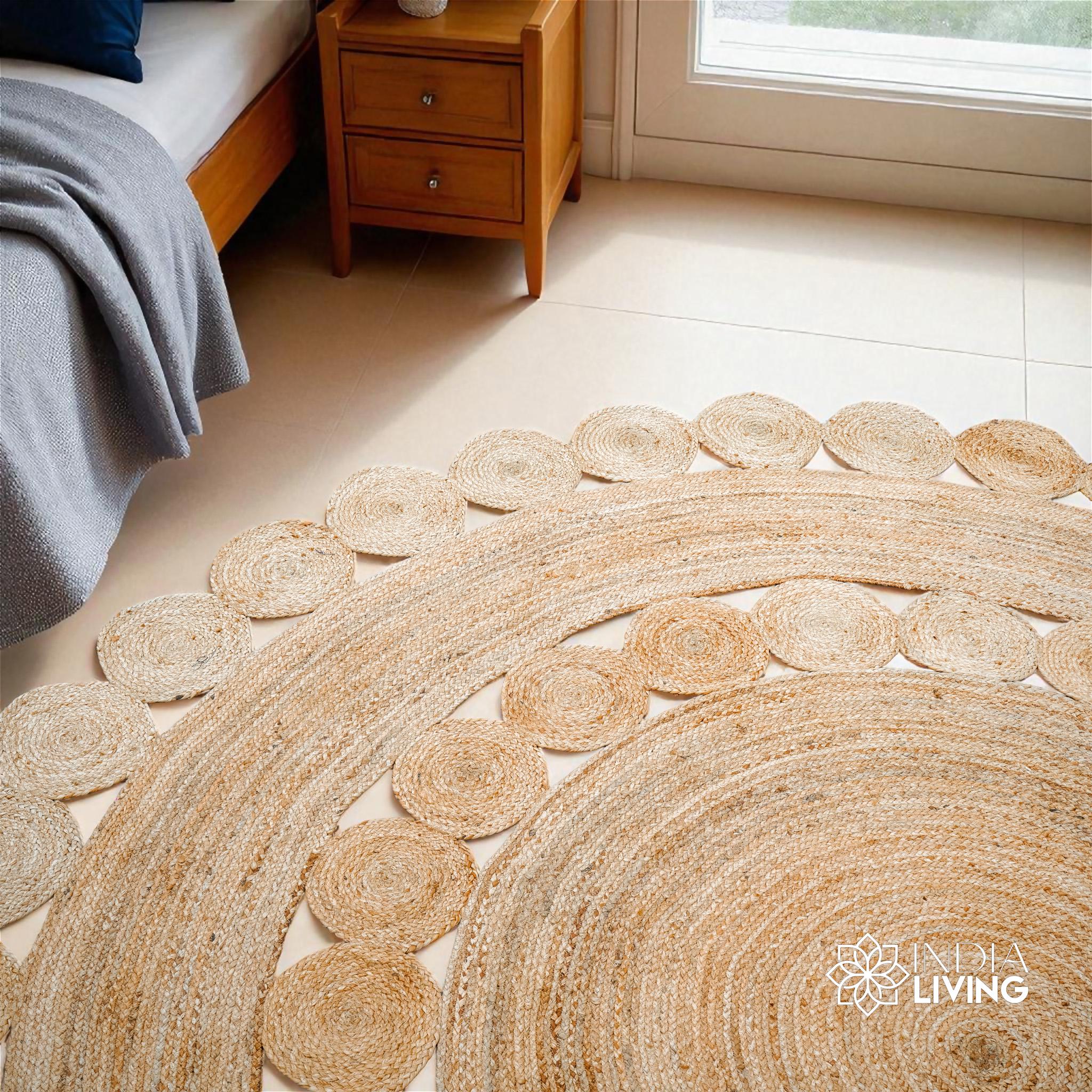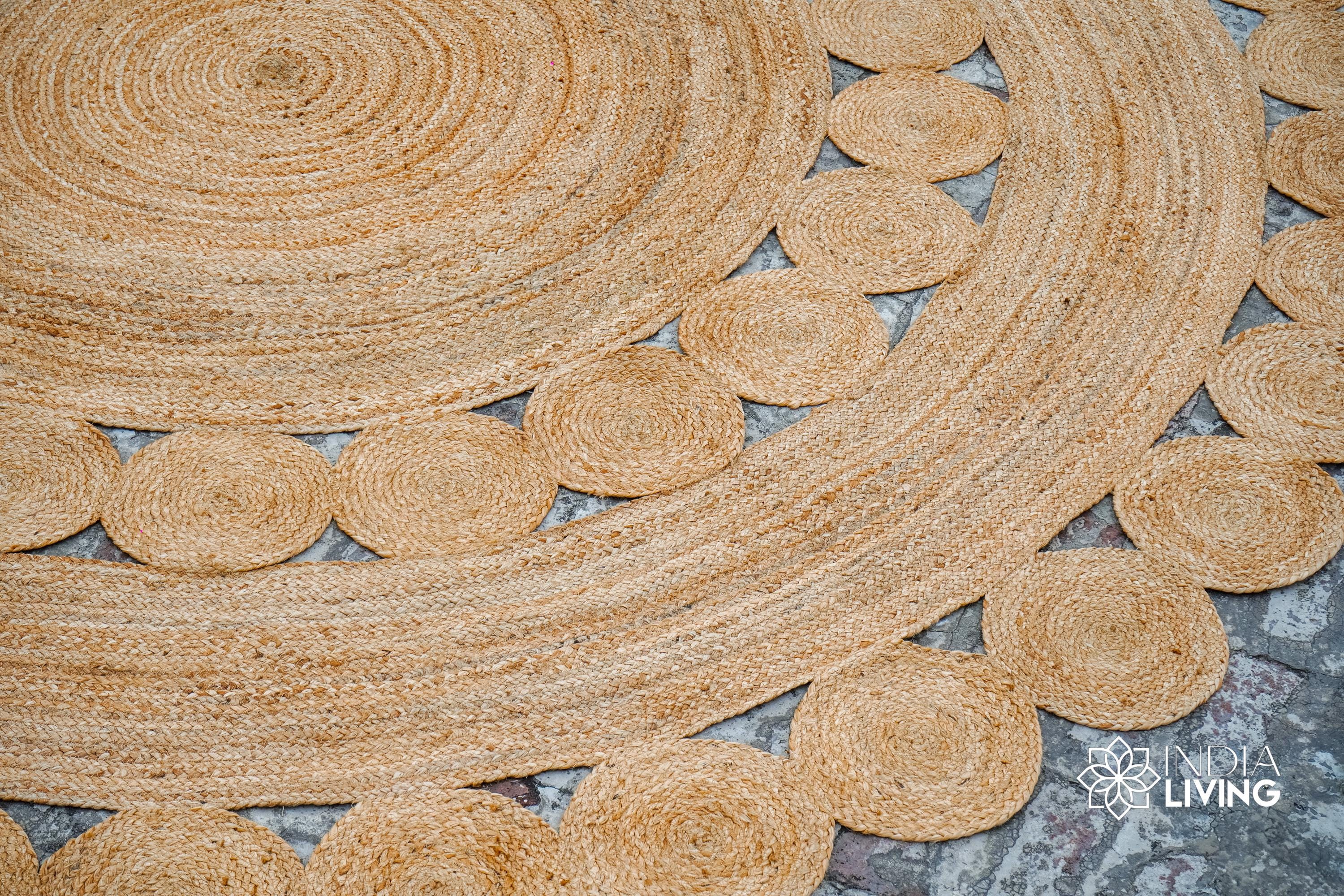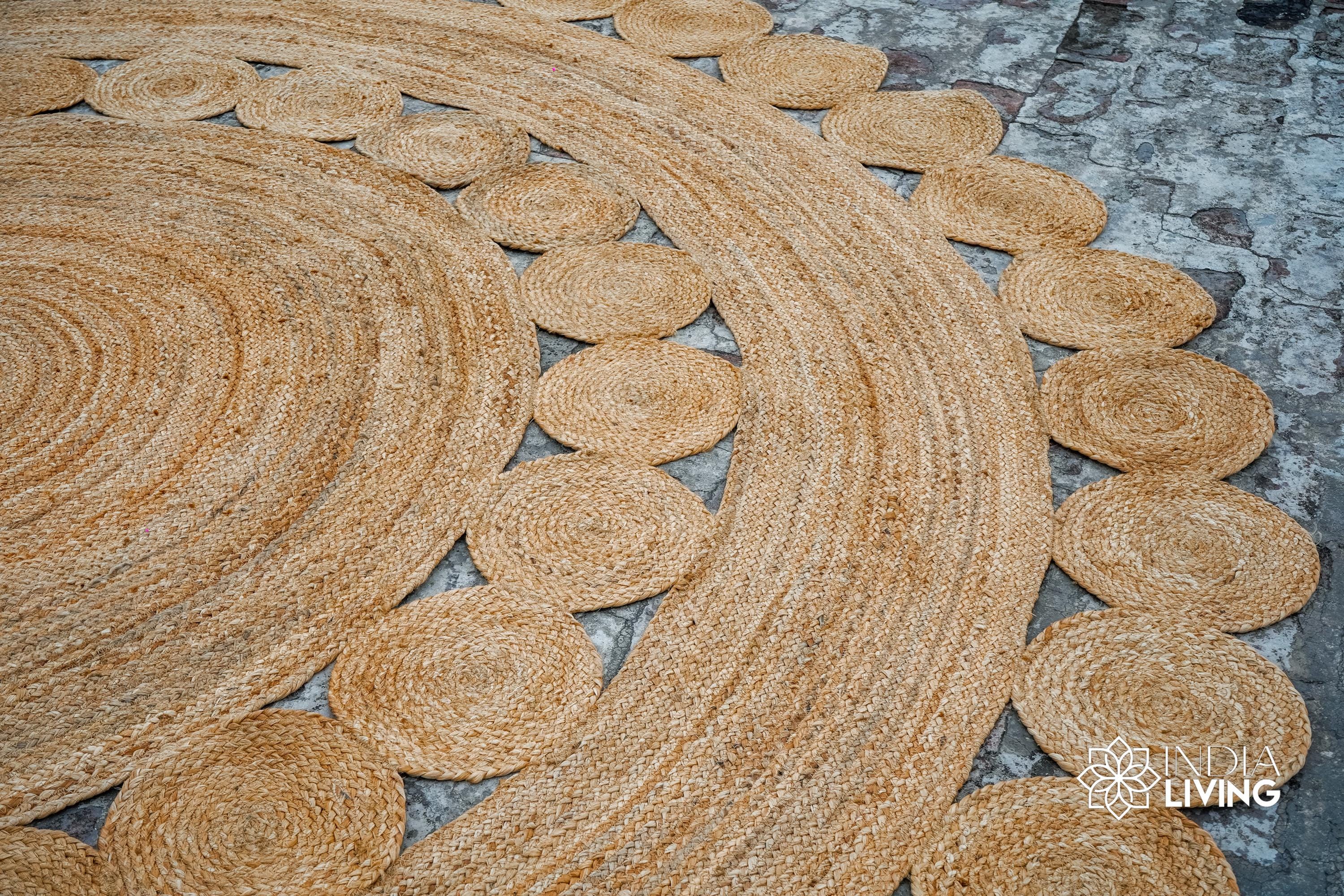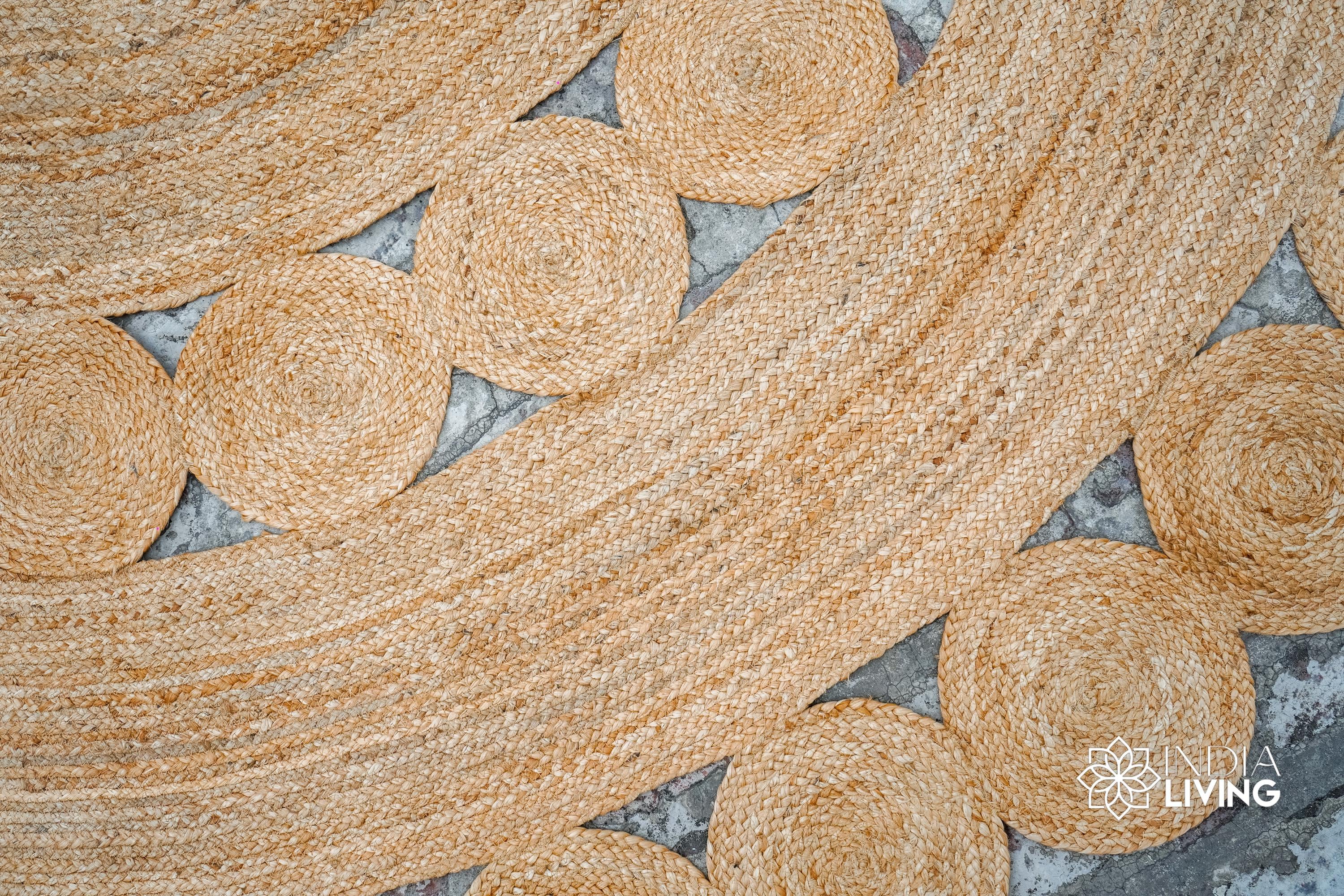 Indian Round Hand Braided Natural Jute Rug, Bohemian Decor Circular Placemat, Sustainable Eco-friedly,