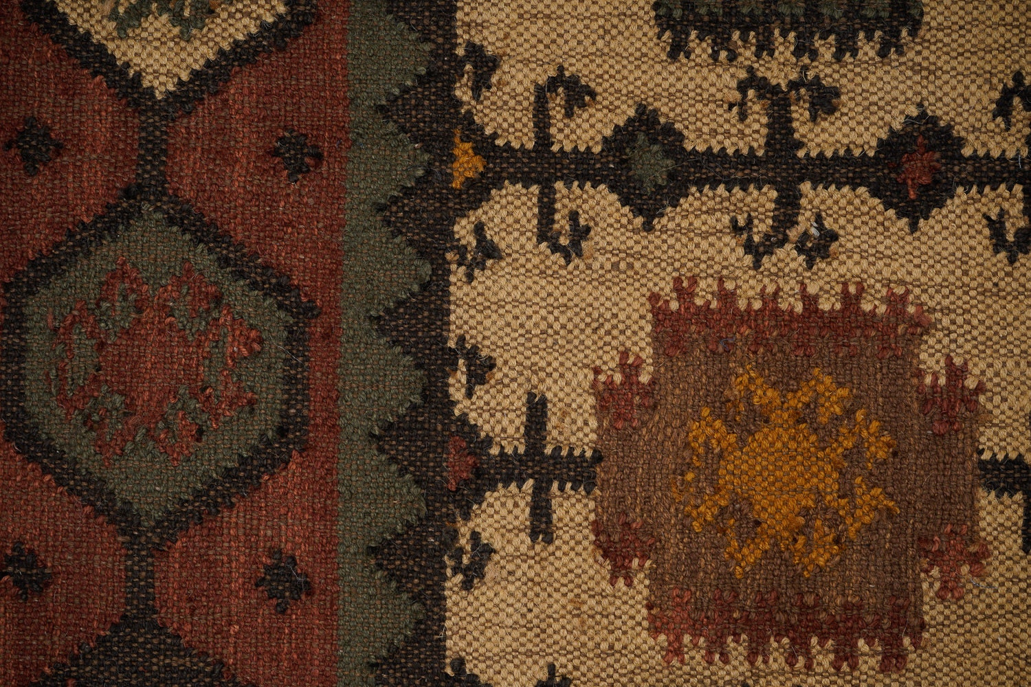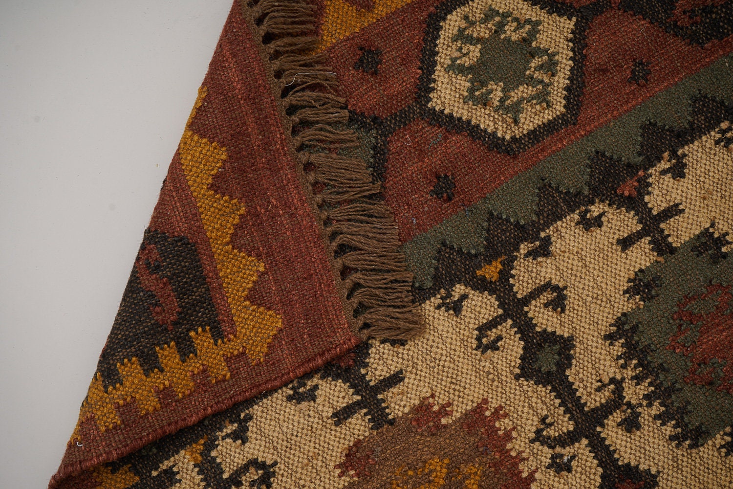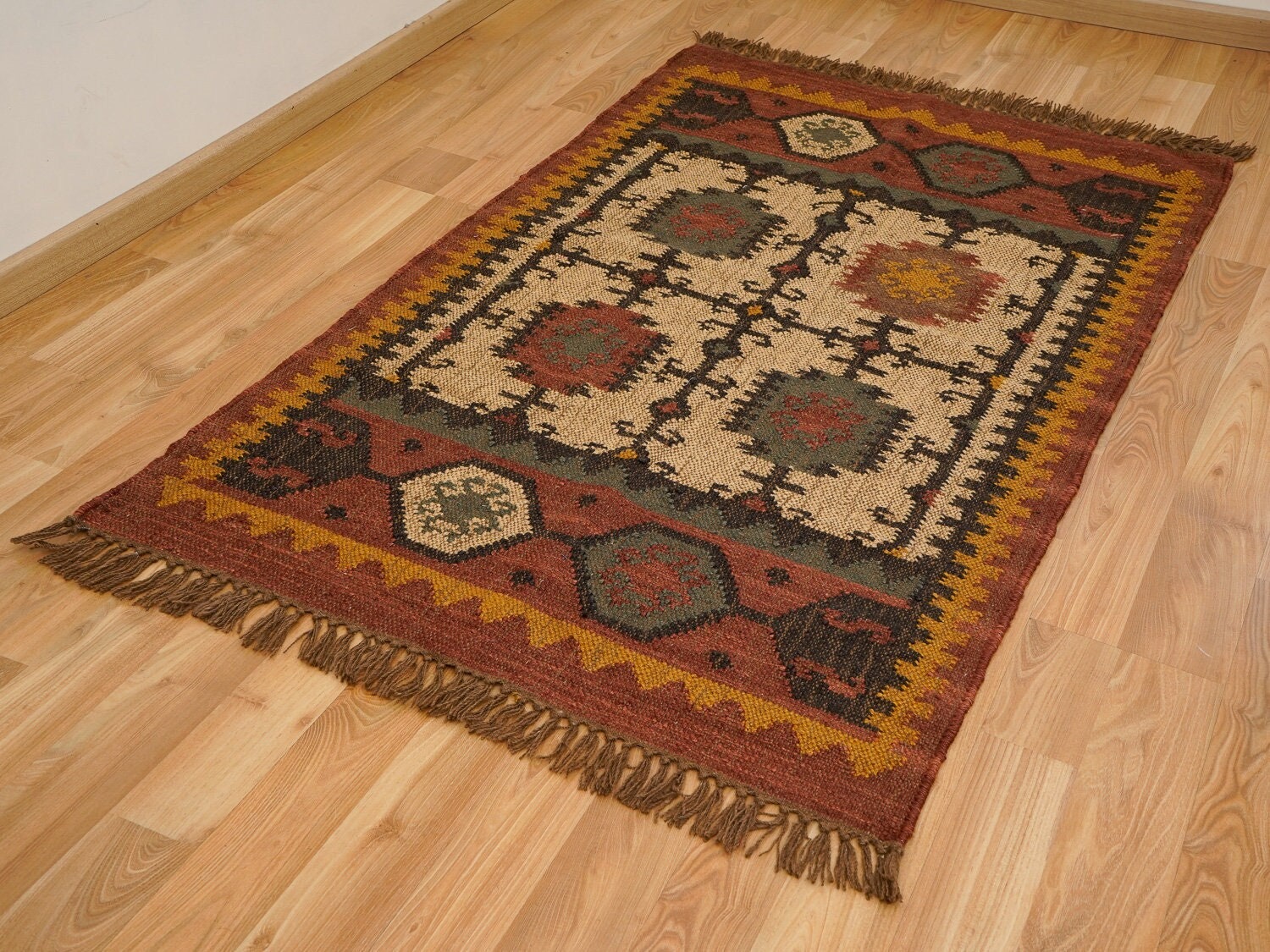 Handmade Wool Jute Rug, Navajo Kilim Rug, Traditional Indian made, Artistic Vintage Kilim, SOUTHWESTERN KELIM Runner, Living/Dinning Room
