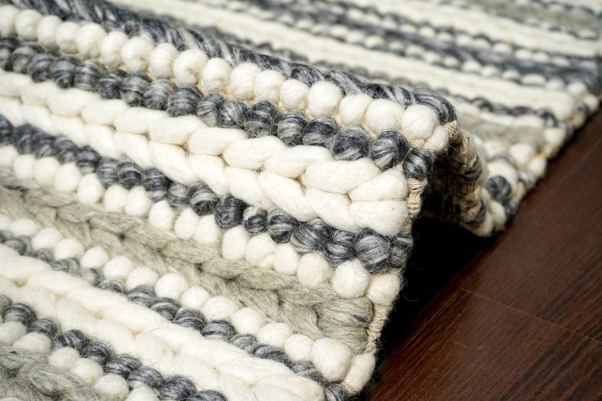Handwoven Chunky loop Scandinavian Multi Knitted wool Rug - Grey & Ivory, High Pile, soft, Custom made in all sizes