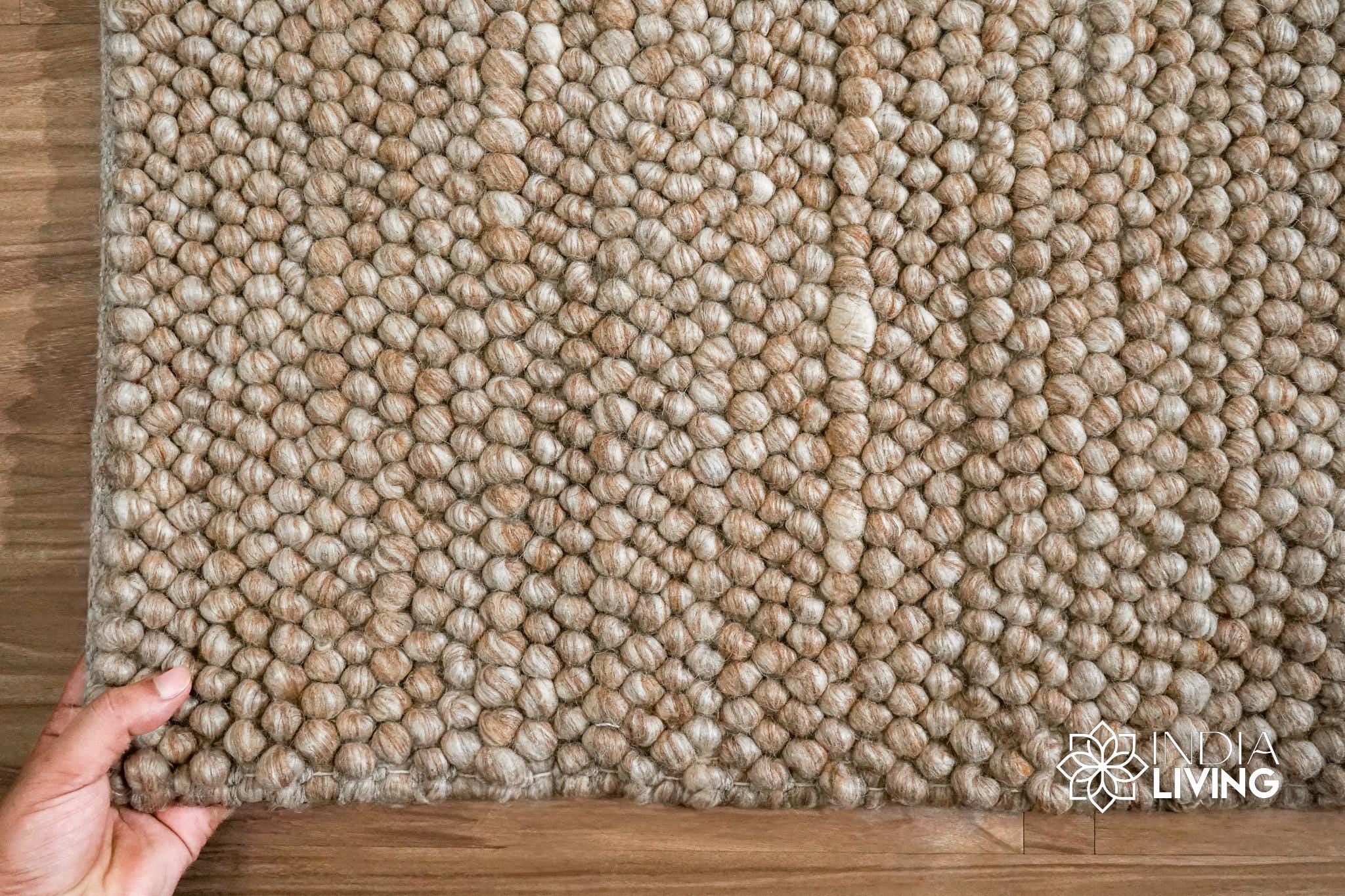 The chunky texture of these rugs adds a cozy, inviting feel to any room, making them perfect for use in living rooms, bedrooms, and other areas where you want to add warmth and comfort. The wool material is naturally stain-resistant and easy to clean, making it a practical choice for high-traffic areas.