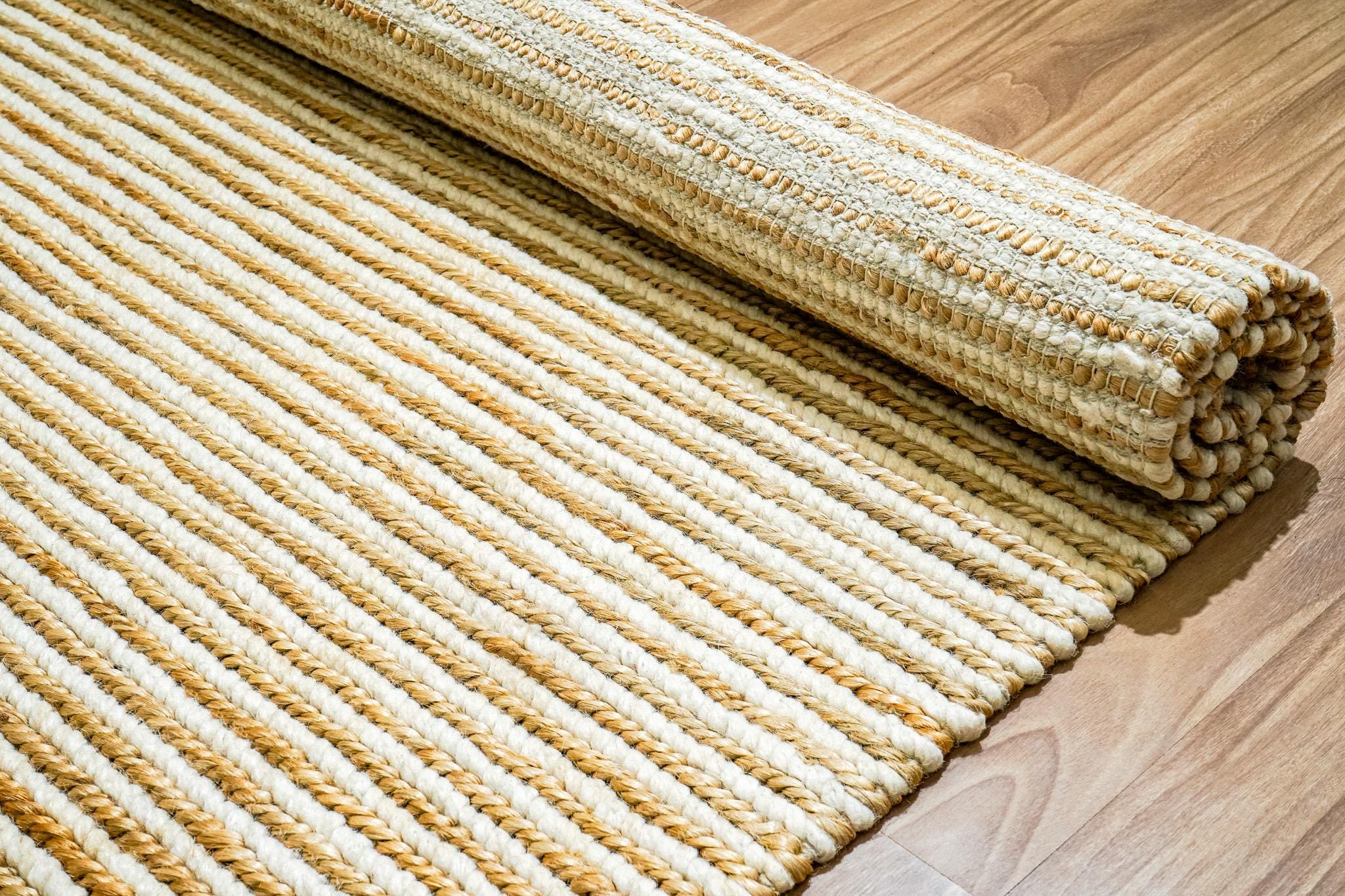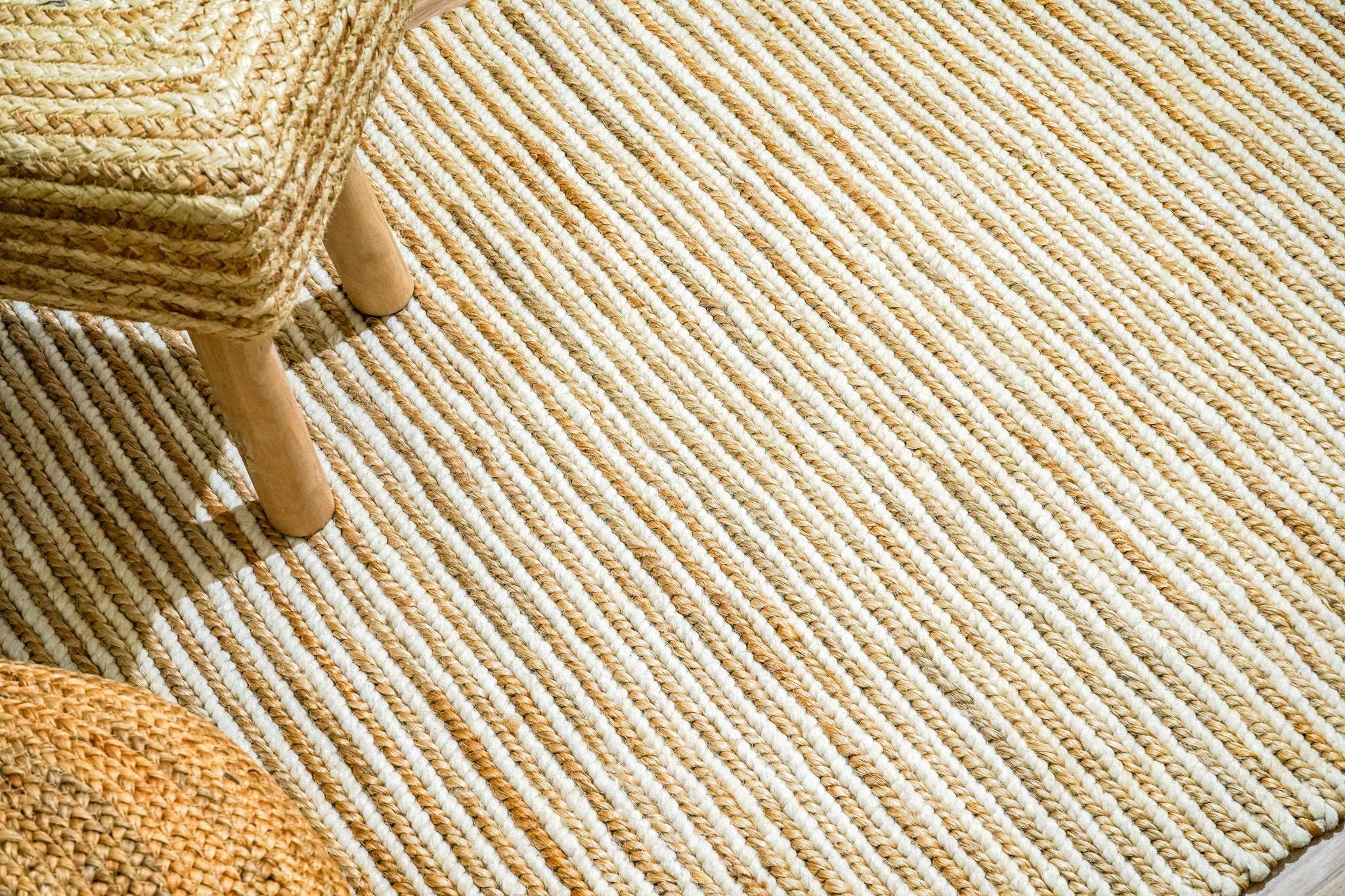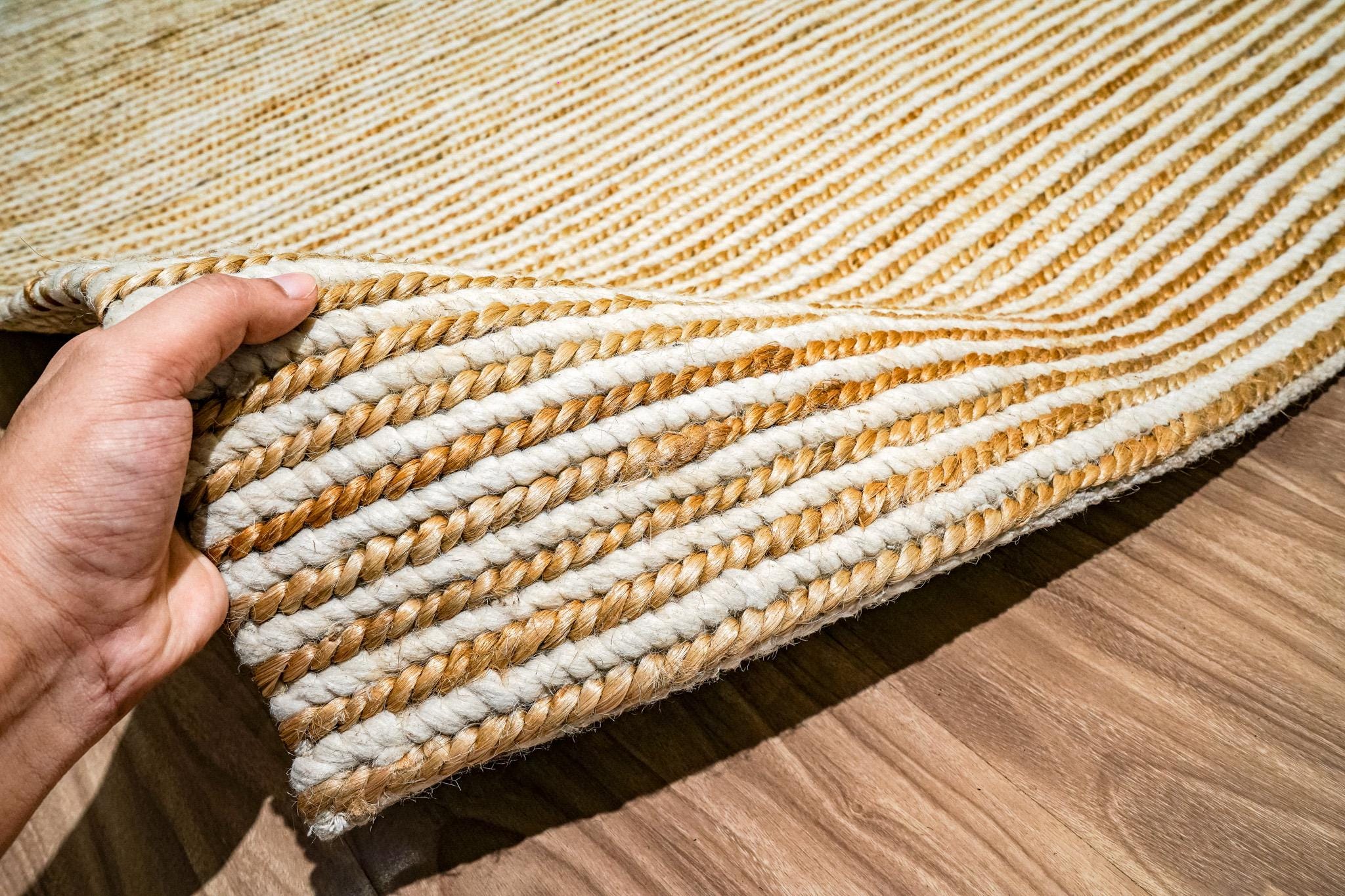 Handwoven Wool Jute Rug – Natural Ivory Braid, Scandinavian Decor