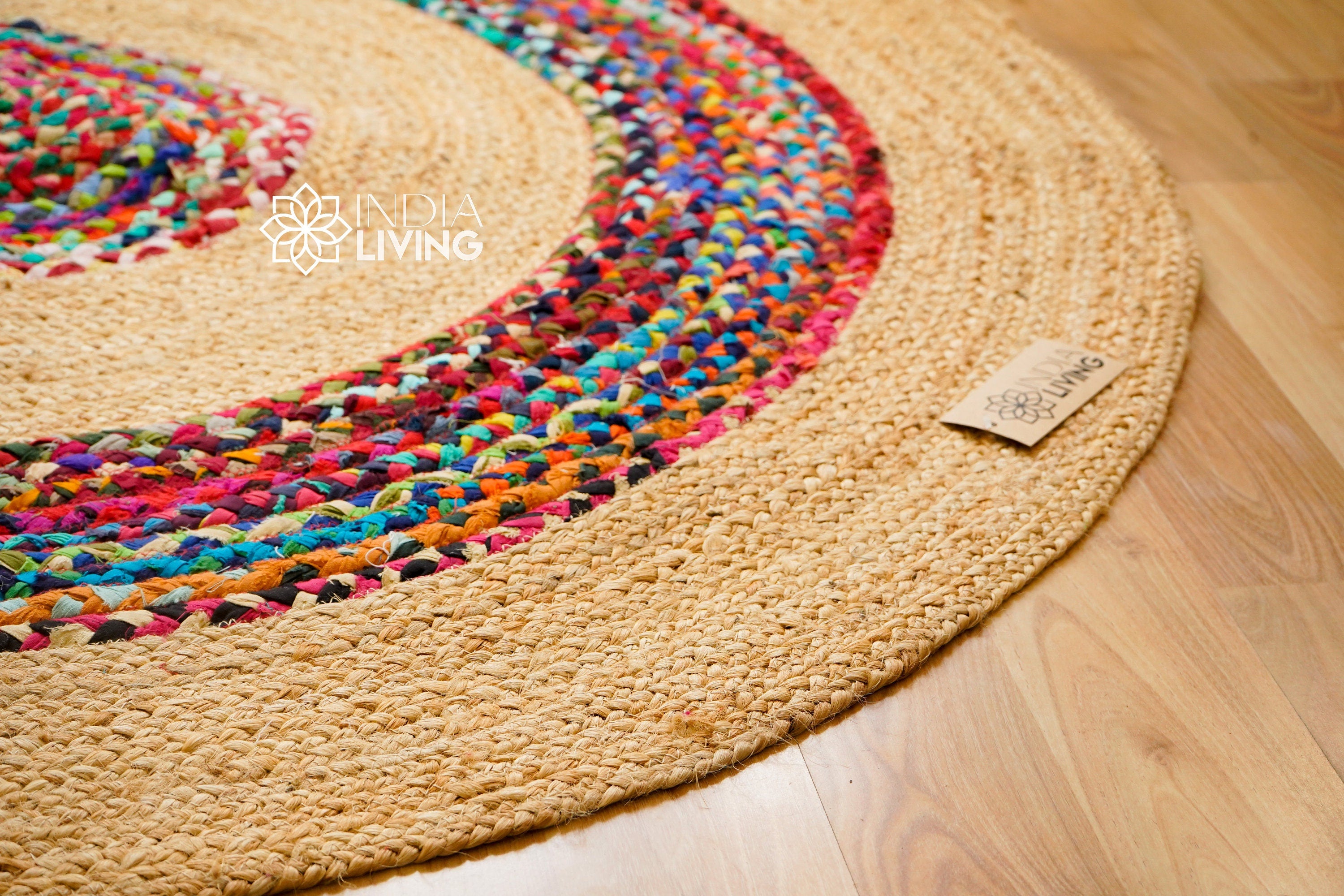 Jute Chindi Braided Round Rag Rug - Handcrafted Sustainable Home Decor with Natural Texture and Colors