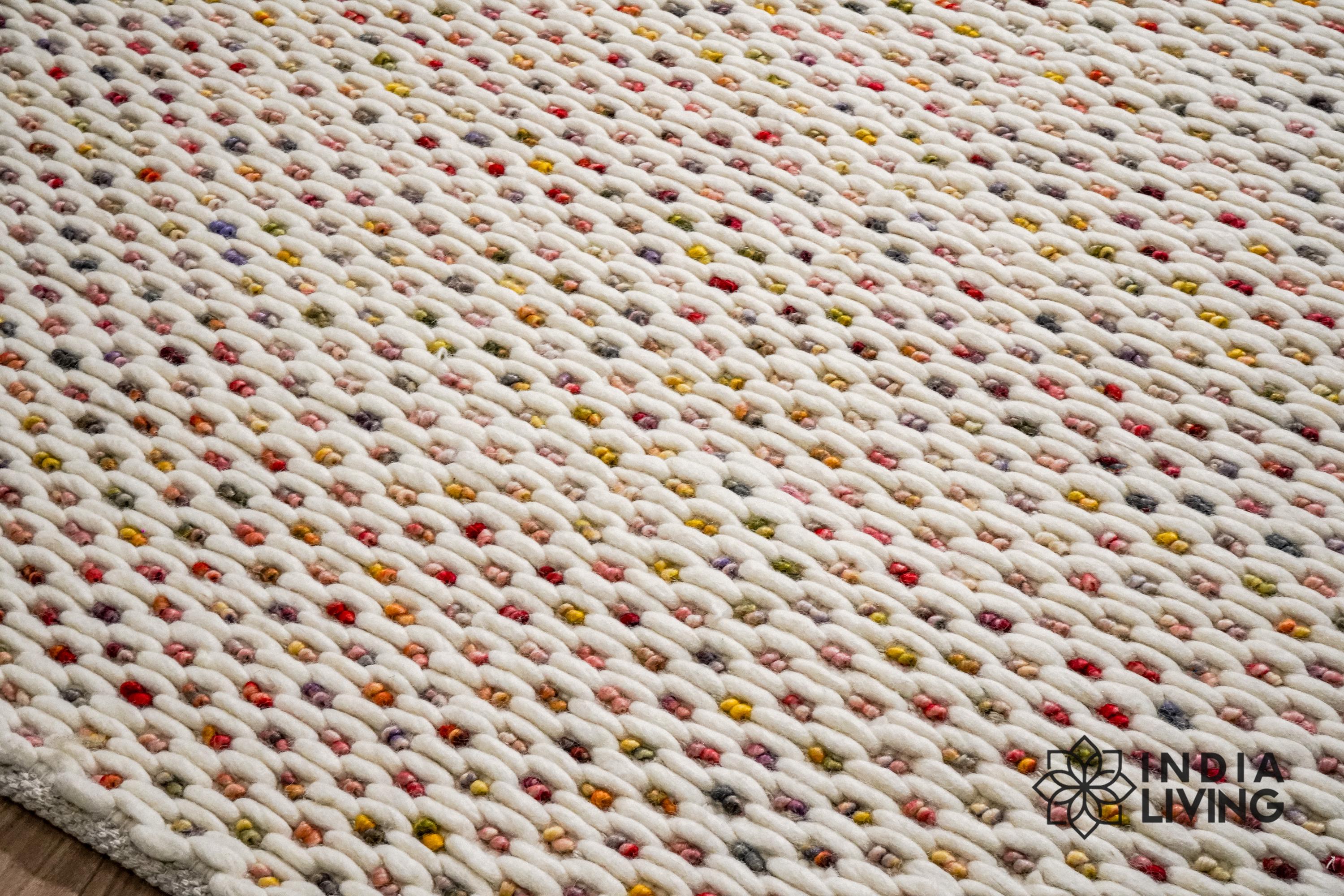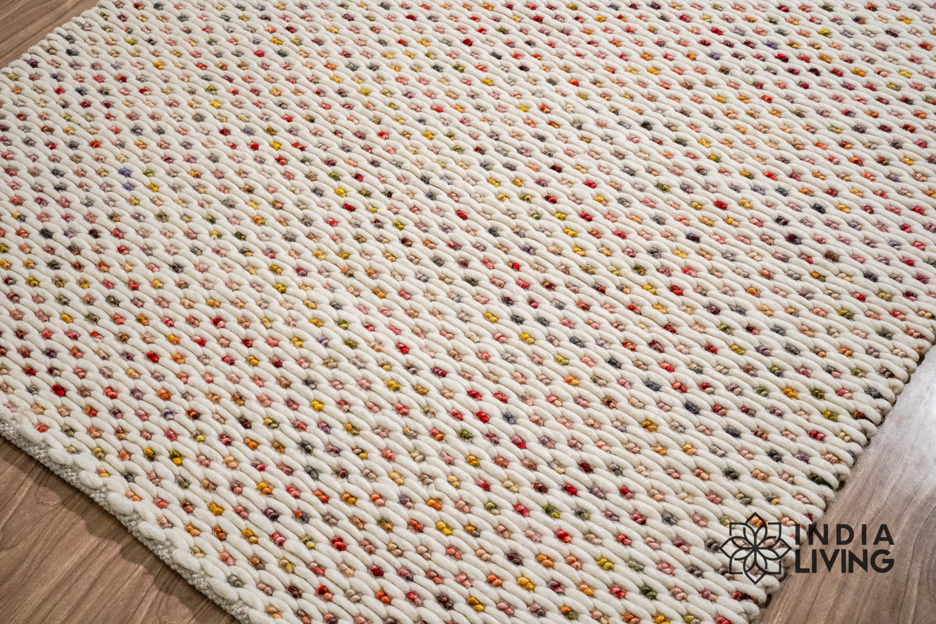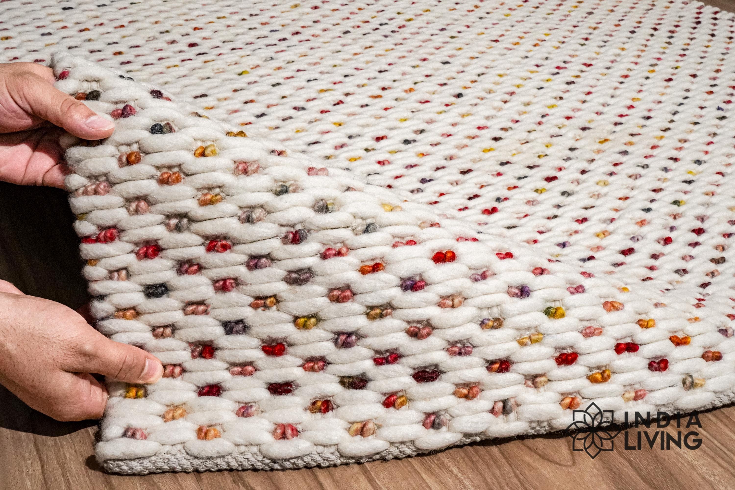 Multi Blend Hand made Chunky Looped Ivory Wool rug, Custom made Christmas Inspired Premium wool rug, Colourful Funky Kids room decor rug