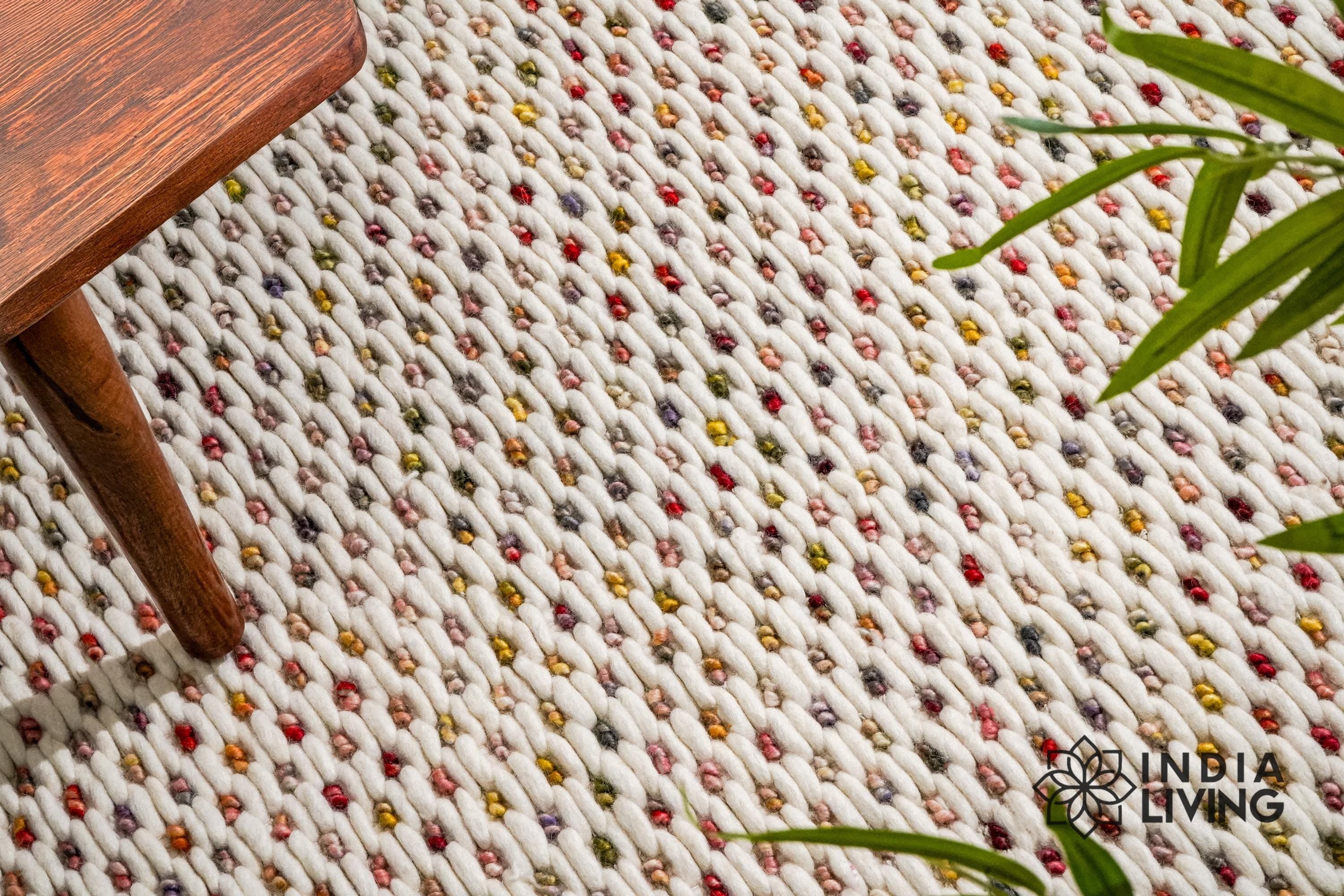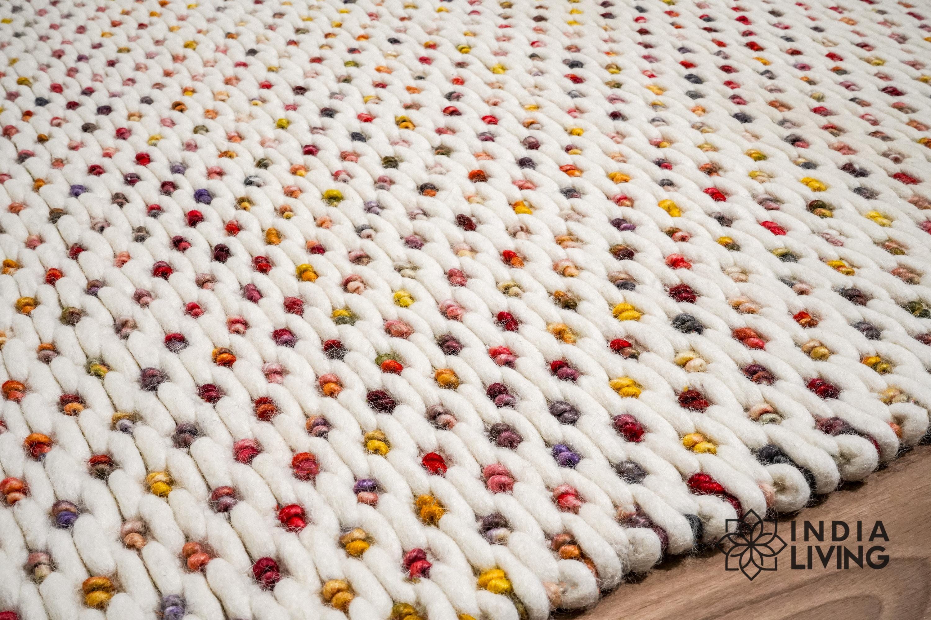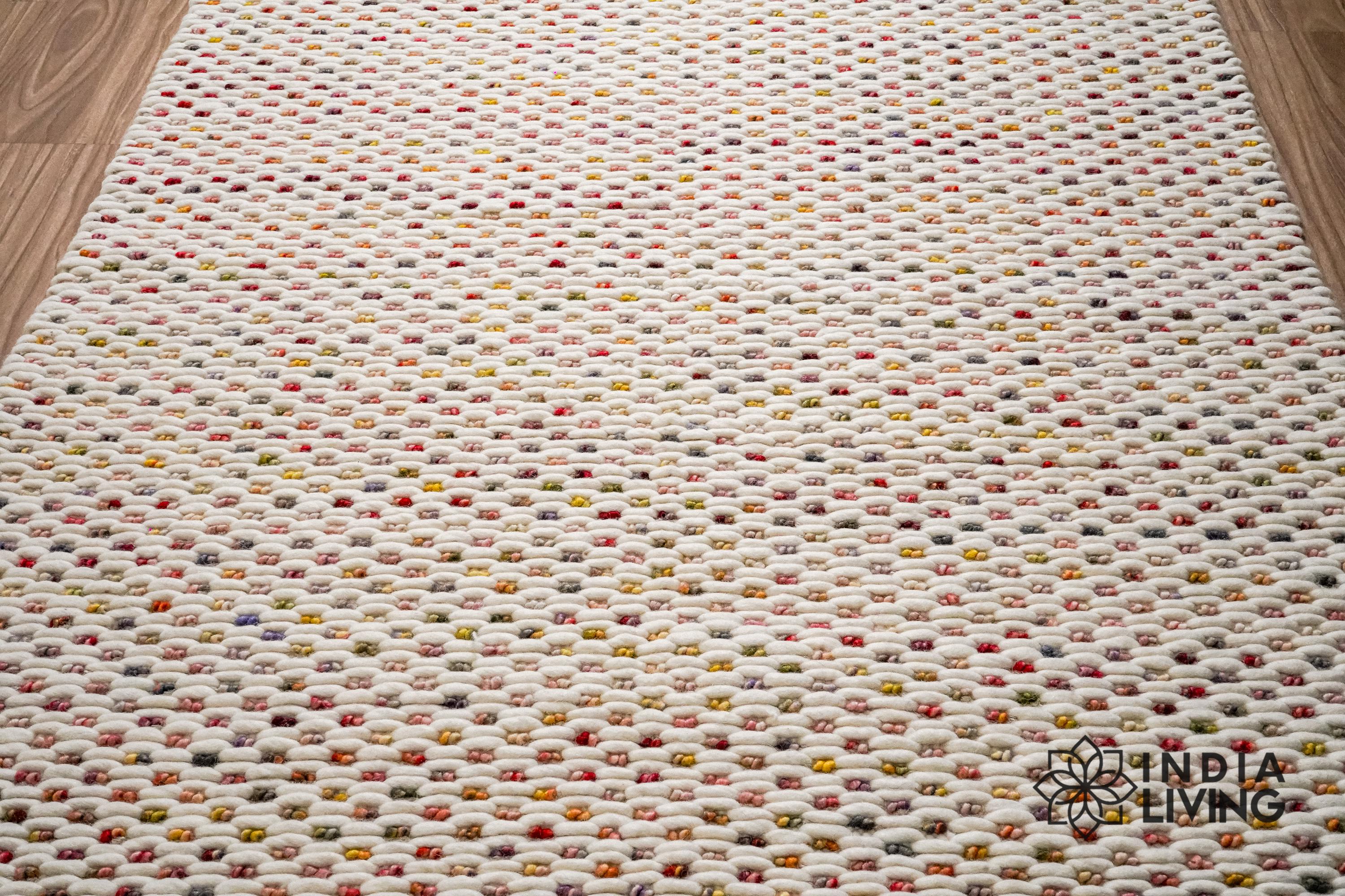 Multi Blend Hand made Chunky Looped Ivory Wool rug, Custom made Christmas Inspired Premium wool rug, Colourful Funky Kids room decor rug