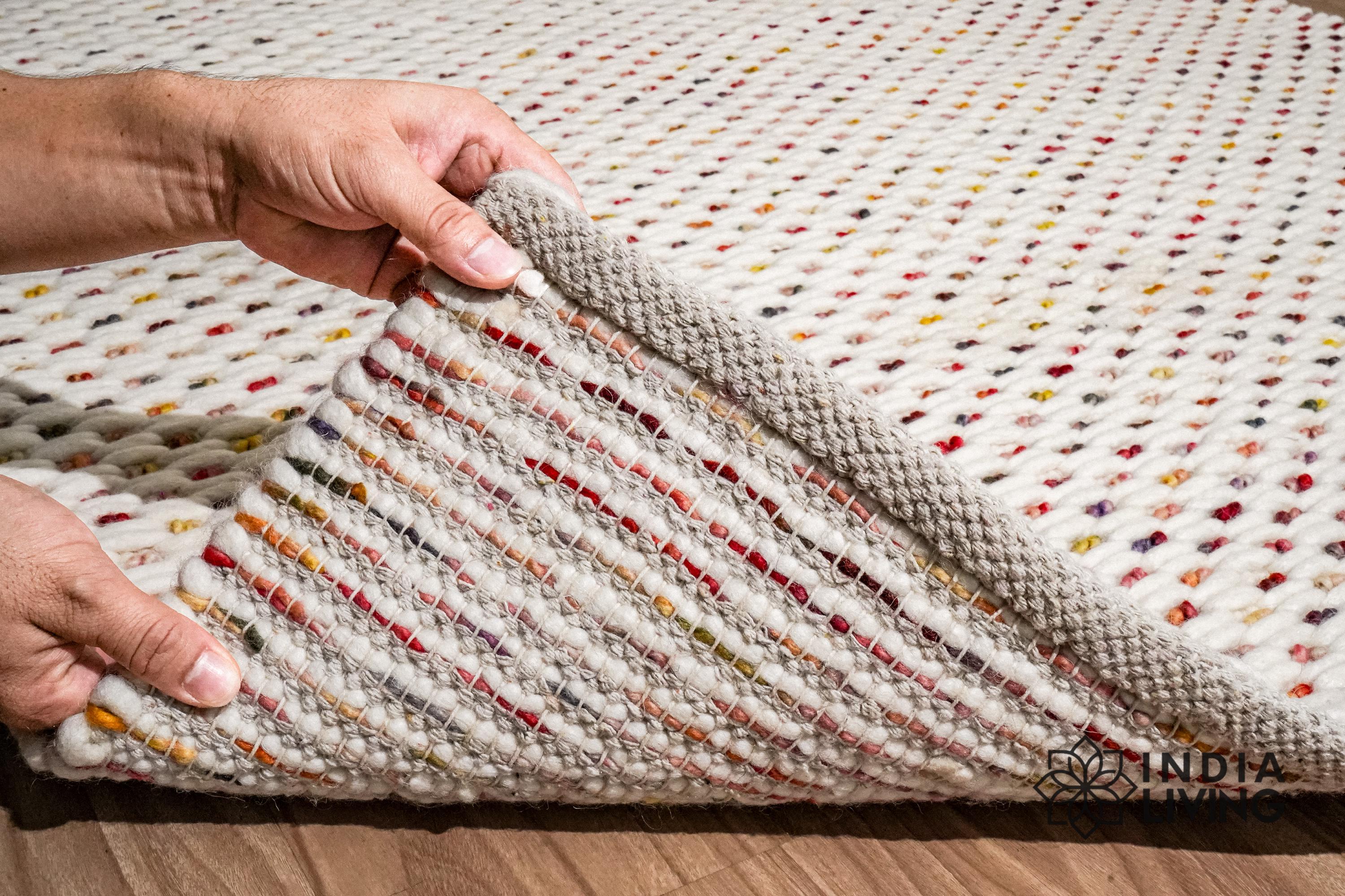 The chunky texture of these rugs adds a cozy, inviting feel to any room, making them perfect for use in living rooms, bedrooms, and other areas where you want to add warmth and comfort. The wool material is naturally stain-resistant and easy to clean, making it a practical choice for high-traffic areas.