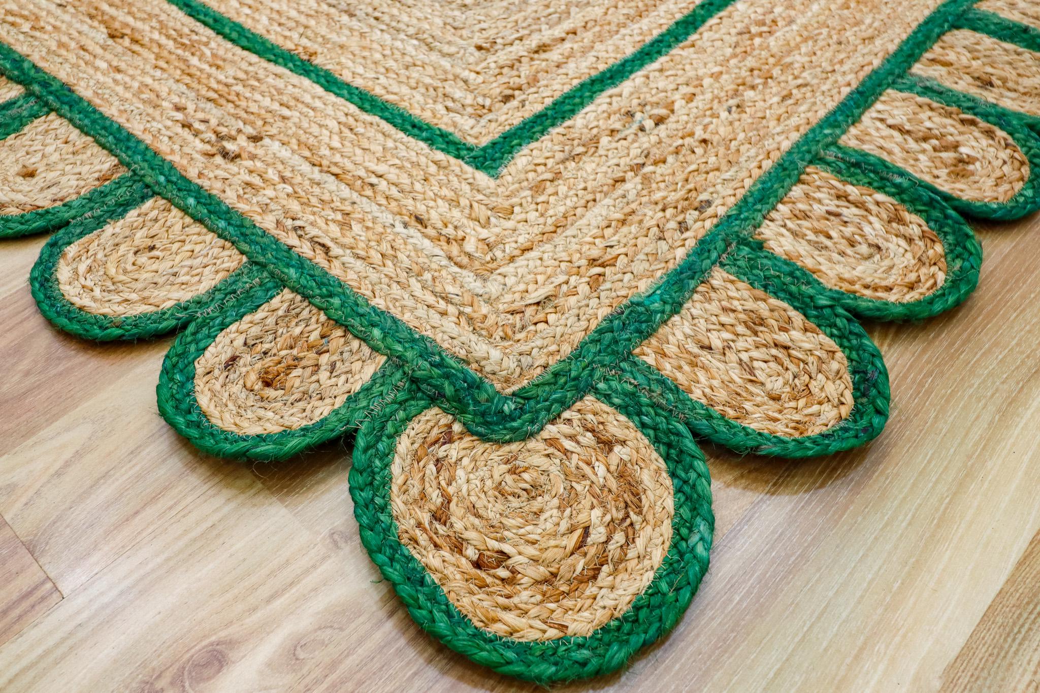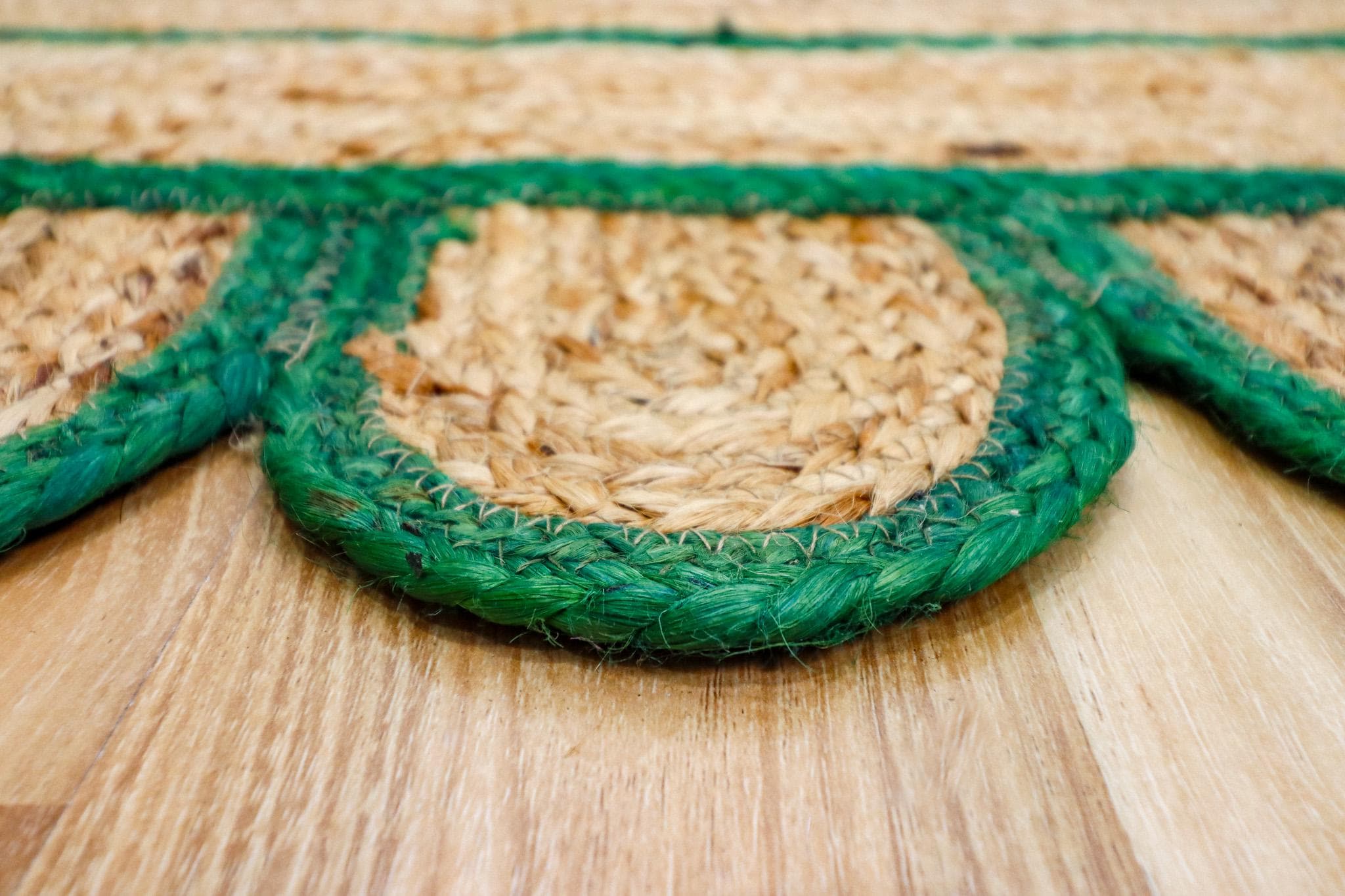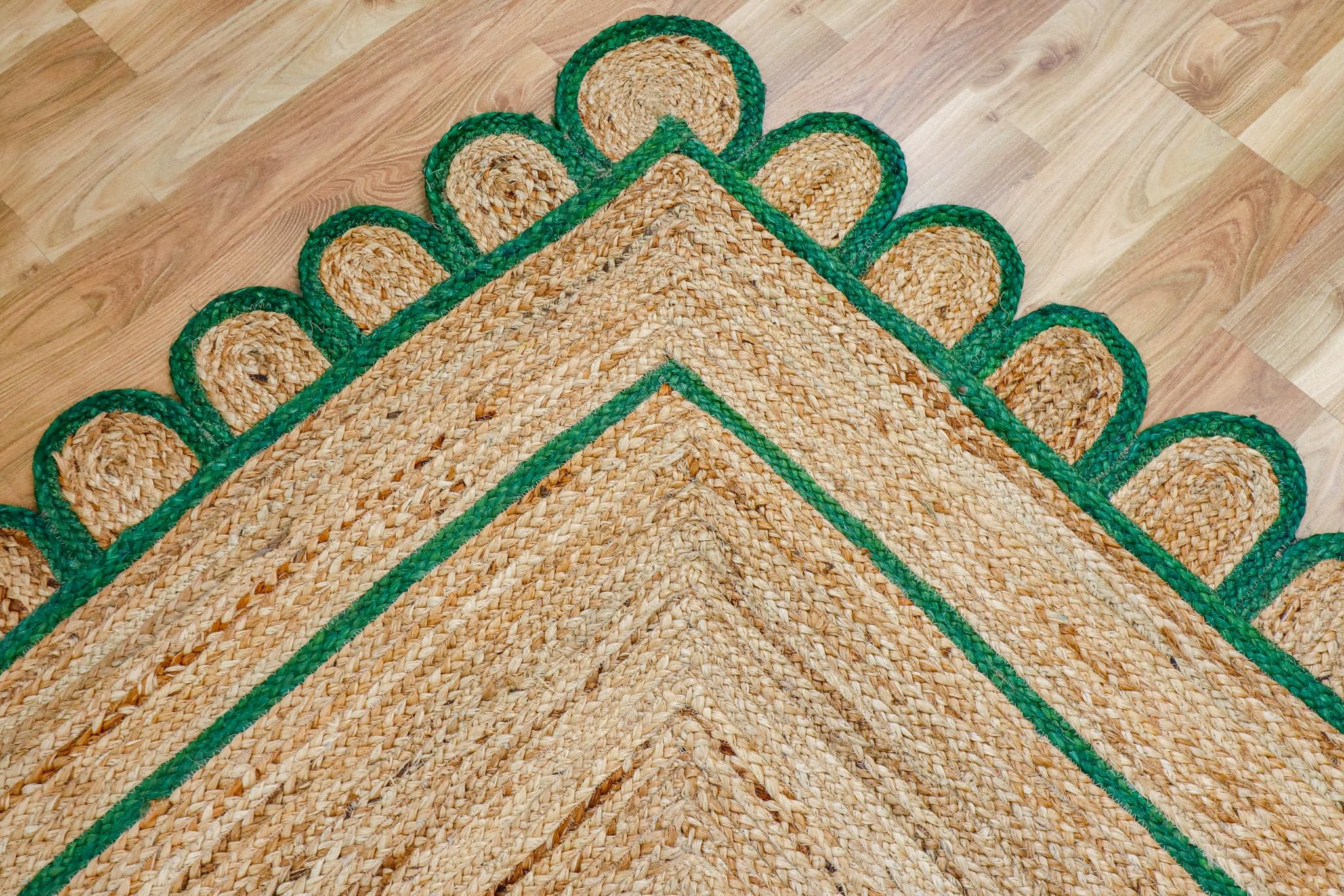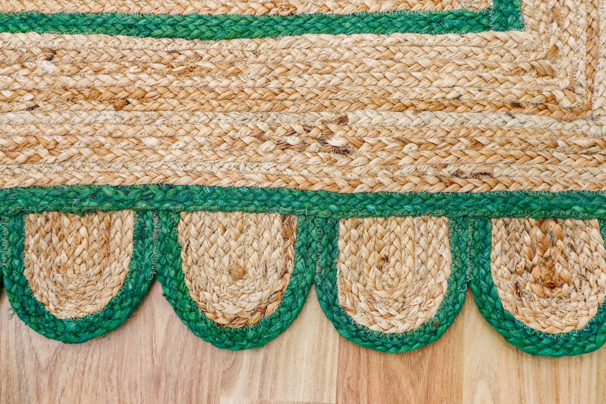 Hand Braided Jute Rug: Green Scallop Bohemian Decor