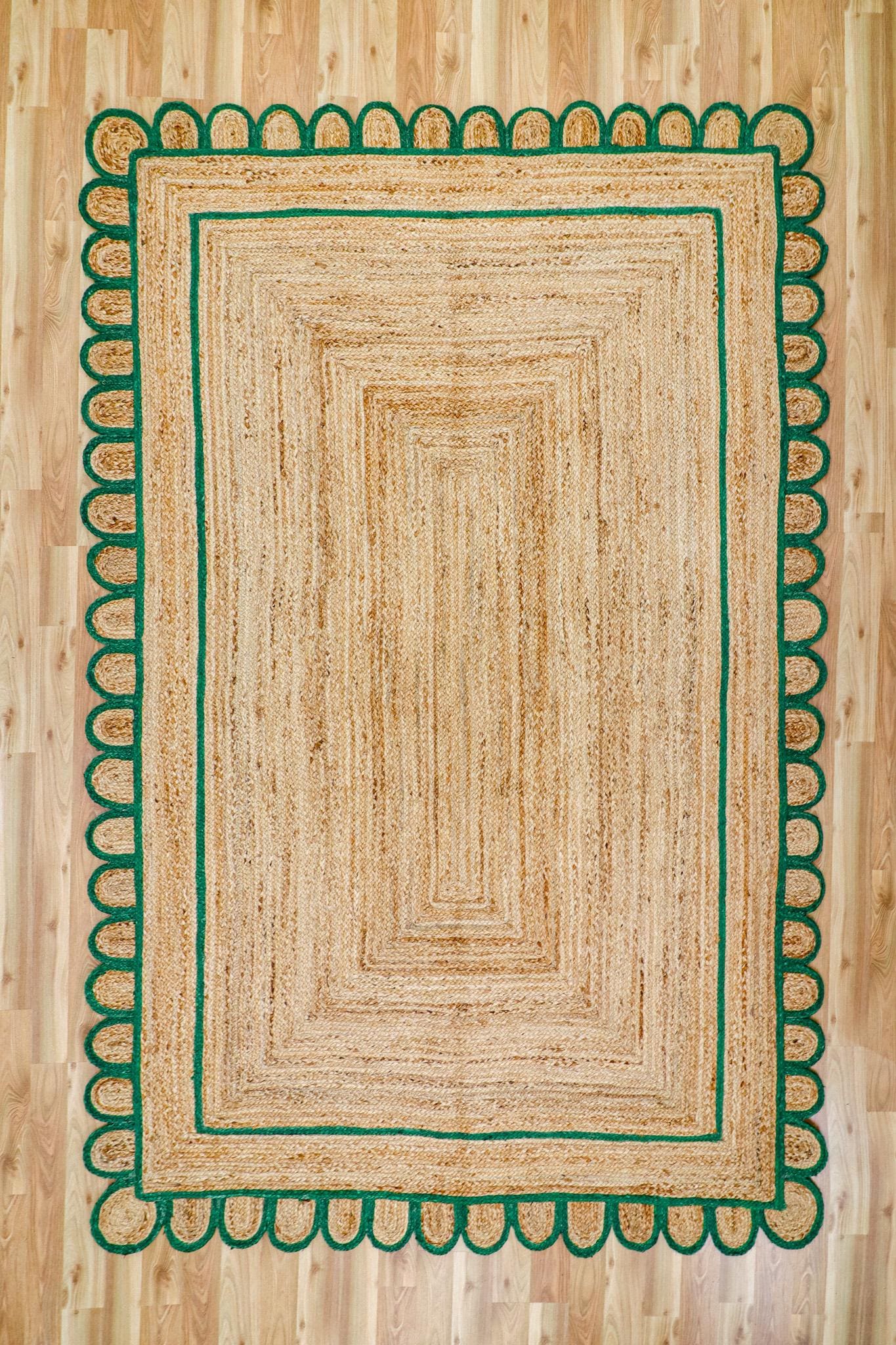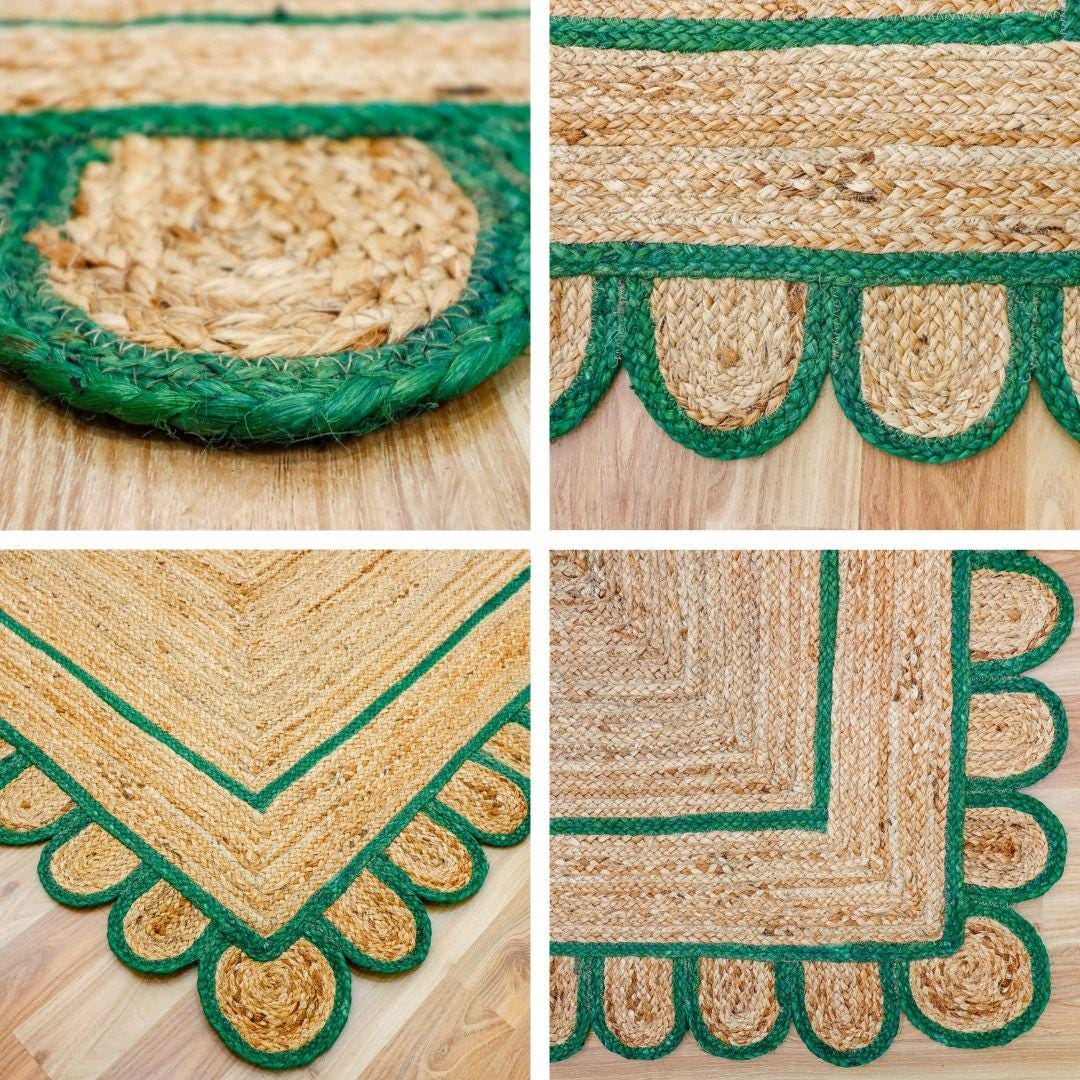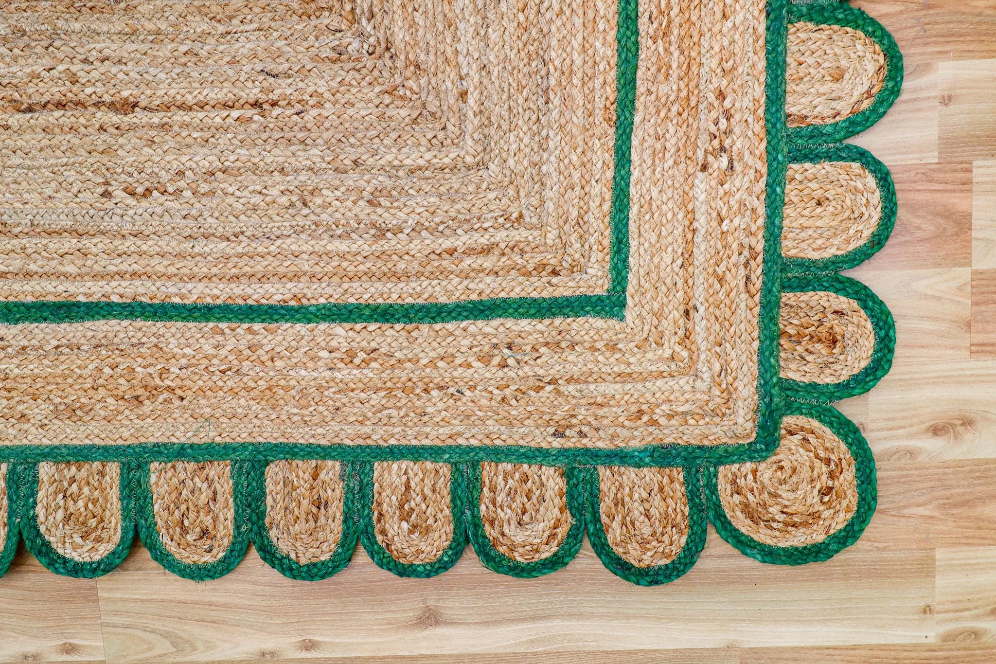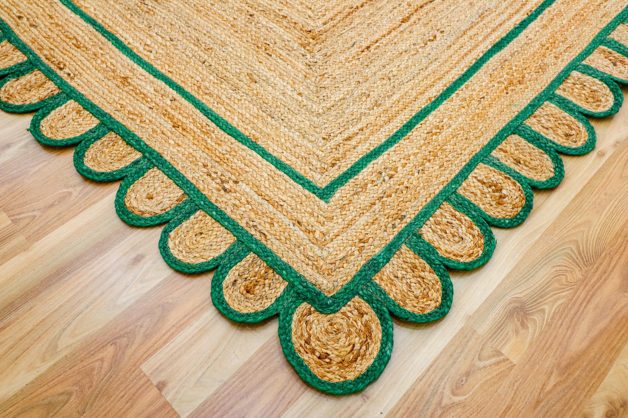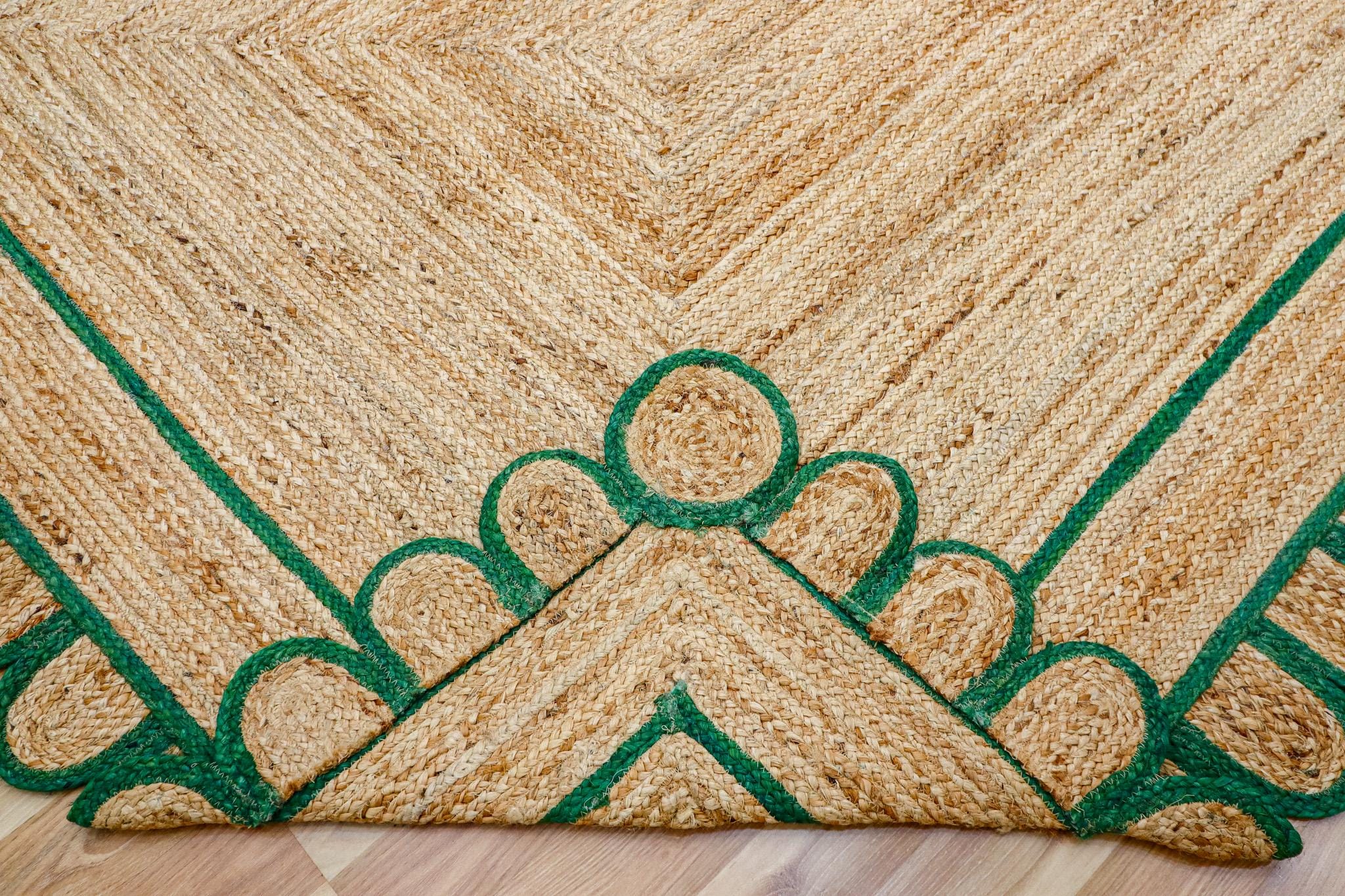 Hand Braided Jute Rug: Green Scallop Bohemian Decor