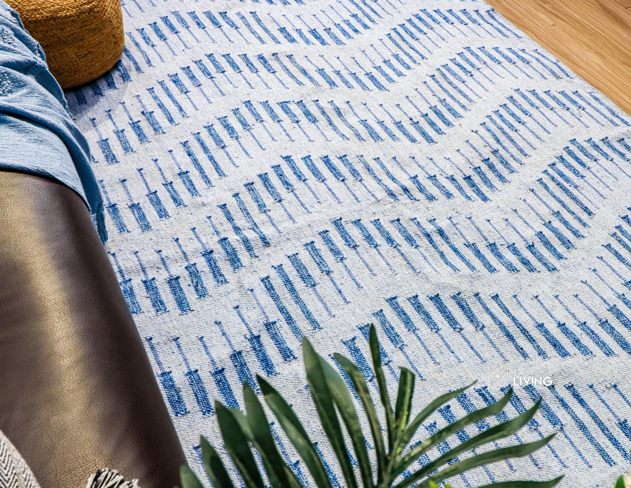 Blue Abstract Kilim Modern Bohemian abstract Premium Wool rug, Customization available