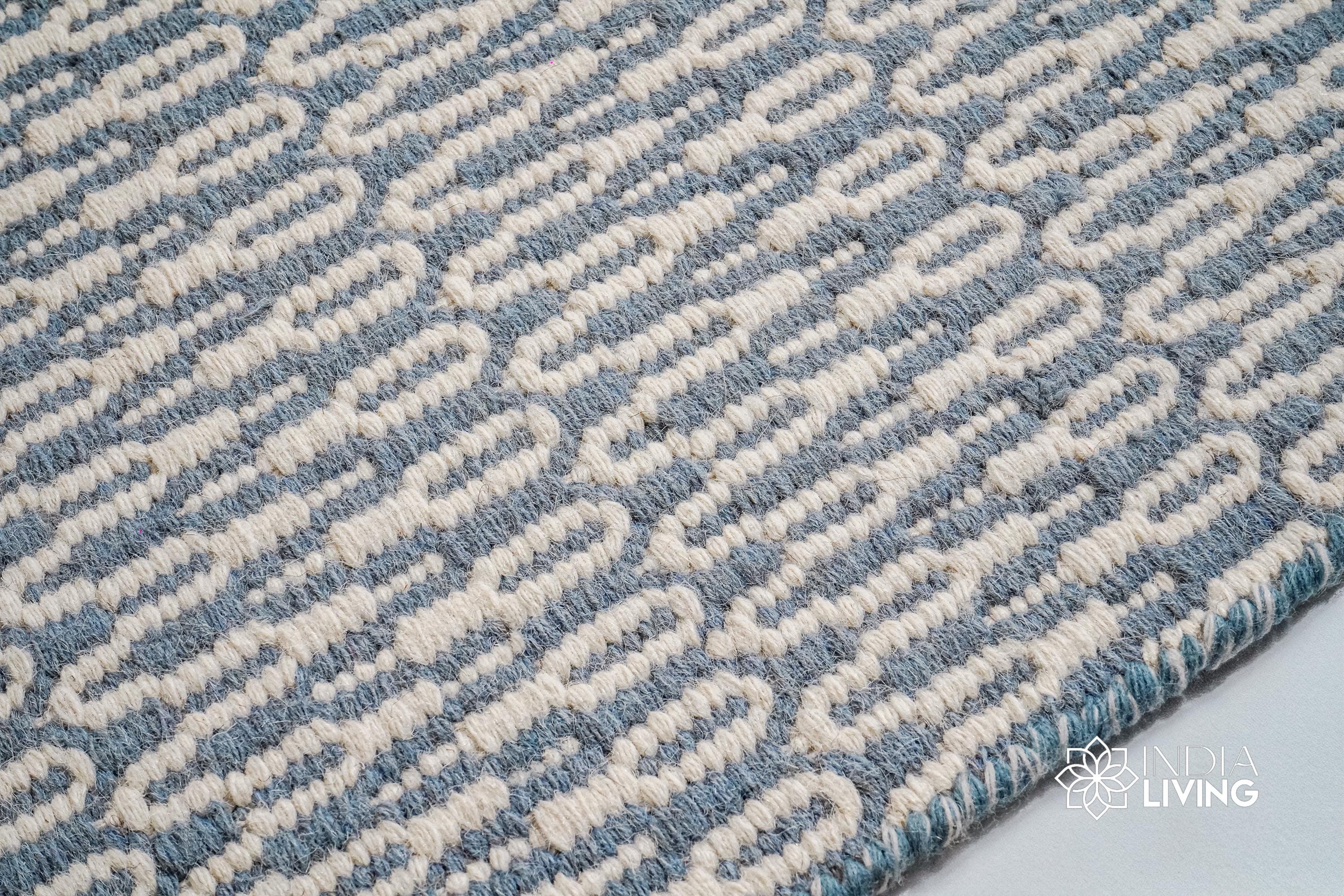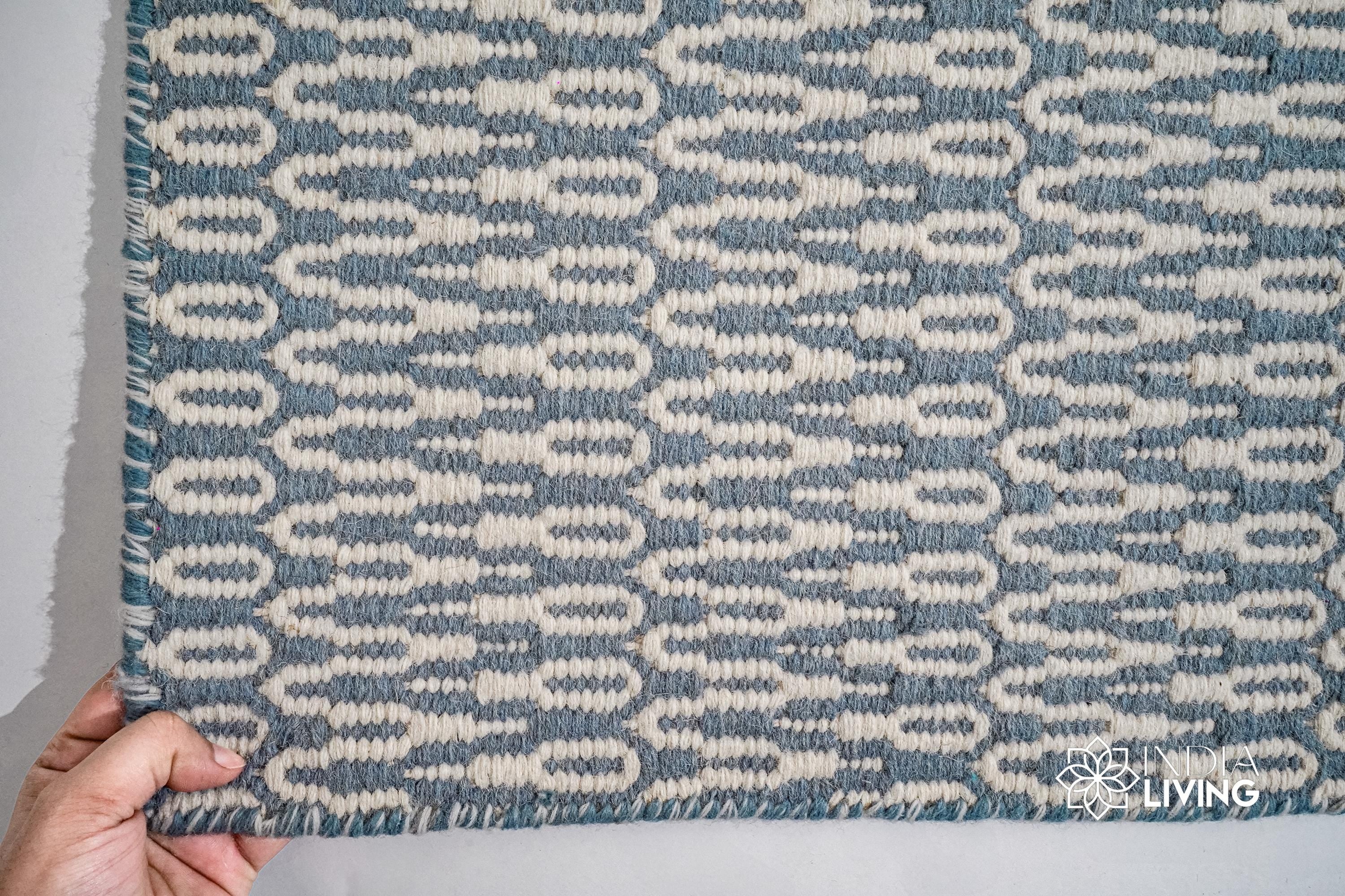 Bluish Grey Handwoven Flatweave Modern Boho Geometric Wool rug, Custom made in all sizes