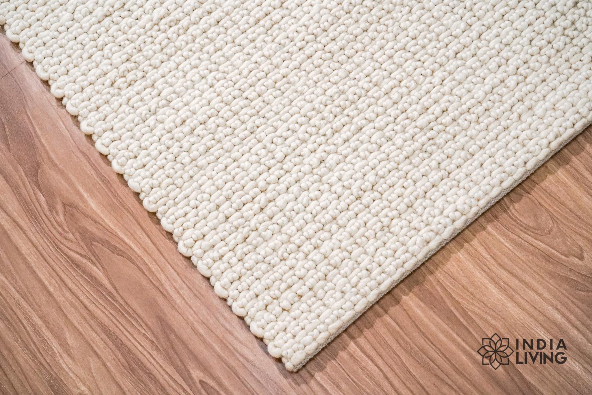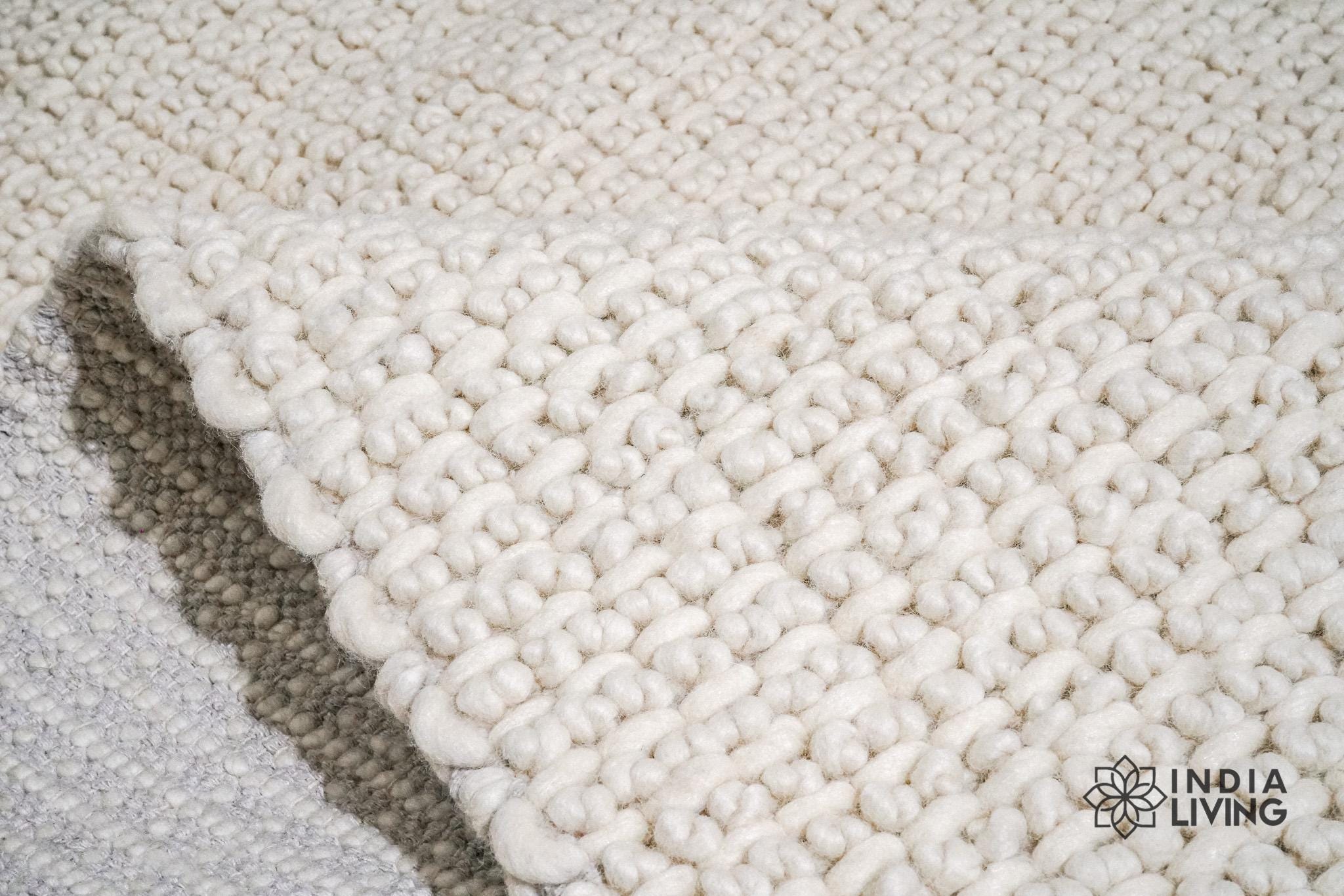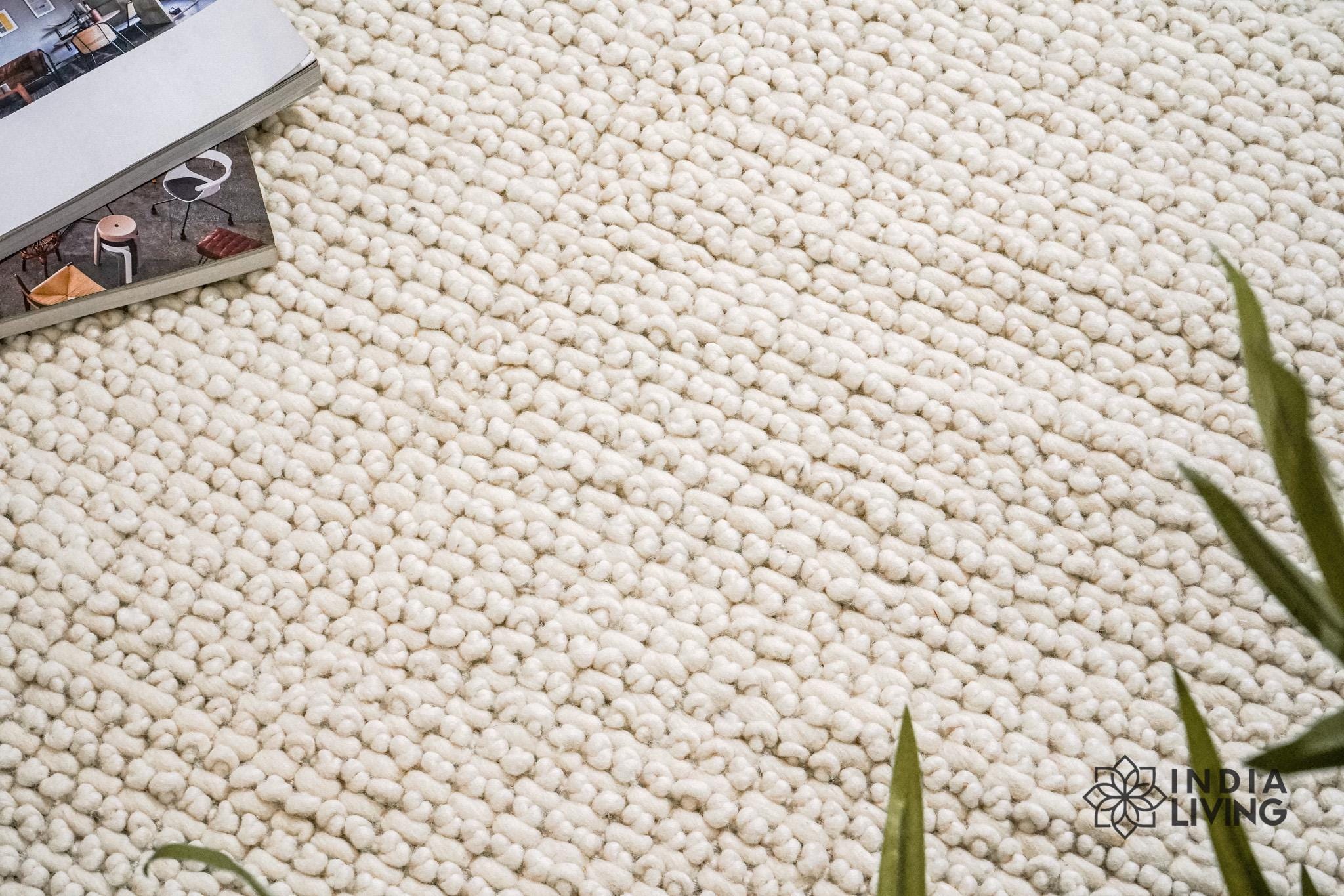 Handwoven Ivory knitted chunky looped Modern Scandinavian Decor Custom made wool rug, Customize in any size