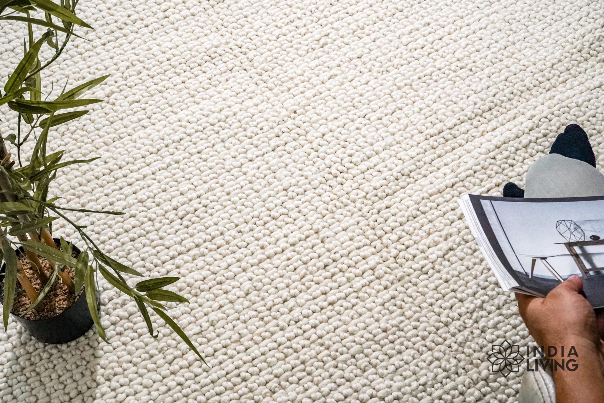The chunky texture of these rugs adds a cozy, inviting feel to any room, making them perfect for use in living rooms, bedrooms, and other areas where you want to add warmth and comfort. The wool material is naturally stain-resistant and easy to clean, making it a practical choice for high-traffic areas.