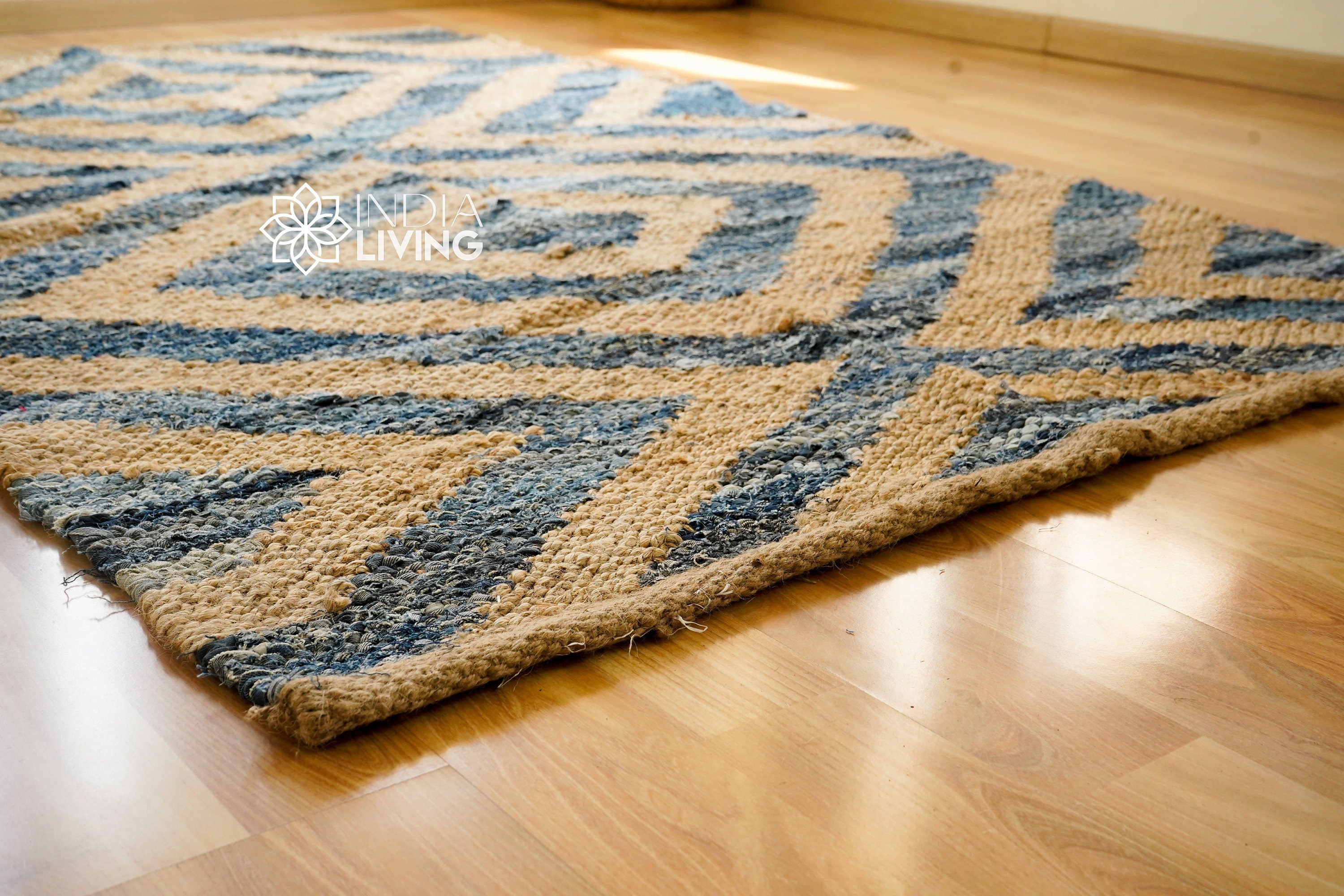 Introducing our Handmade Denim Jute Rug, a unique and stylish addition to any home decor. This beautiful rug is carefully handcrafted from a blend of durable jute fibers and recycled denim, giving it a distinctive look and feel.