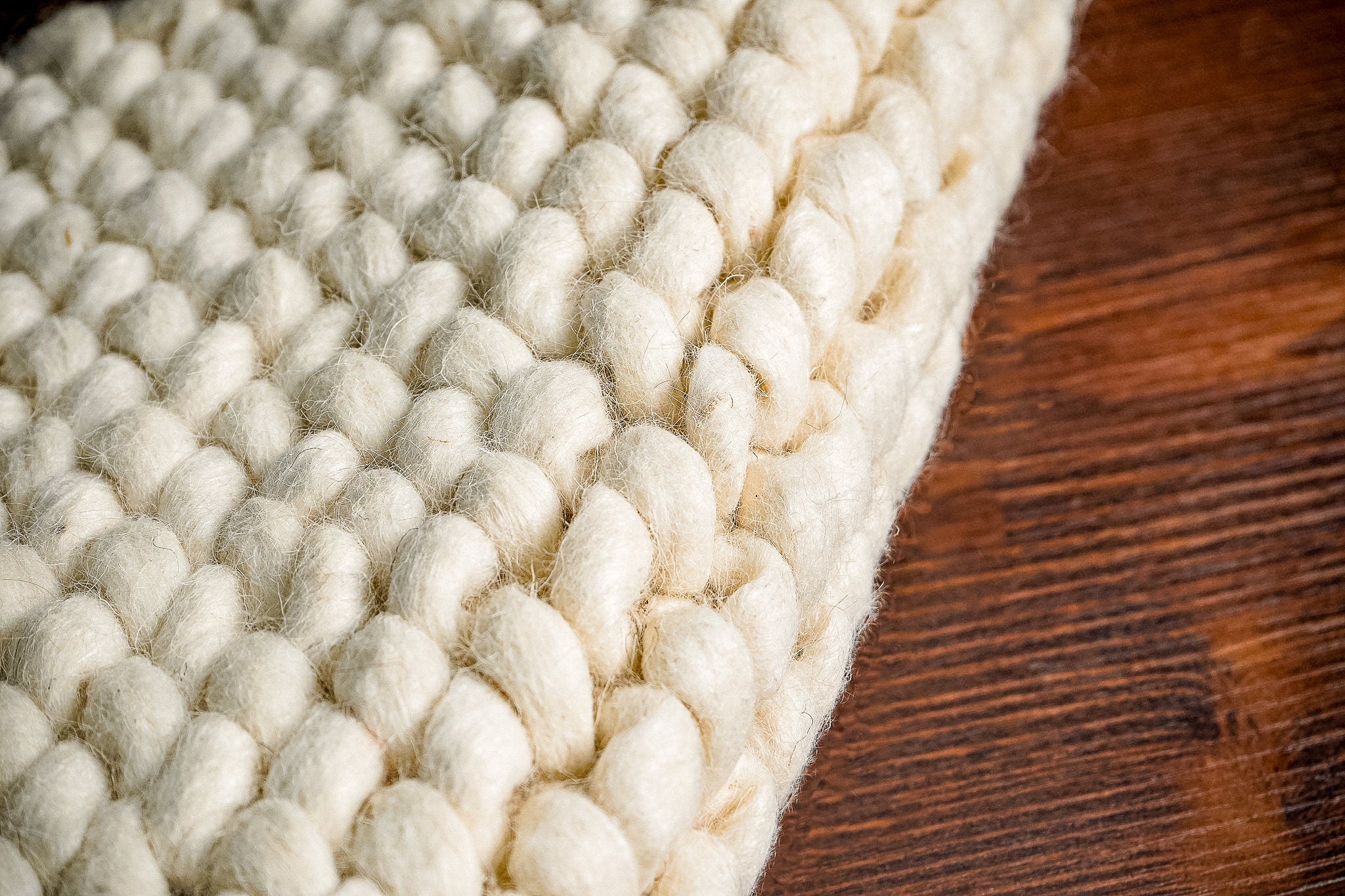 The chunky texture of these rugs adds a cozy, inviting feel to any room, making them perfect for use in living rooms, bedrooms, and other areas where you want to add warmth and comfort. The wool material is naturally stain-resistant and easy to clean, making it a practical choice for high-traffic areas.