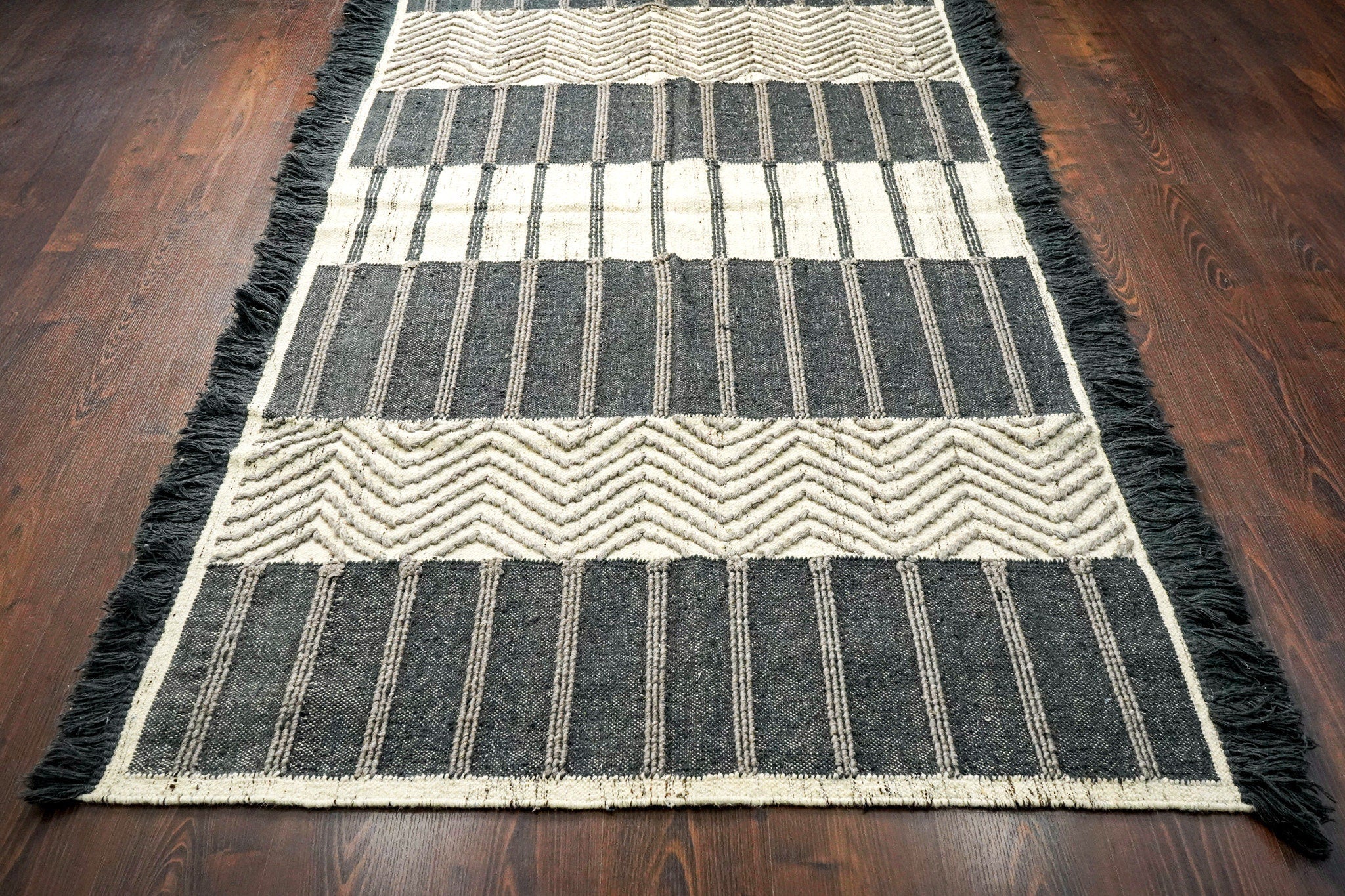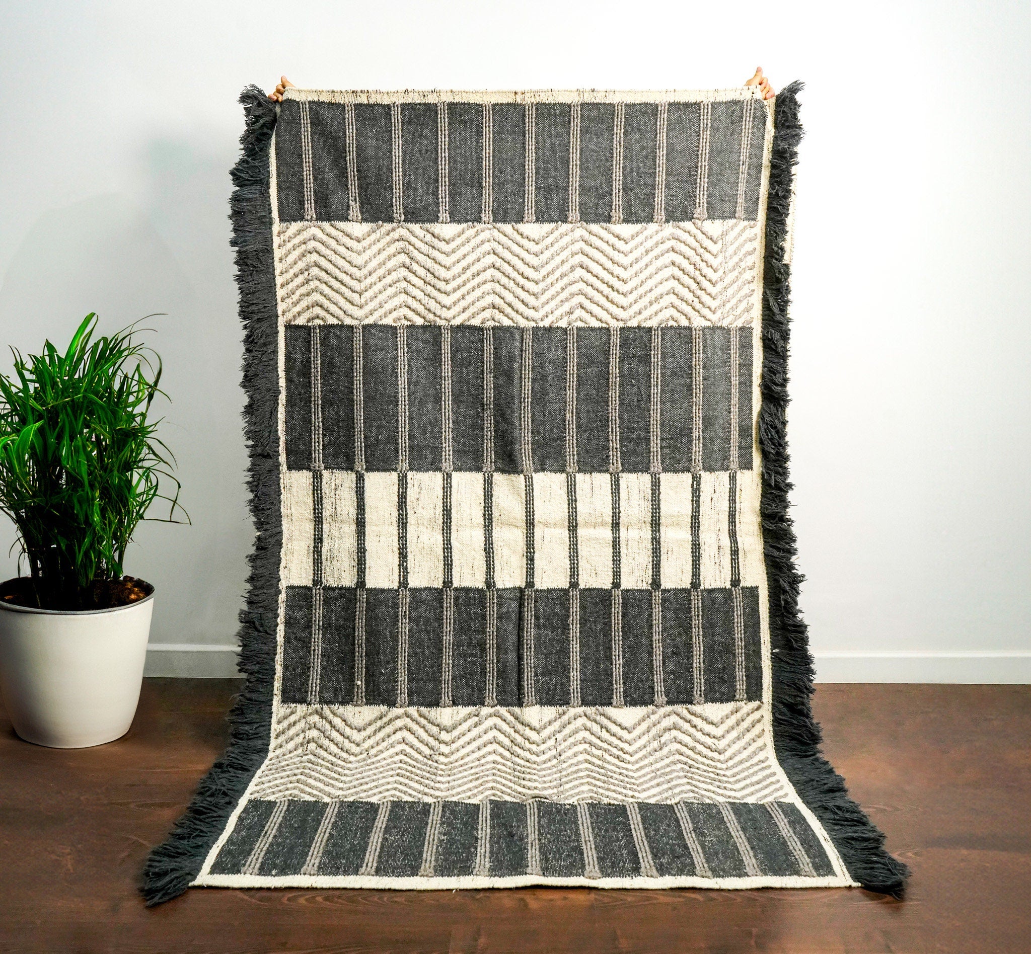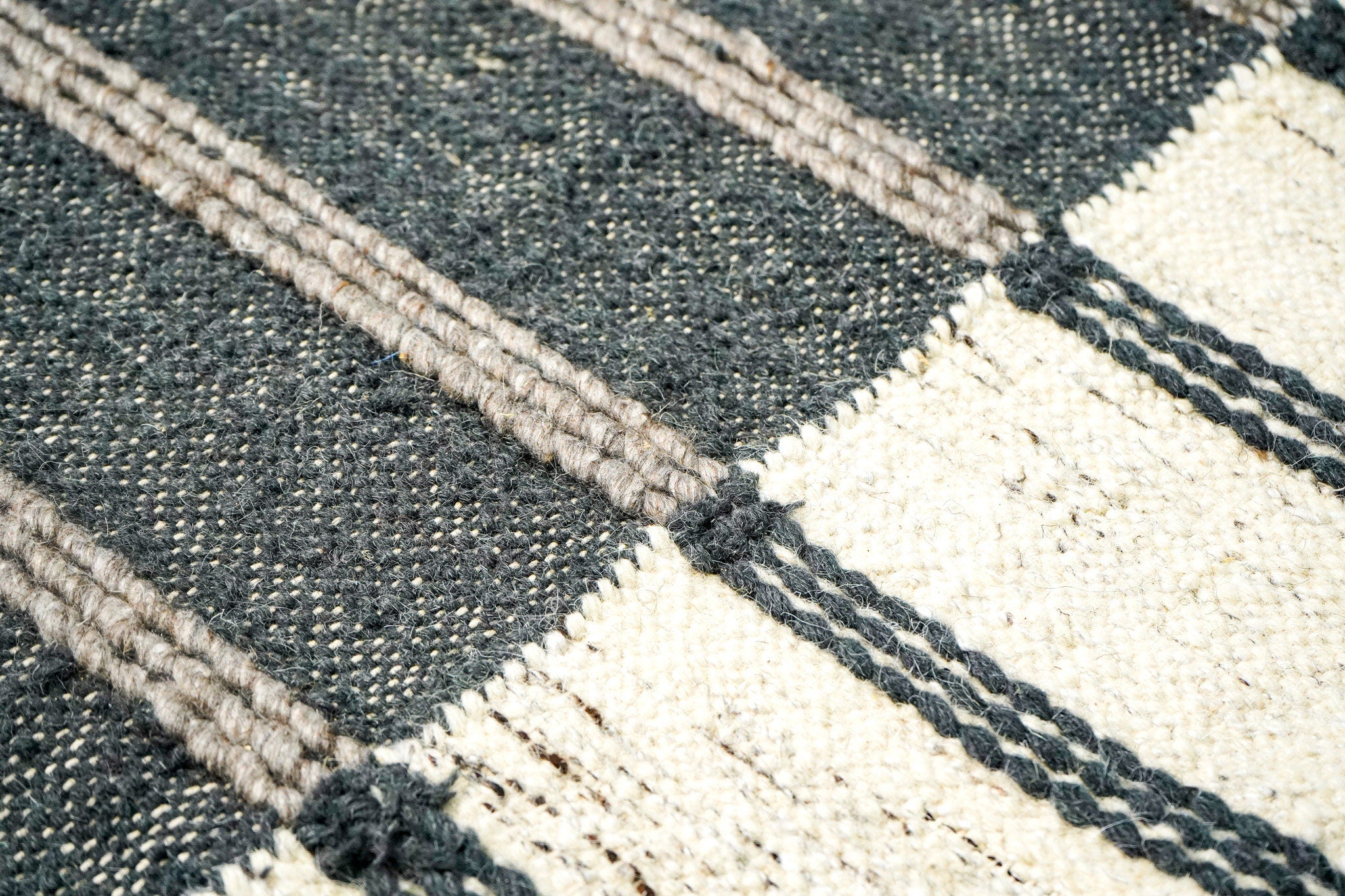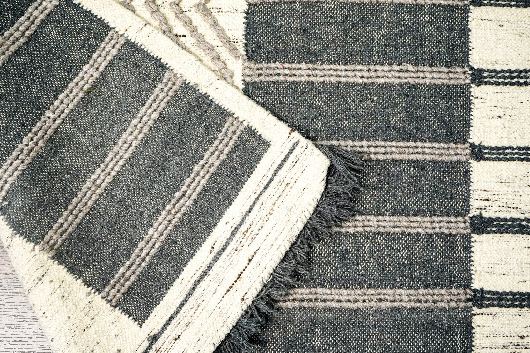 Hand woven Modern Scandinavian decor Abstract style Striped Flat weave premium Grey wool area rug, Custom made in all sizes
