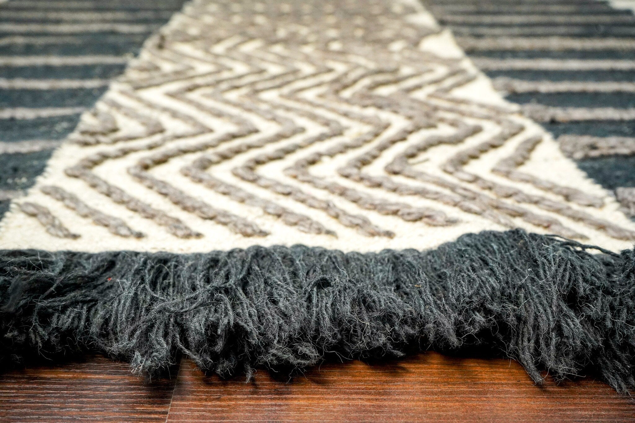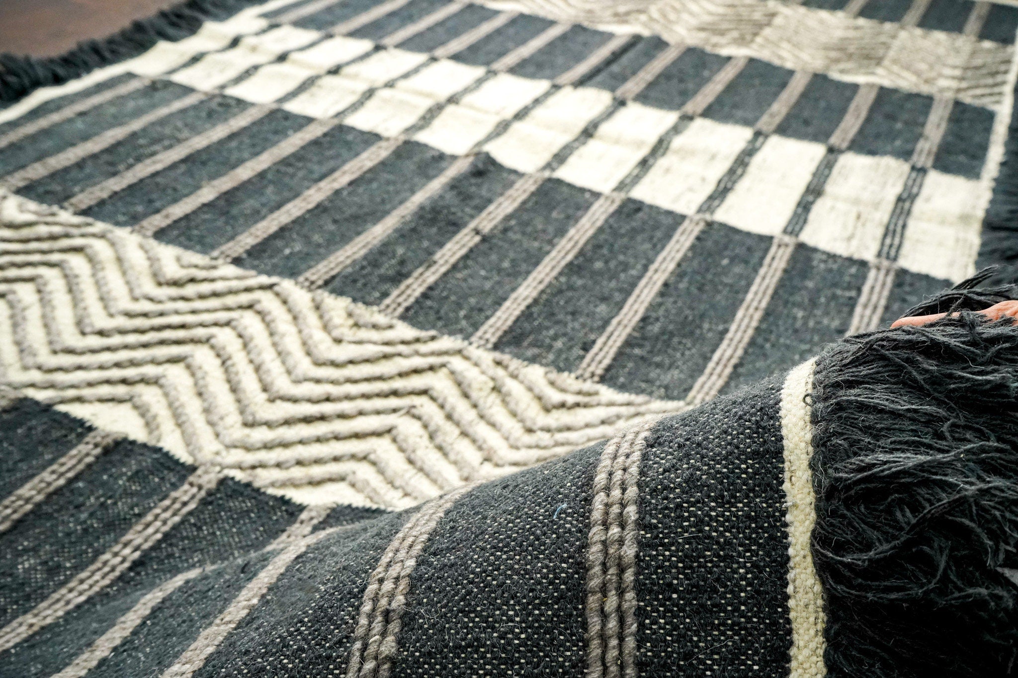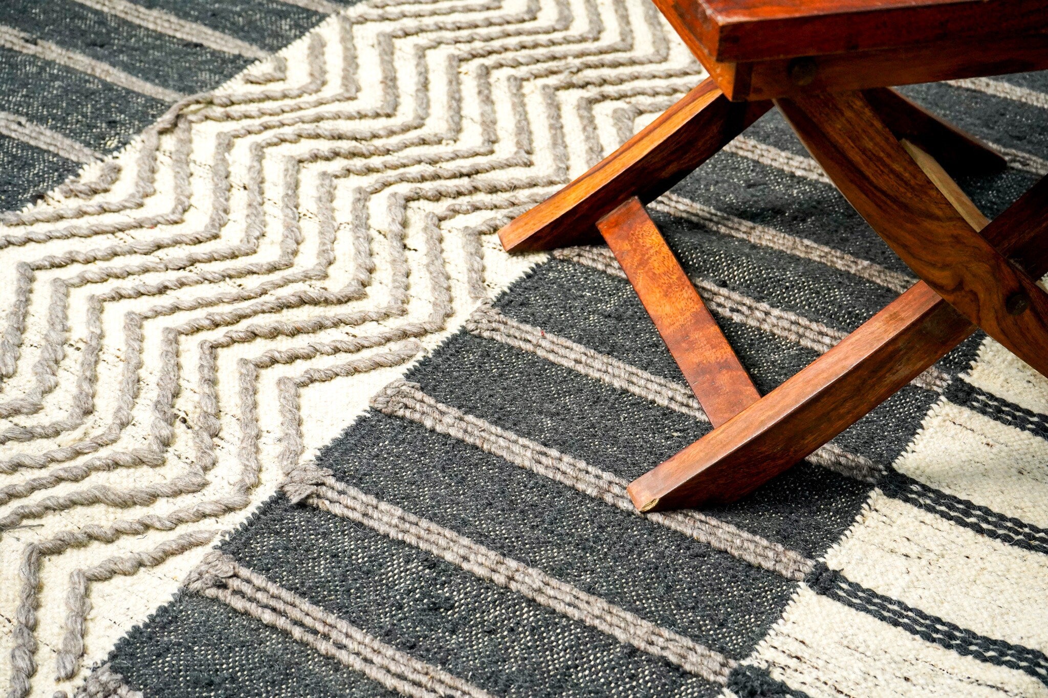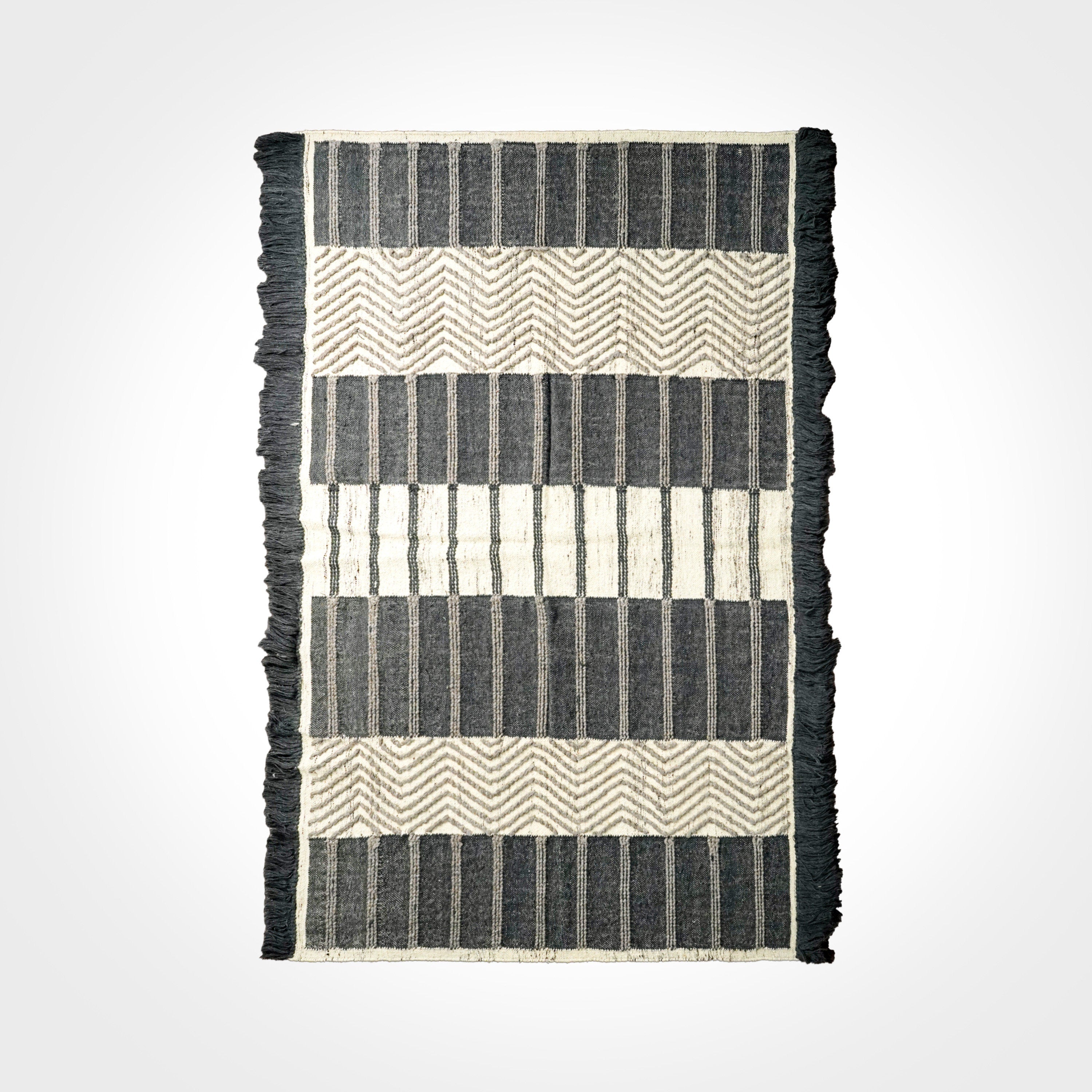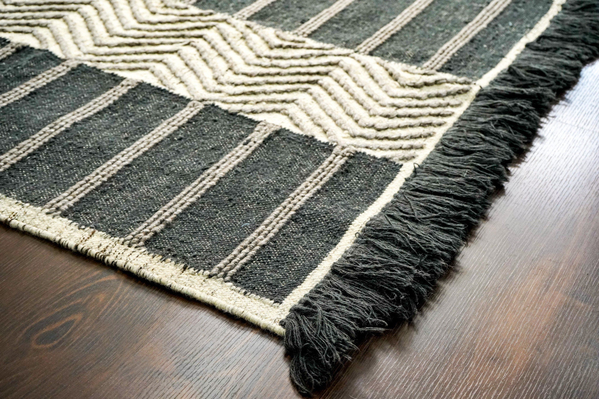 Hand woven Modern Scandinavian decor Abstract style Striped Flat weave premium Grey wool area rug, Custom made in all sizes