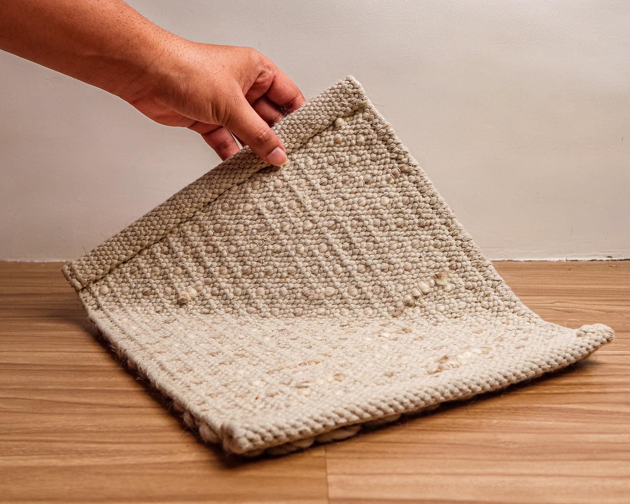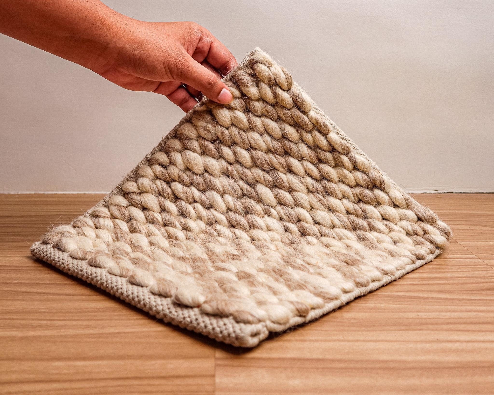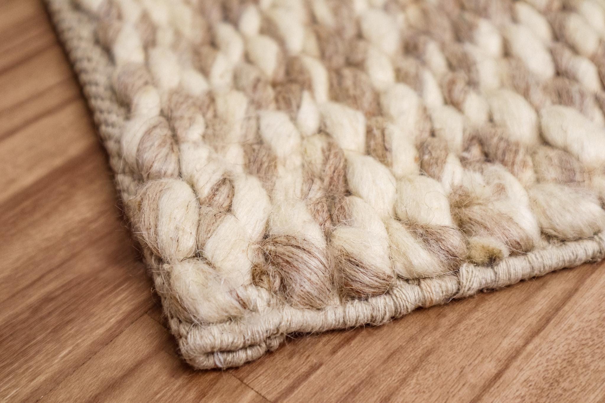 Handwoven Chunky Honeycomb Weave Style Taupe Beige Wool Area Rug, Modern Handmade Premium indoor wool rug, Custom made in all sizes