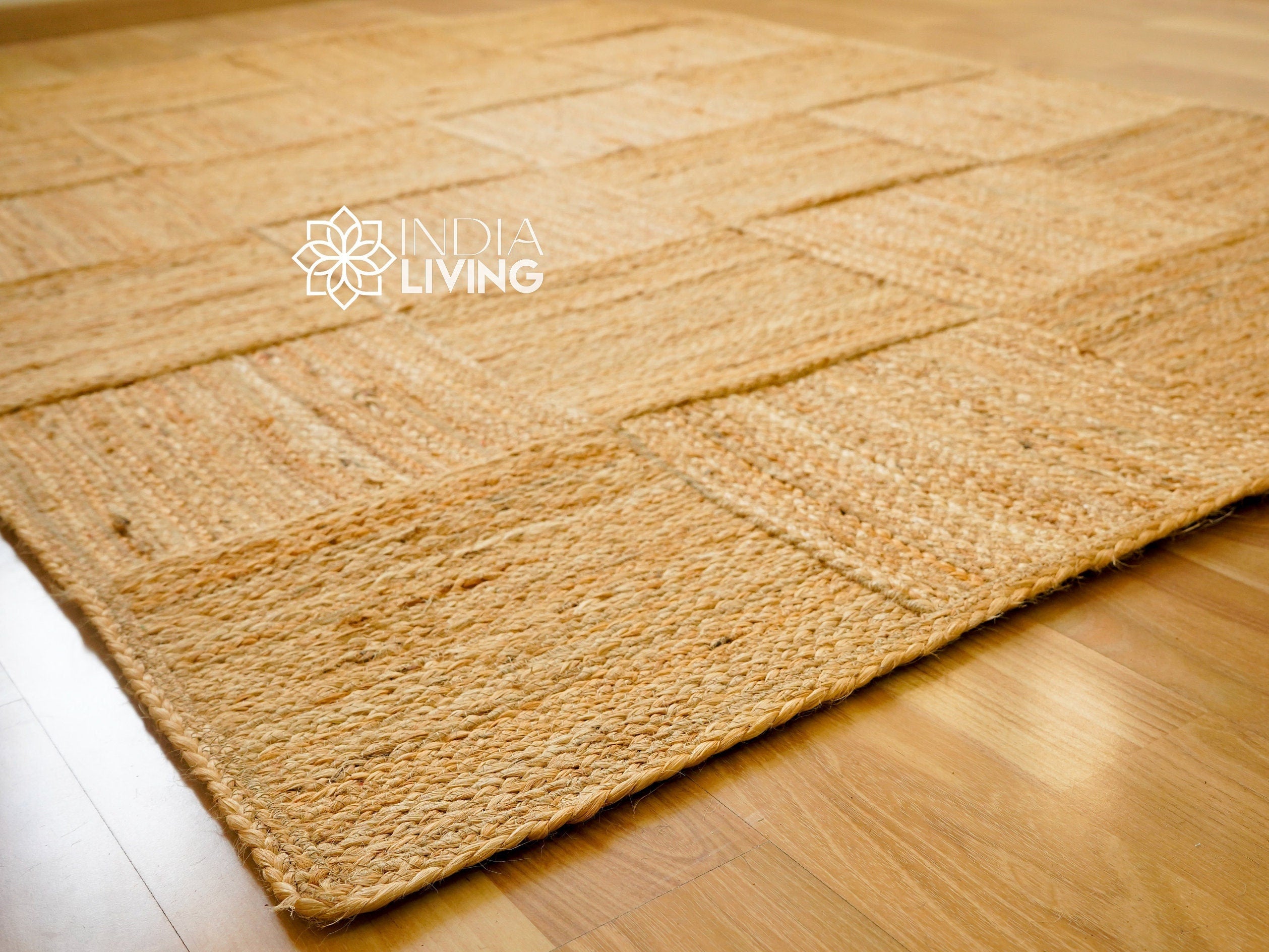 Handwoven Jute Area rug, Natural Square pattern jute rug, Room Decor Rug, Braided Jute rug, Large Bohemian Rug | Eco Friendly Fiber Jute Rug