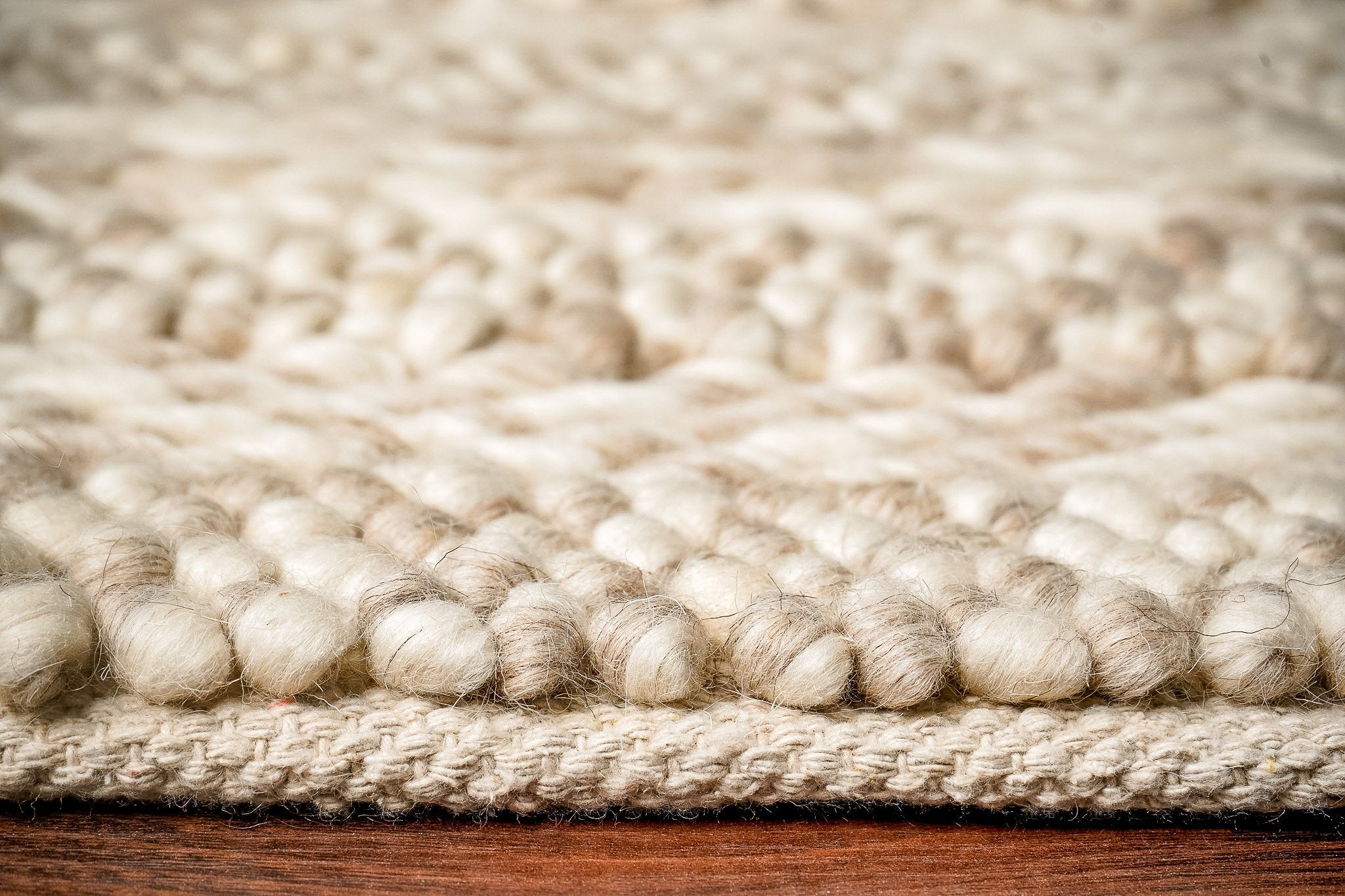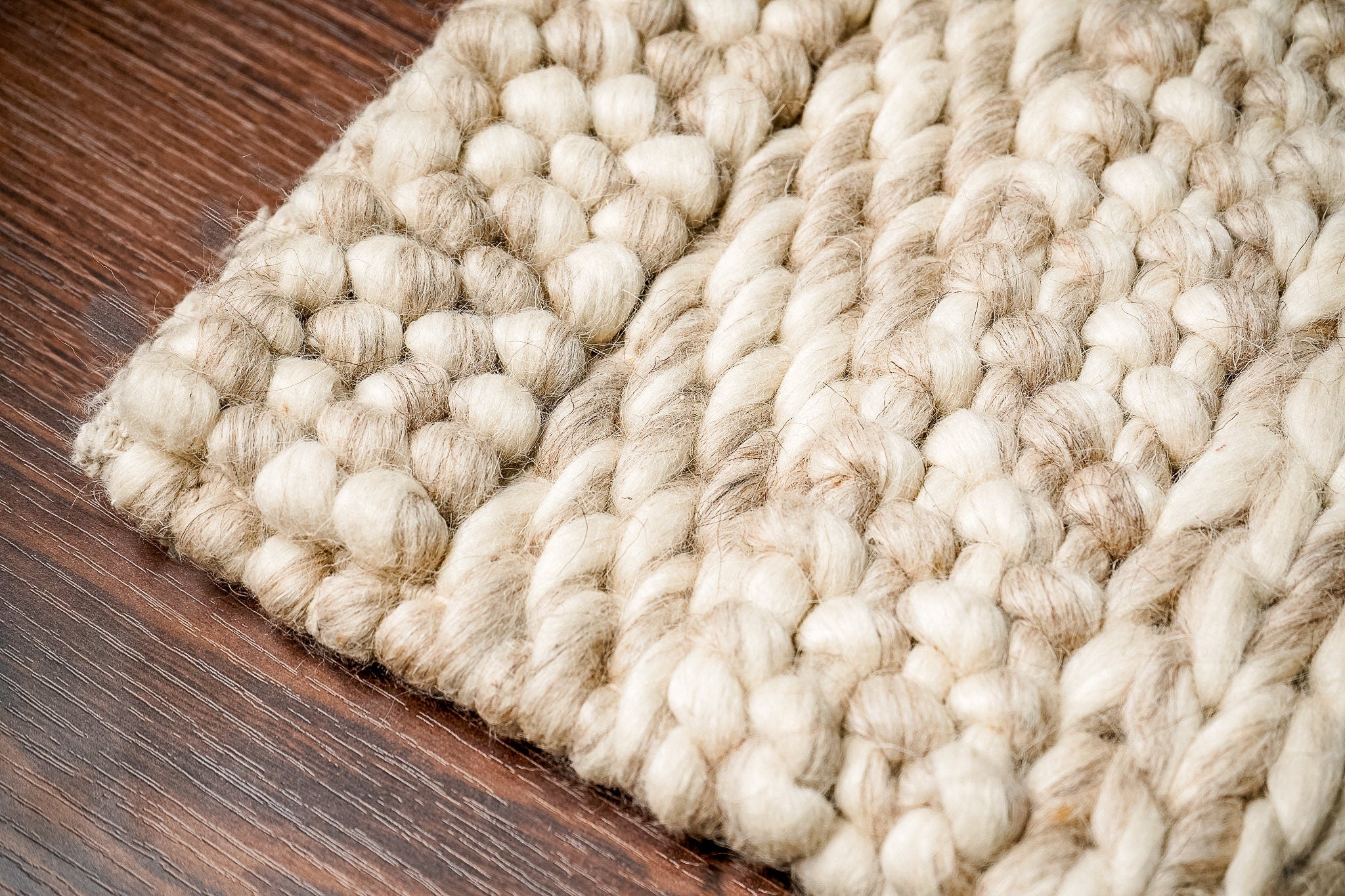 The chunky texture of these rugs adds a cozy, inviting feel to any room, making them perfect for use in living rooms, bedrooms, and other areas where you want to add warmth and comfort. The wool material is naturally stain-resistant and easy to clean, making it a practical choice for high-traffic areas.