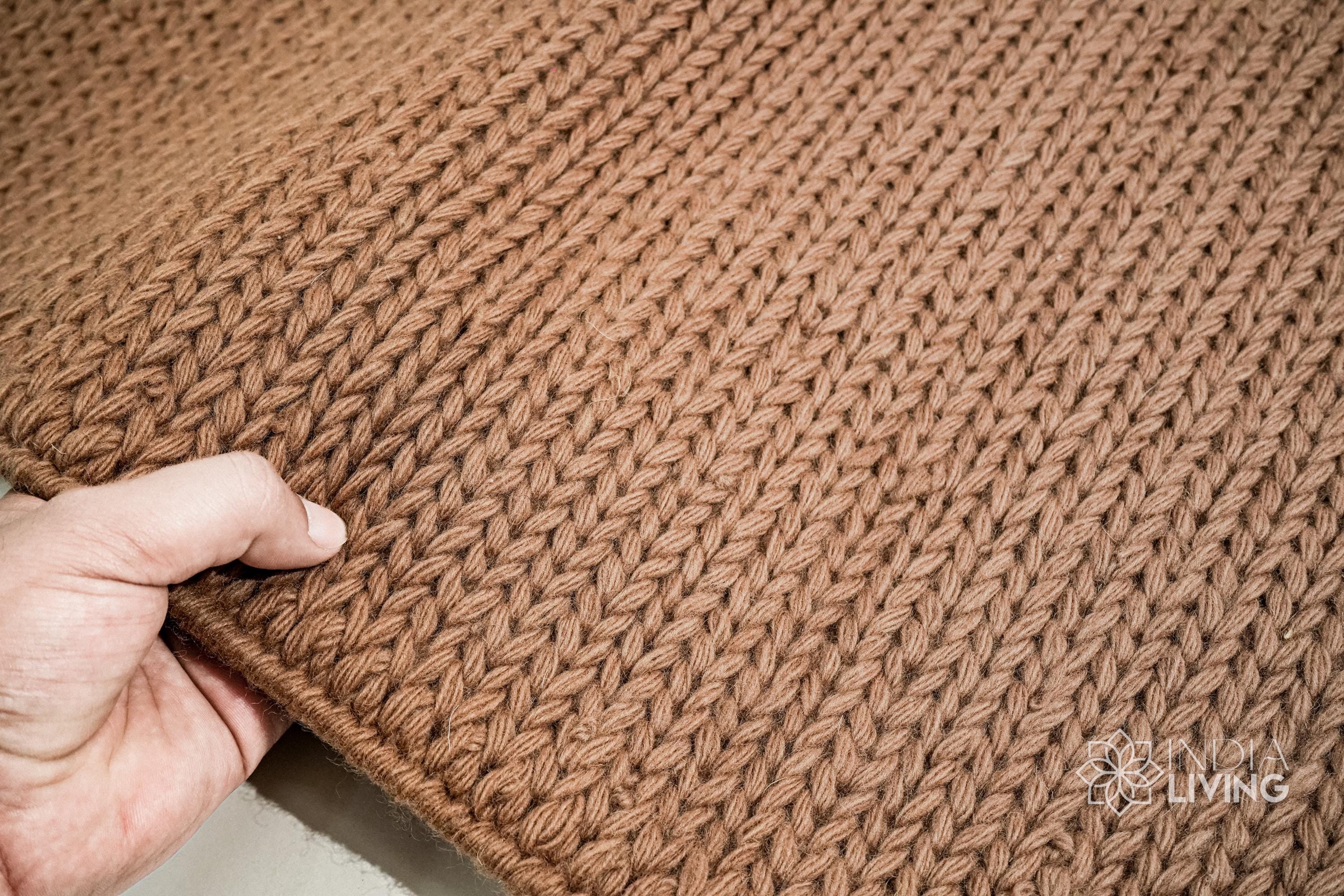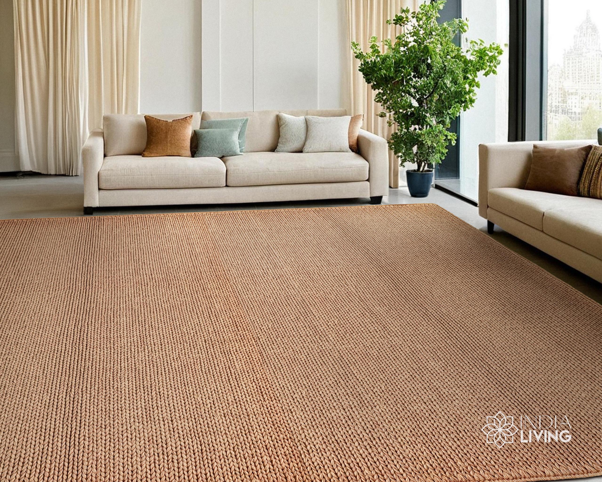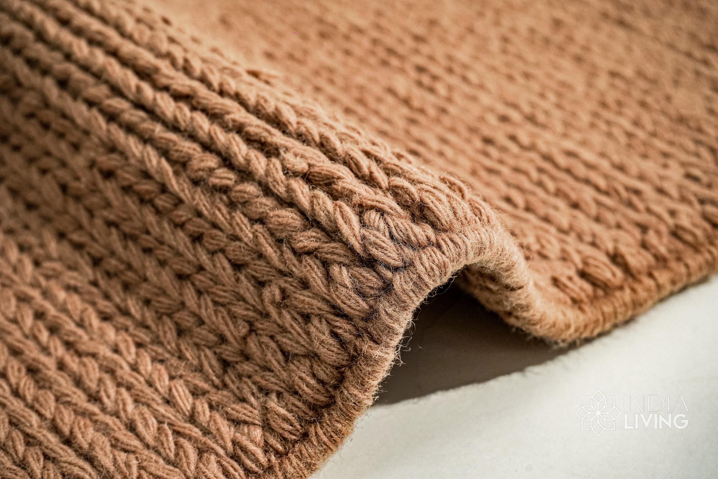 Handwoven Tan Brown Sumac Braided wool rug - Chunky Knitted Modern Scandinavian Decor - Custom made in all sizes