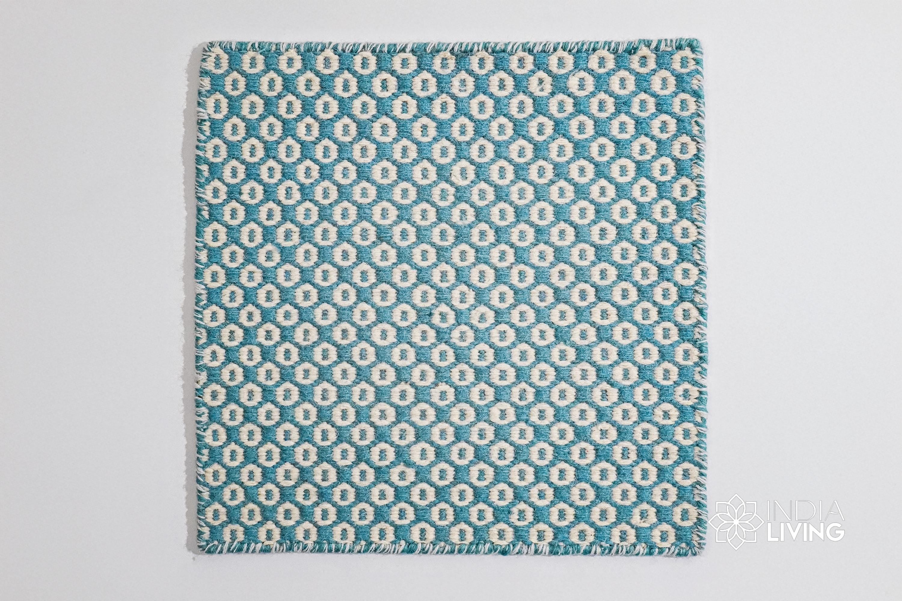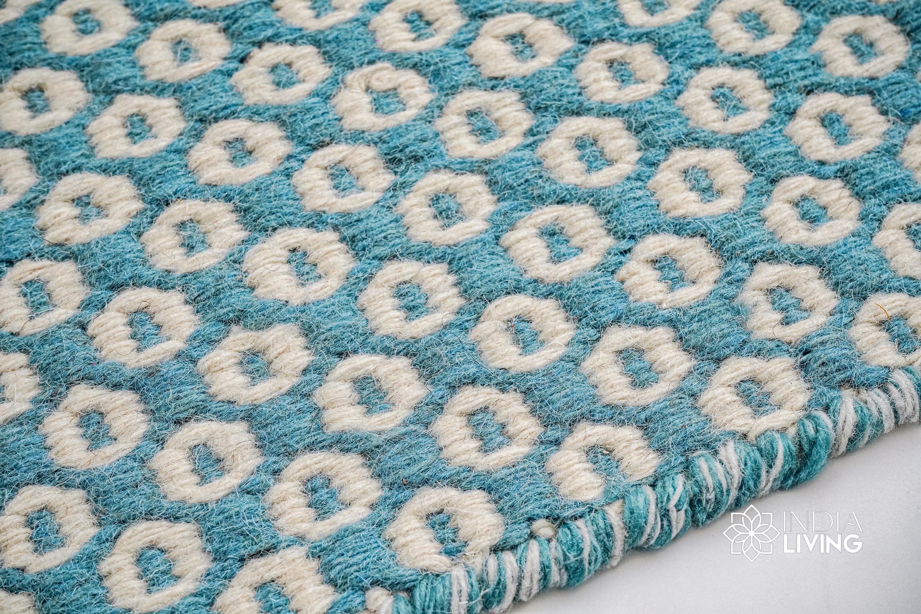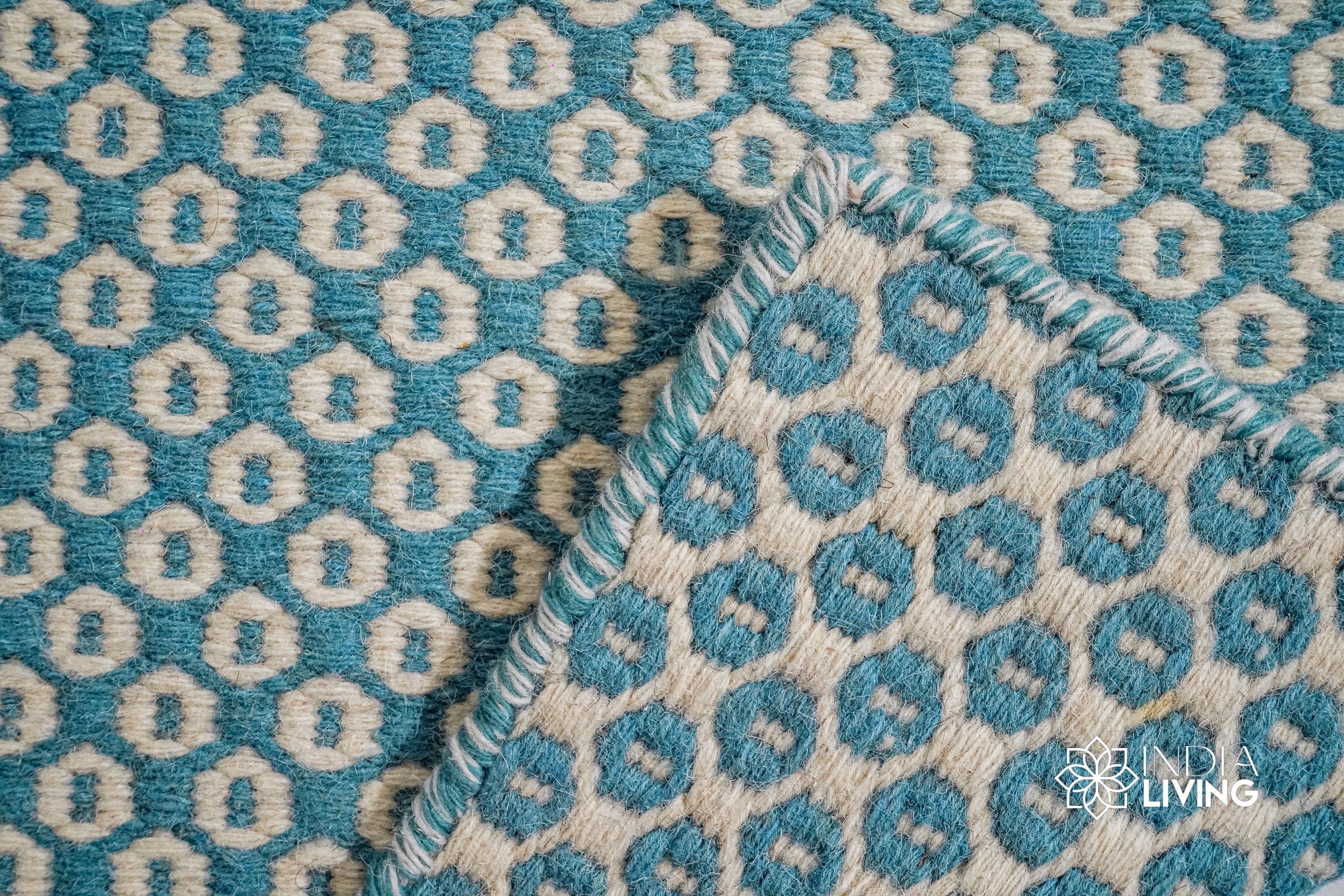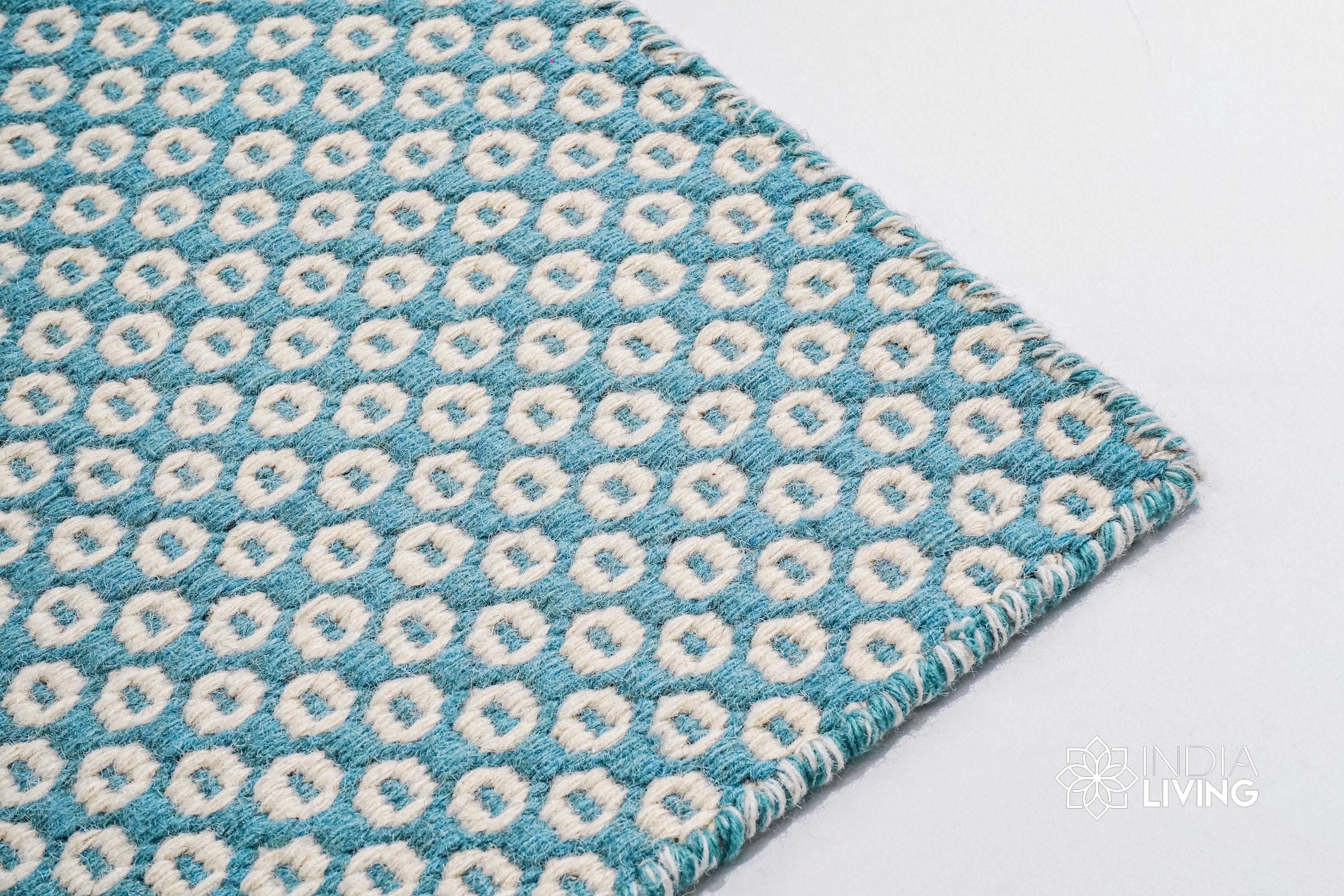 Handwoven Turquoise Blue Honeycomb Texture Flatweave Modern Boho Geometric Wool rug, Custom made in all sizes