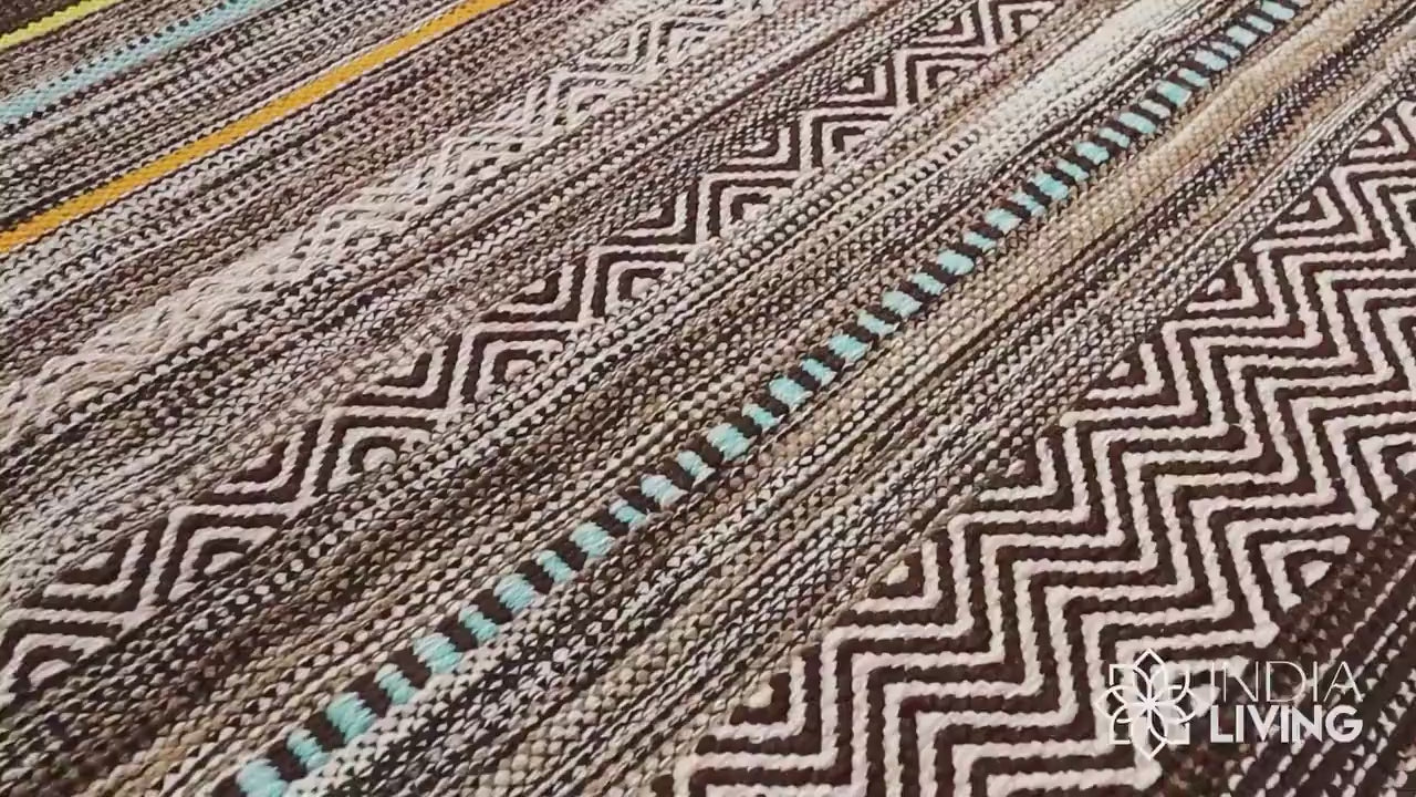 •Our Kaleen original design with Indian Cotton & Chenille yarn in rich and vibrant colours to light up your living room.