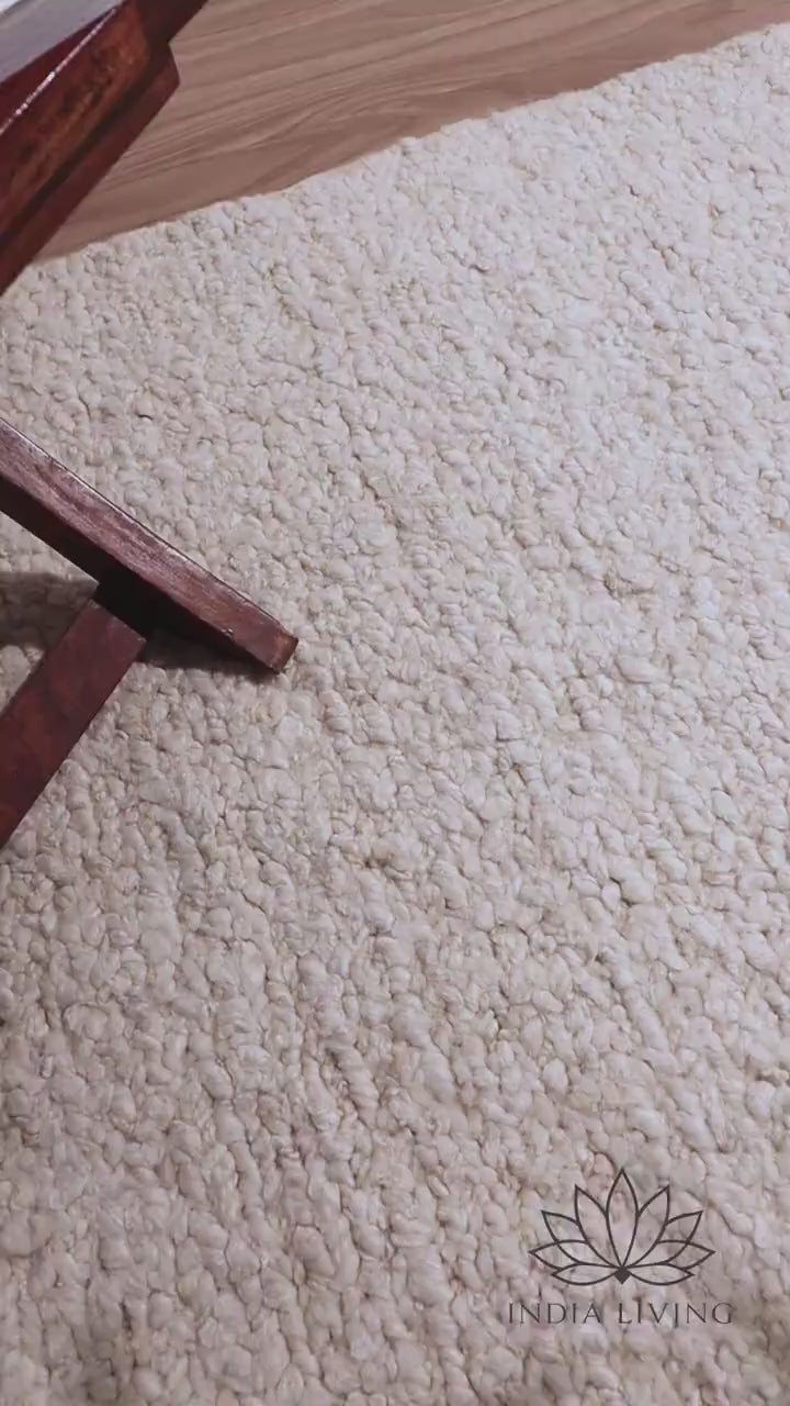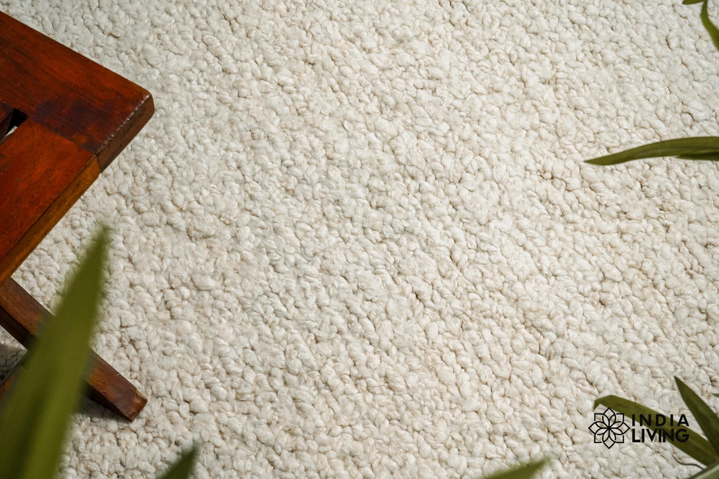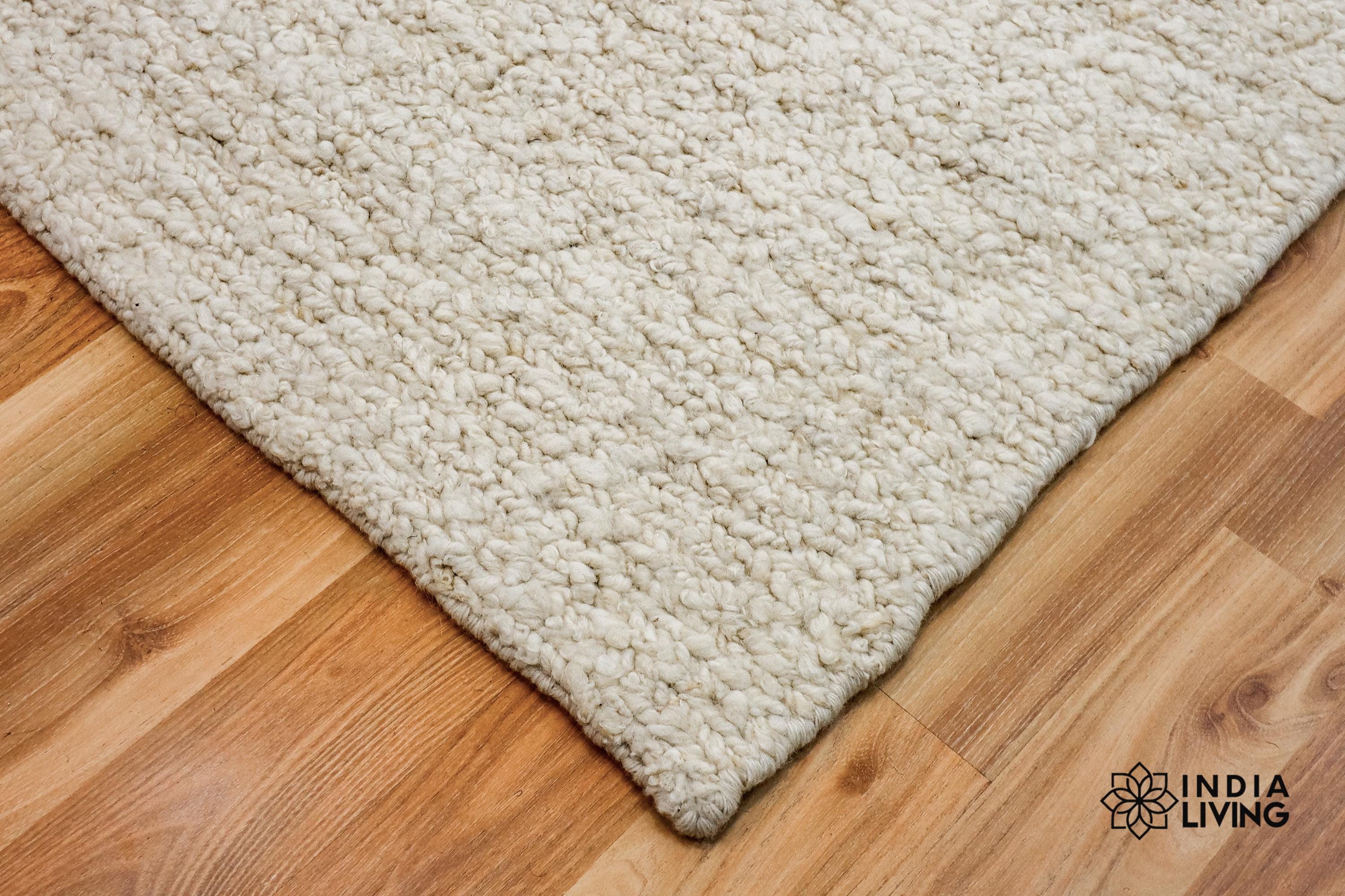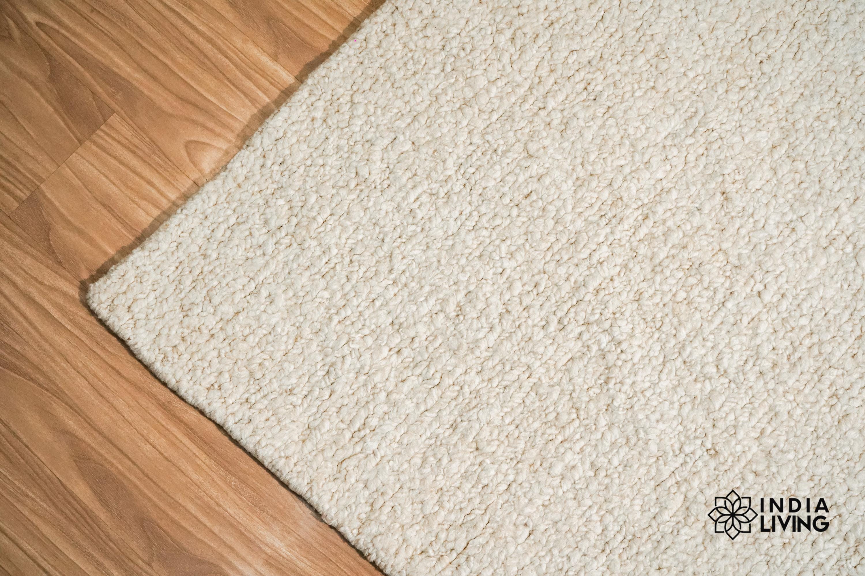 Ivory Cream Textured Chunky Premium Handwoven Scandinavian Indoor wool rug, Living room decor Cozy Pet-Friendly, Customization available