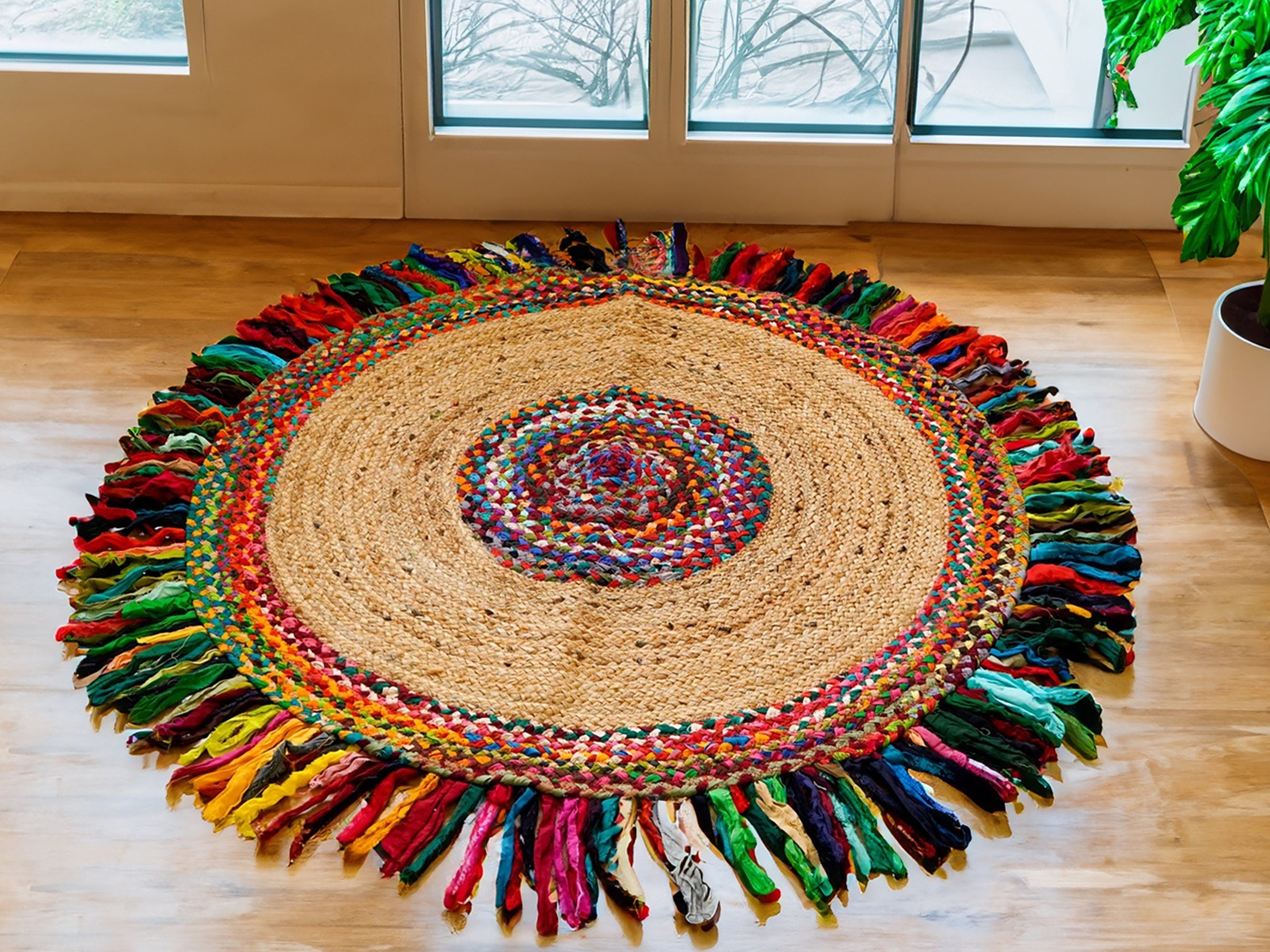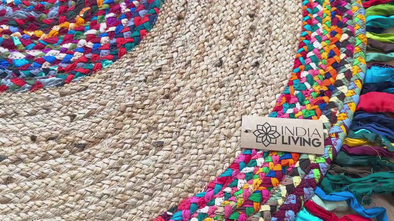 Welcome to our Etsy store! We're excited to introduce our Jute Chindi Round Mat, a beautiful and eco-friendly addition to any home.