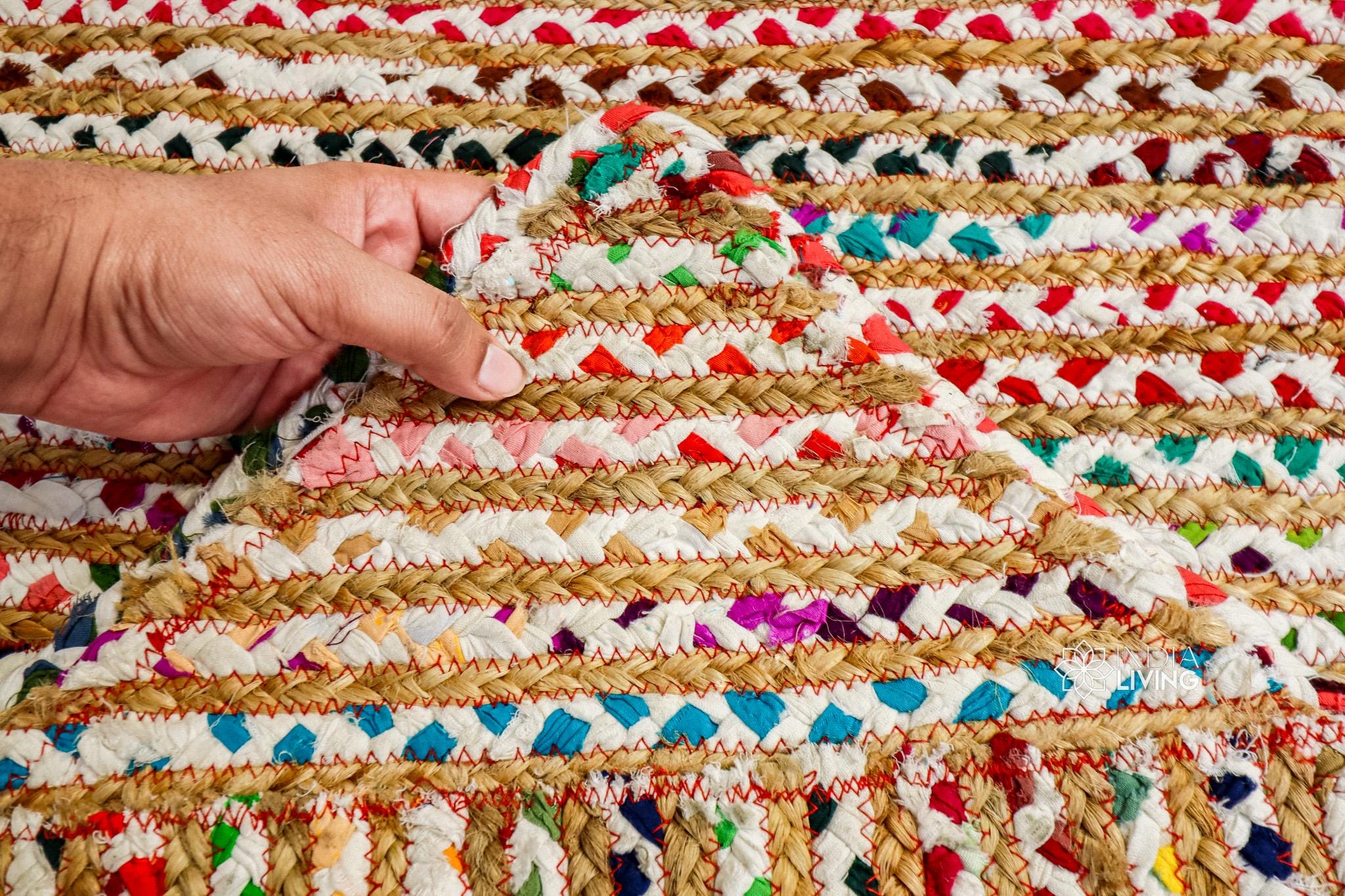 Introducing our Jute Chindi Rag Rug, a beautiful and eco-friendly addition to your home decor. Handcrafted from natural jute fibers and recycled cotton fabric strips, this rug features a stunning combination of textures and colors that enhance any room.