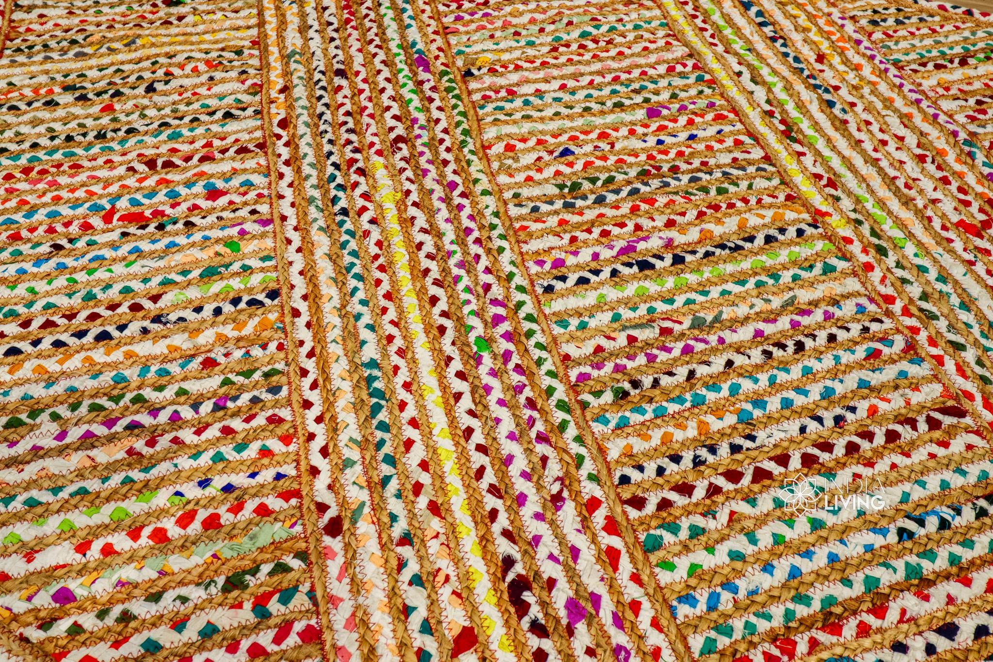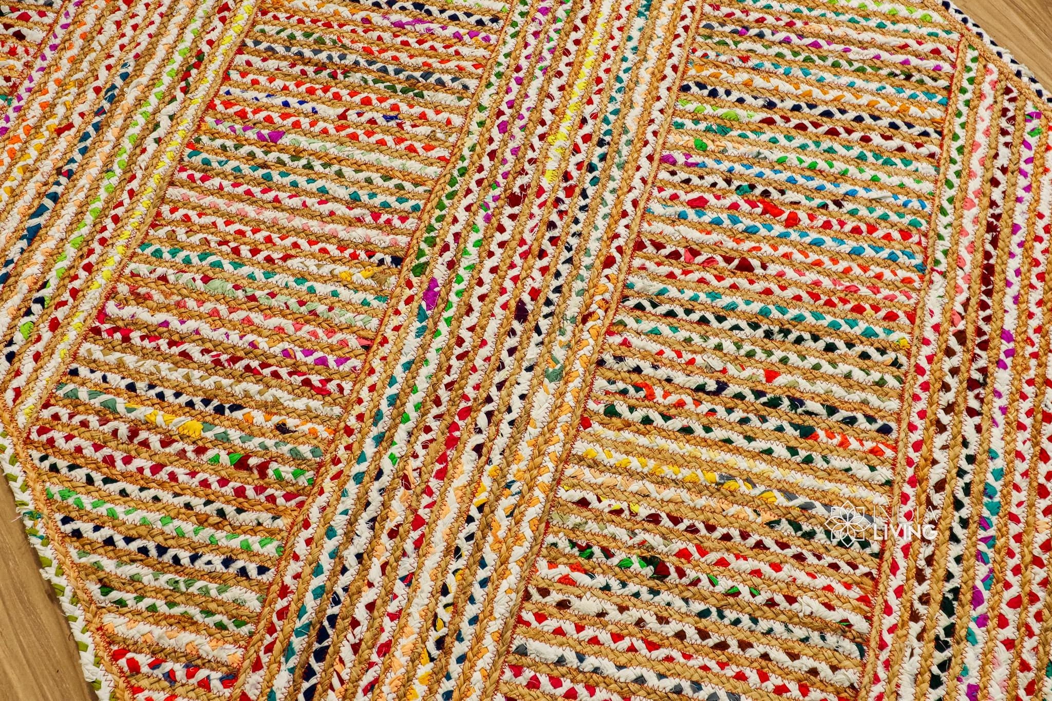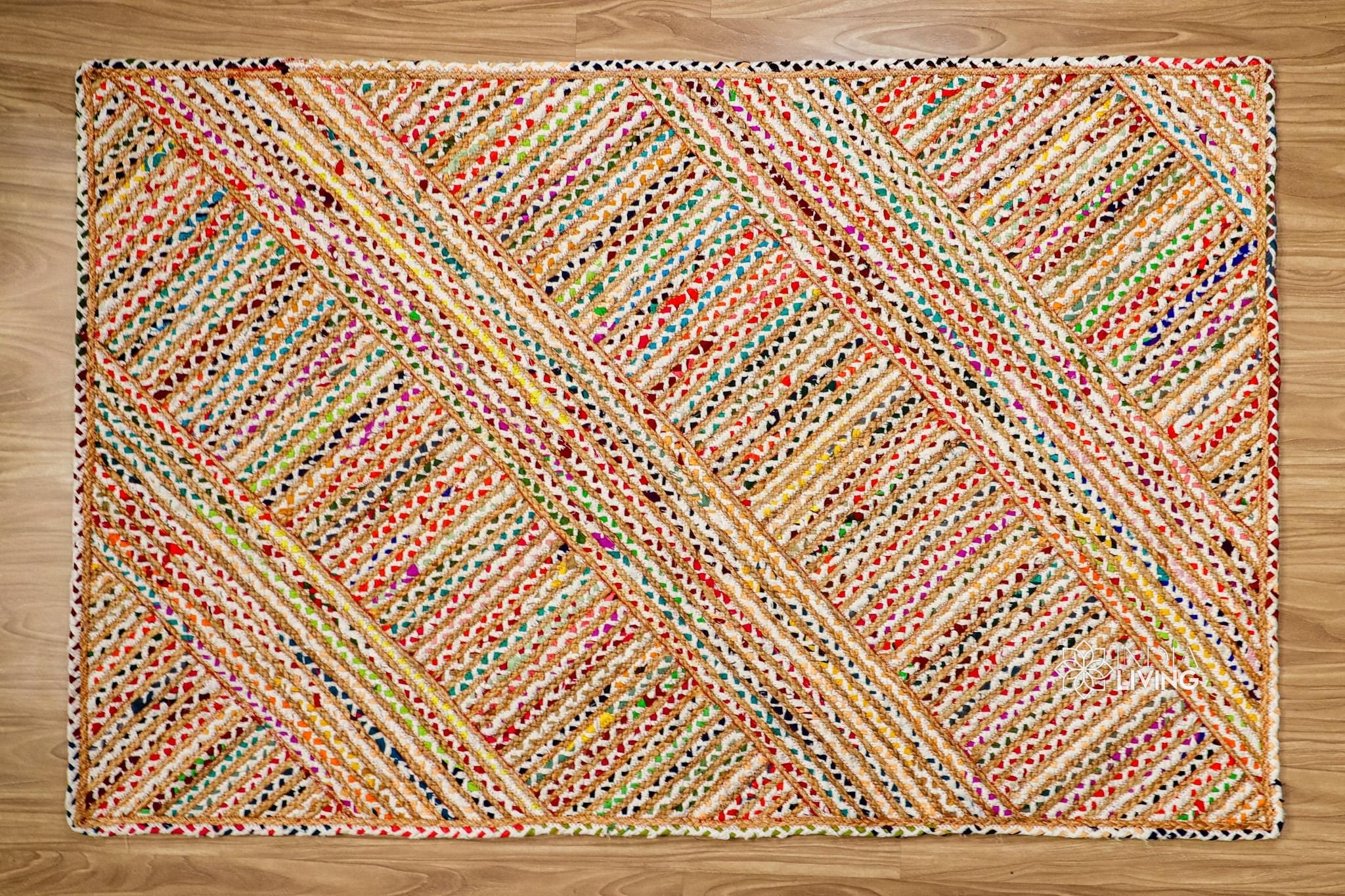 Rainbow Striped Jute Rag Rug: Hand Braided Chindi Home Decor