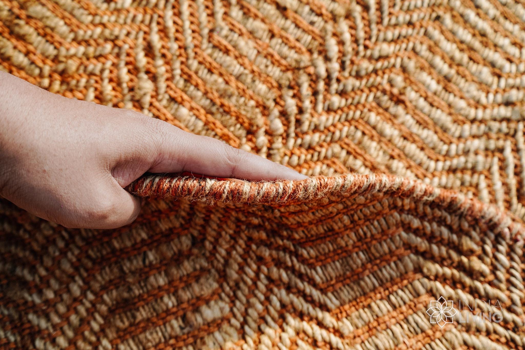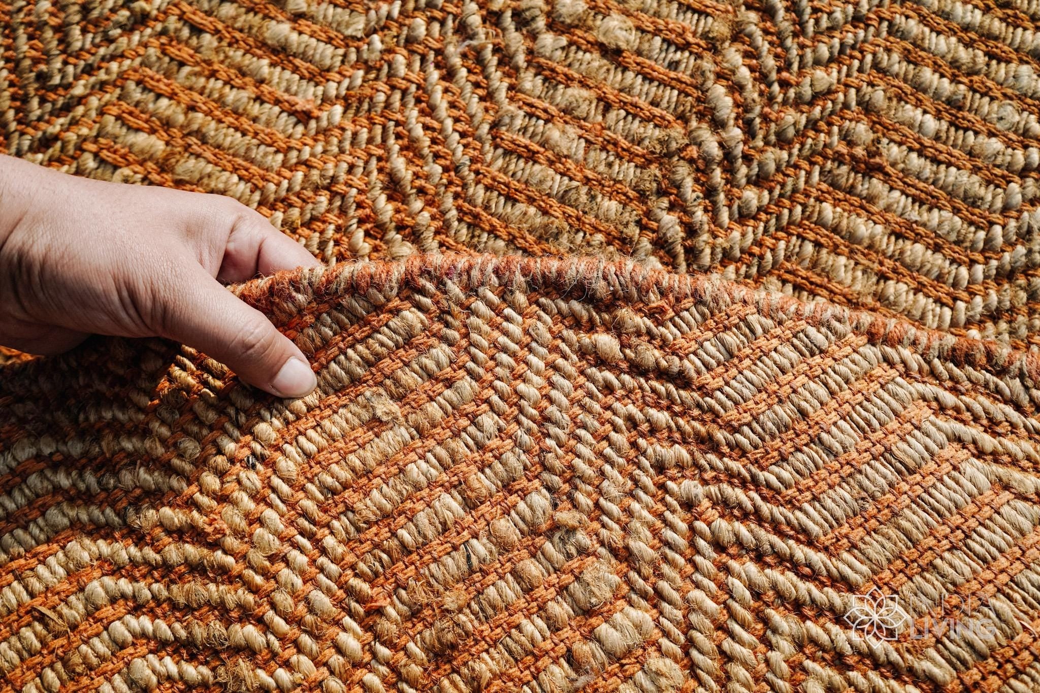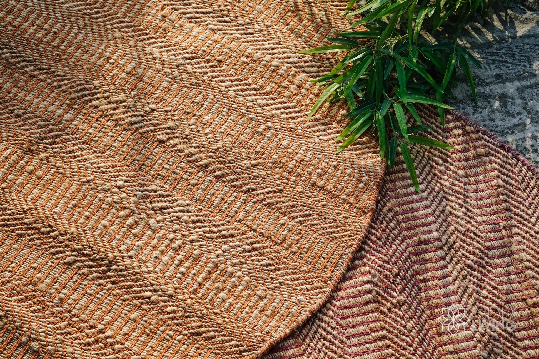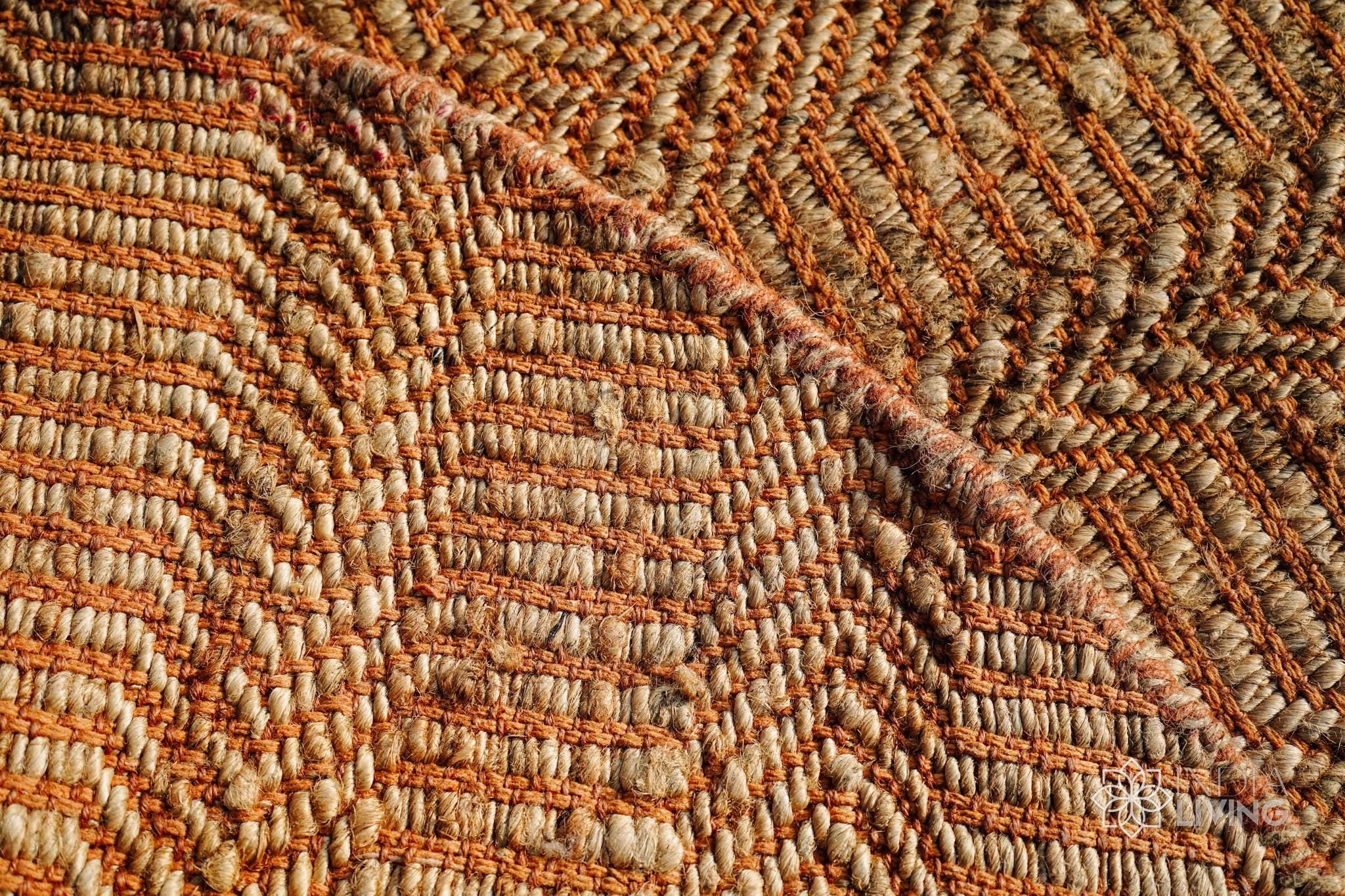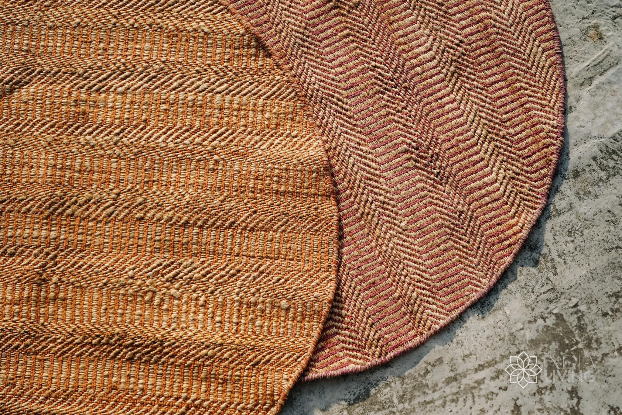 Natural Orange Round Jute Rug, Hand Woven Round Eco-Friendly Decor Natural fibre rug, Custom made in all sizes