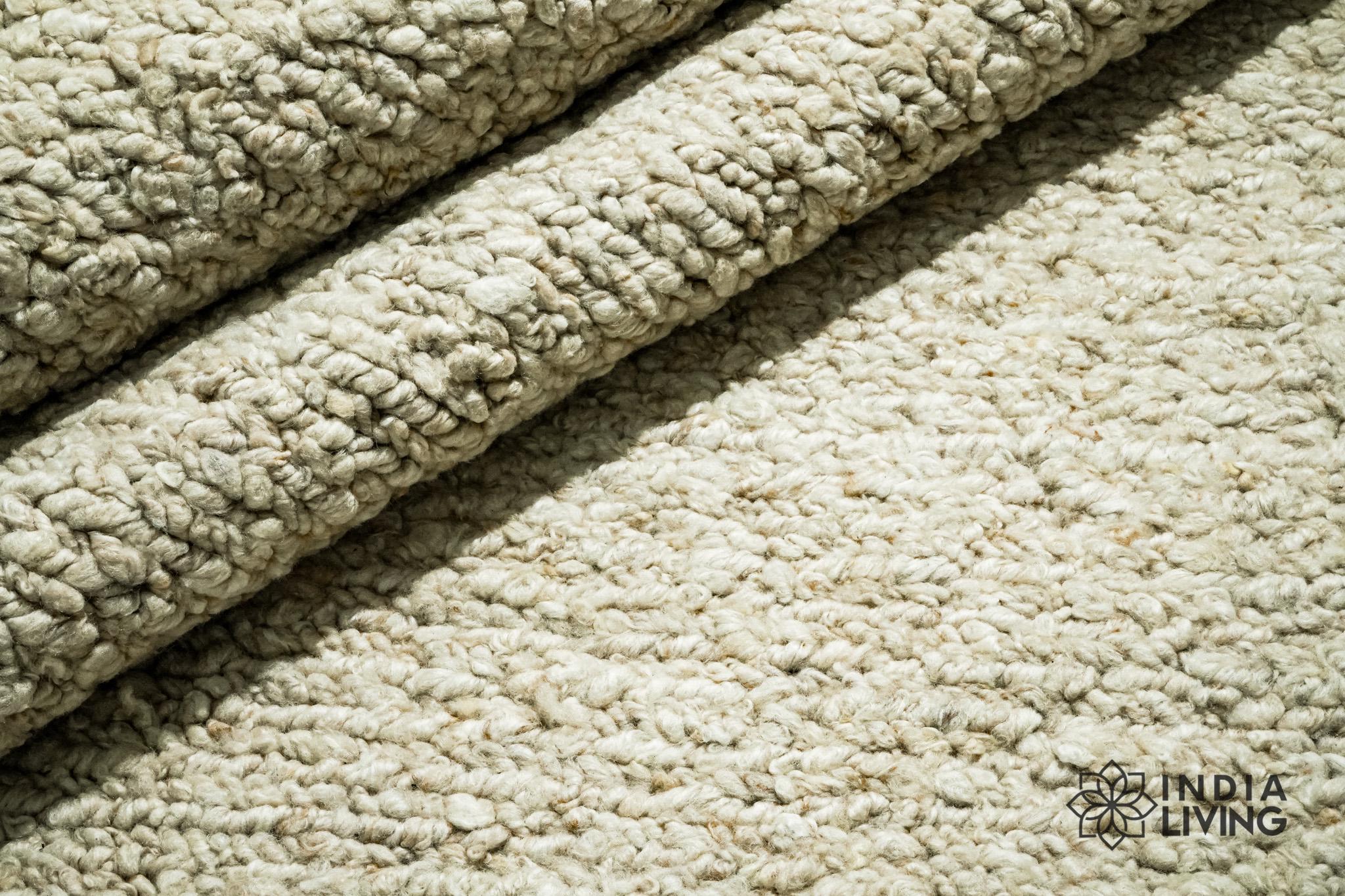 Handwoven Light Beige Wool Texture Rug: Scandinavian Custom made Carpet, Soft Pile