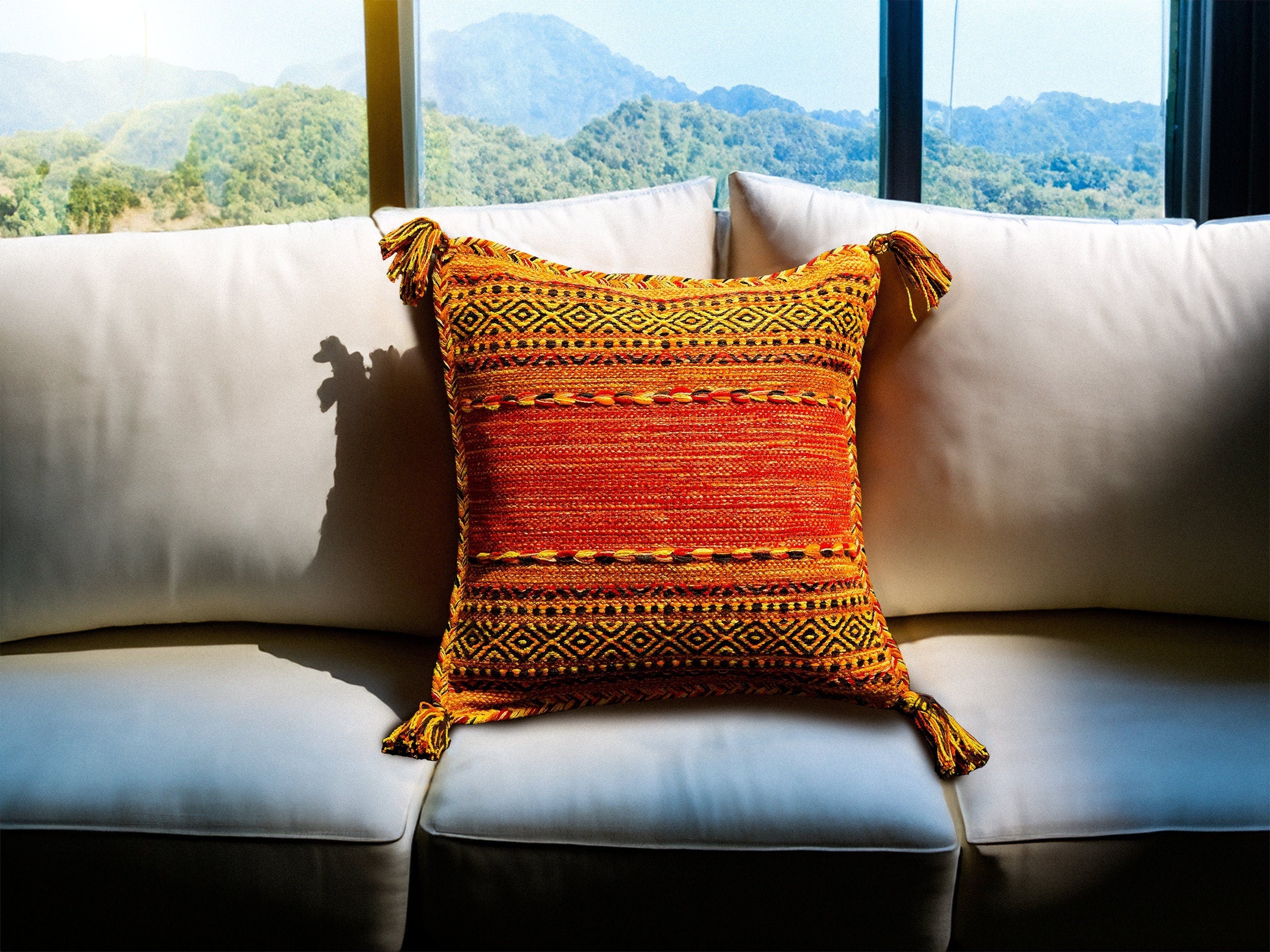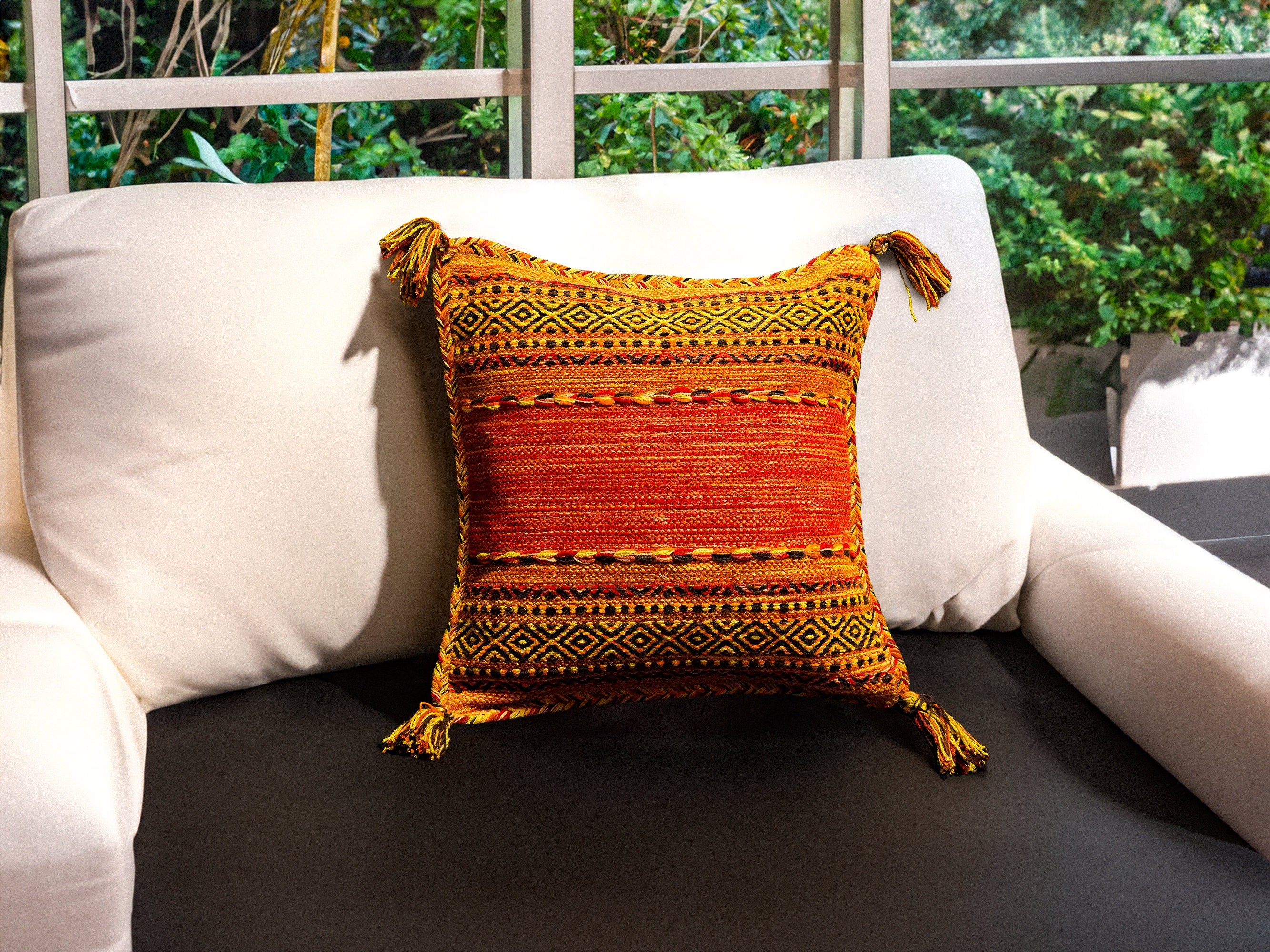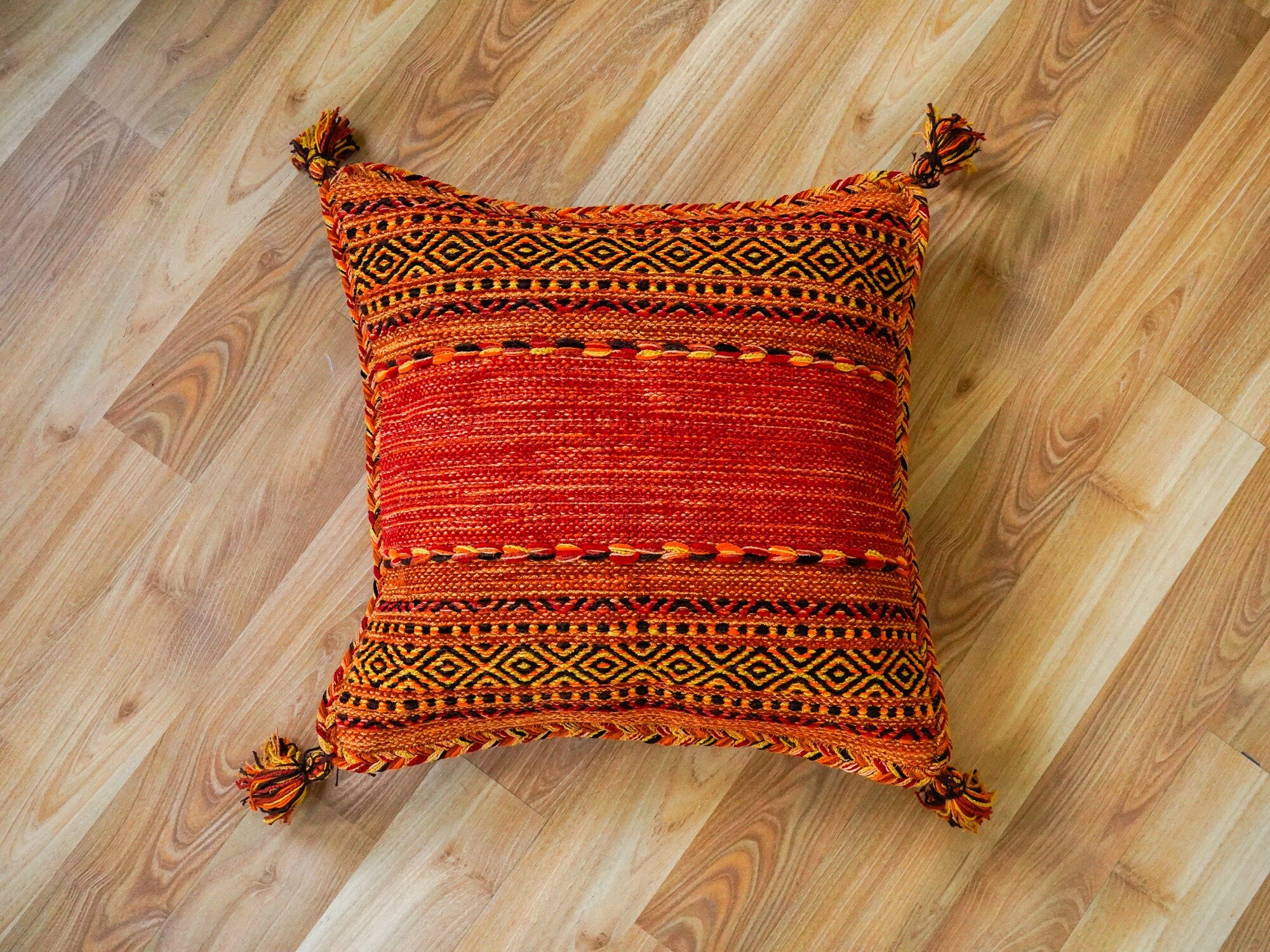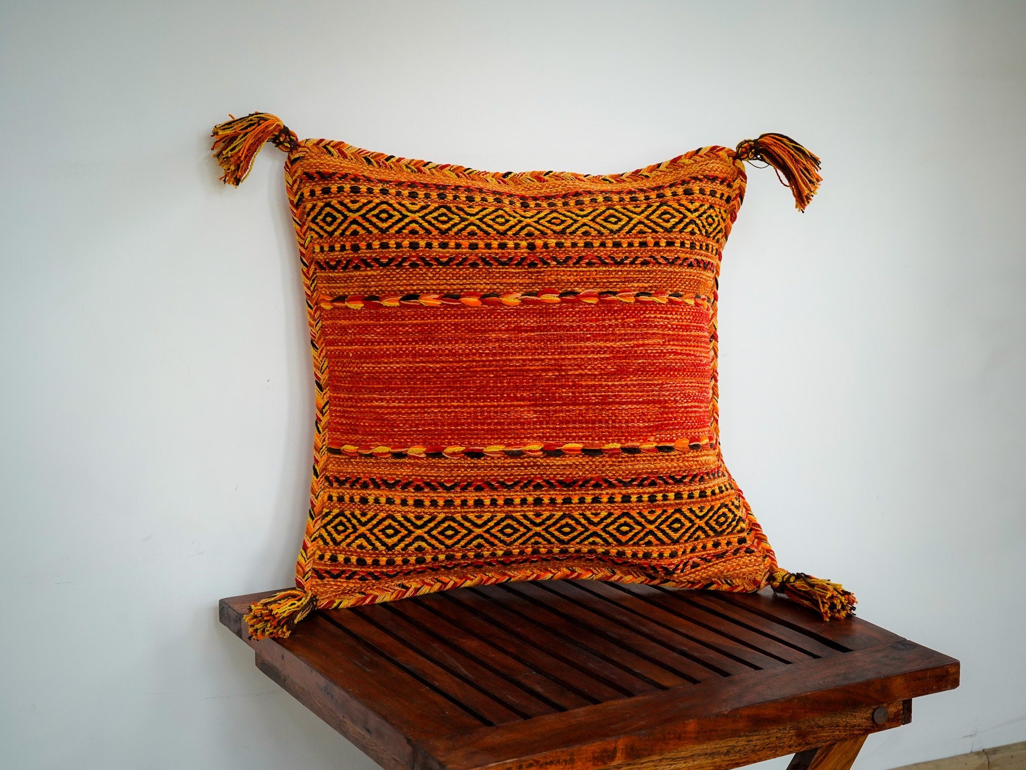 Orange Moroccan Kilim Cushion set/Bundle, Sofa Pillow Cover set, Boho Decor Handcrafted Indian Traditional Decorative Cushion Cover set