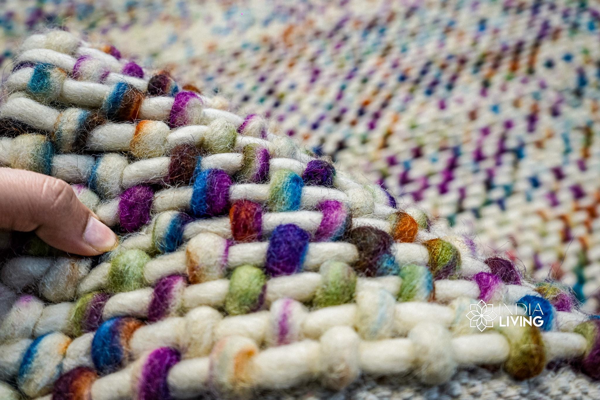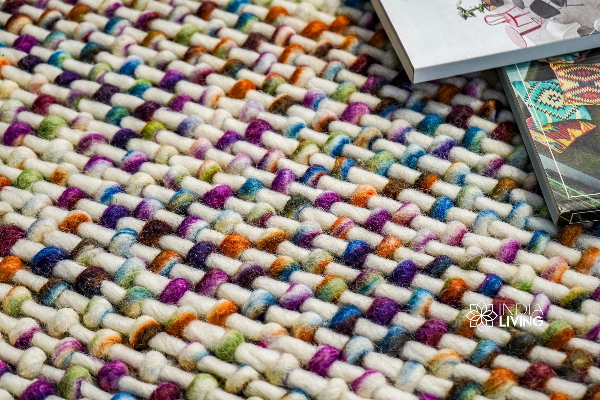 Rainbow Blended Chunky Basket Knit Style Premium wool rug, Vibrant, Pet-friendly, Customization available