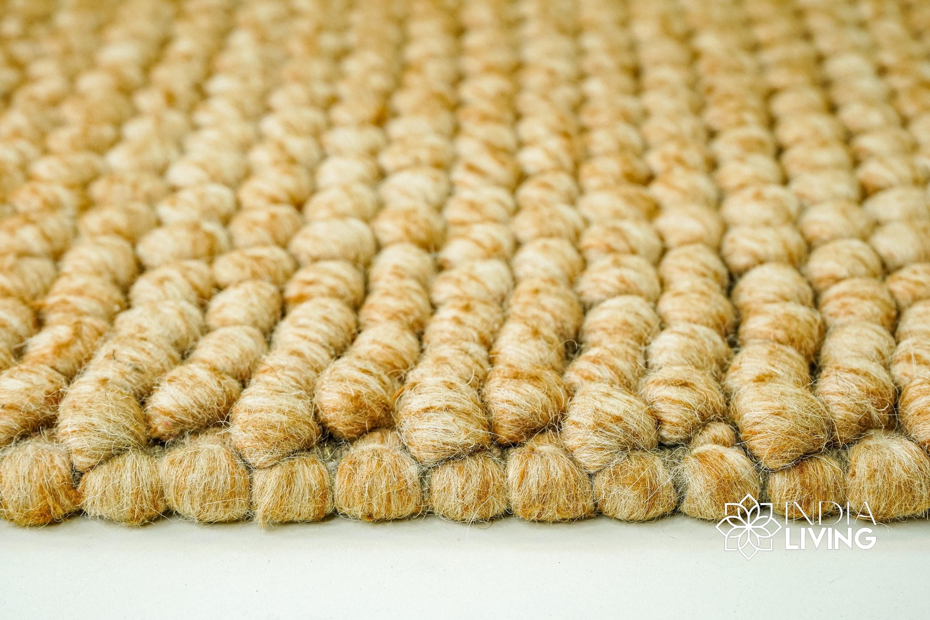 Tan Beige Wool Rug - Custom made Handwoven Chunky Carpet - Thick Pile & Pet-Friendly Home Decor | Premium Fluffy Area Rug