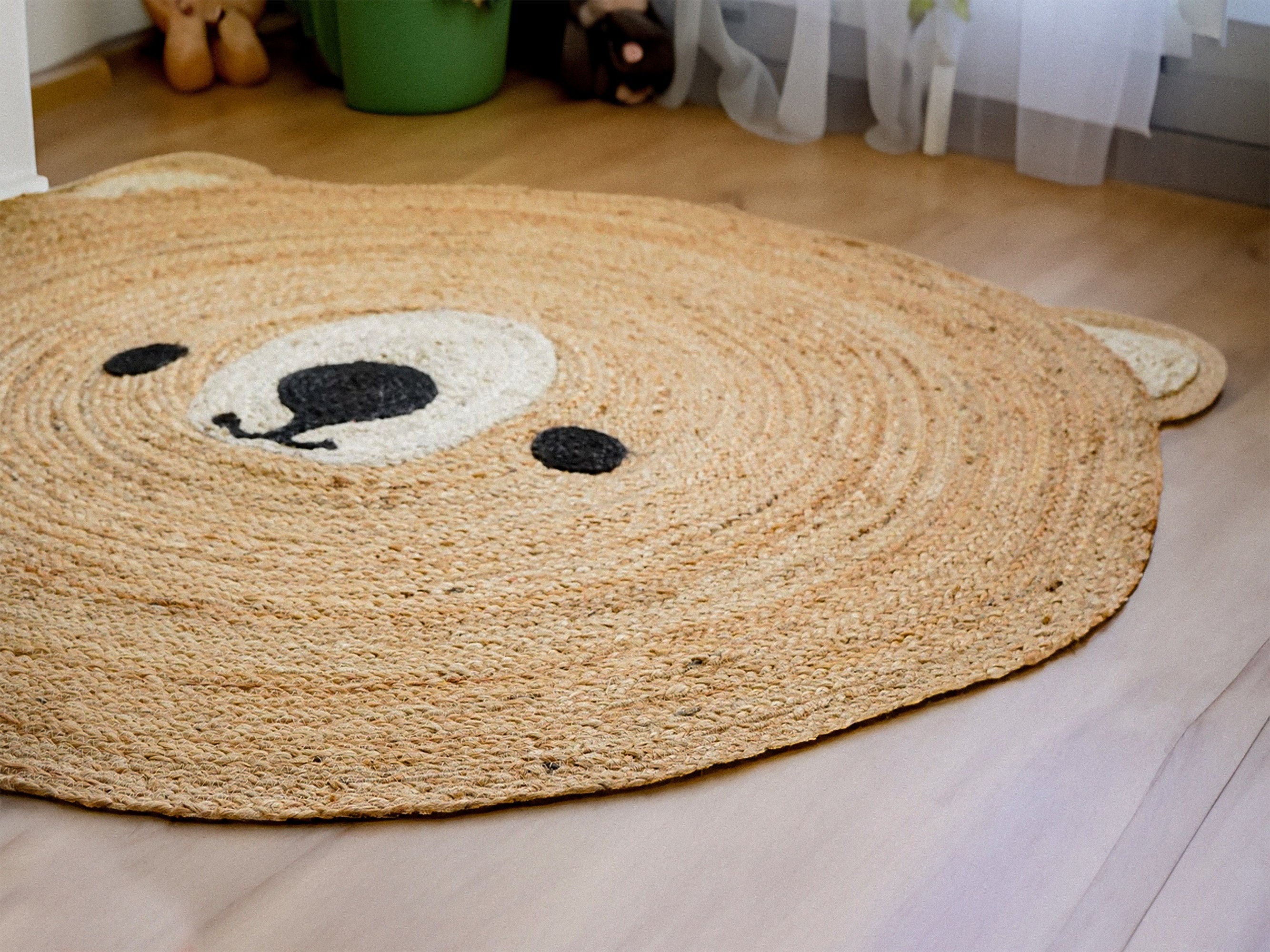 Teddy Rug, kids Nursery Mat, Jute Round Mat - Perfect for Nurseries & Playrooms - Eco-Friendly - Sustainable - Pet Friendly decor