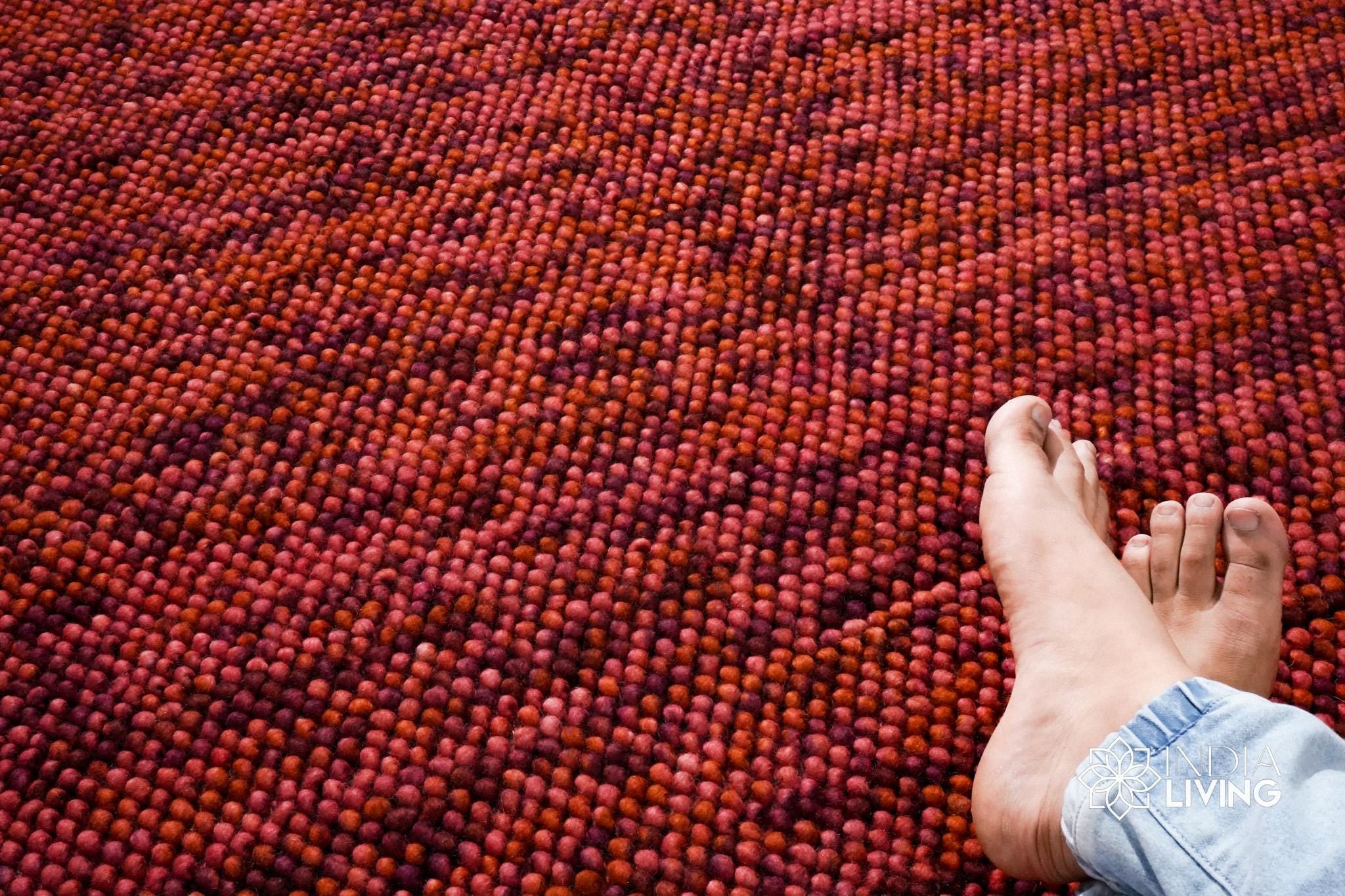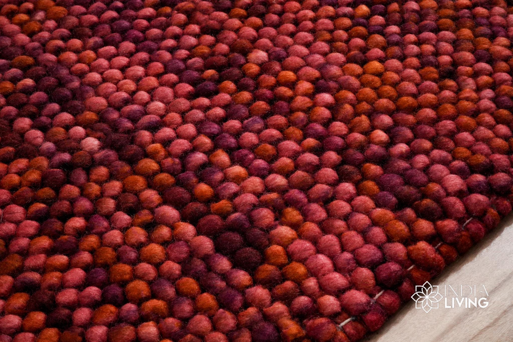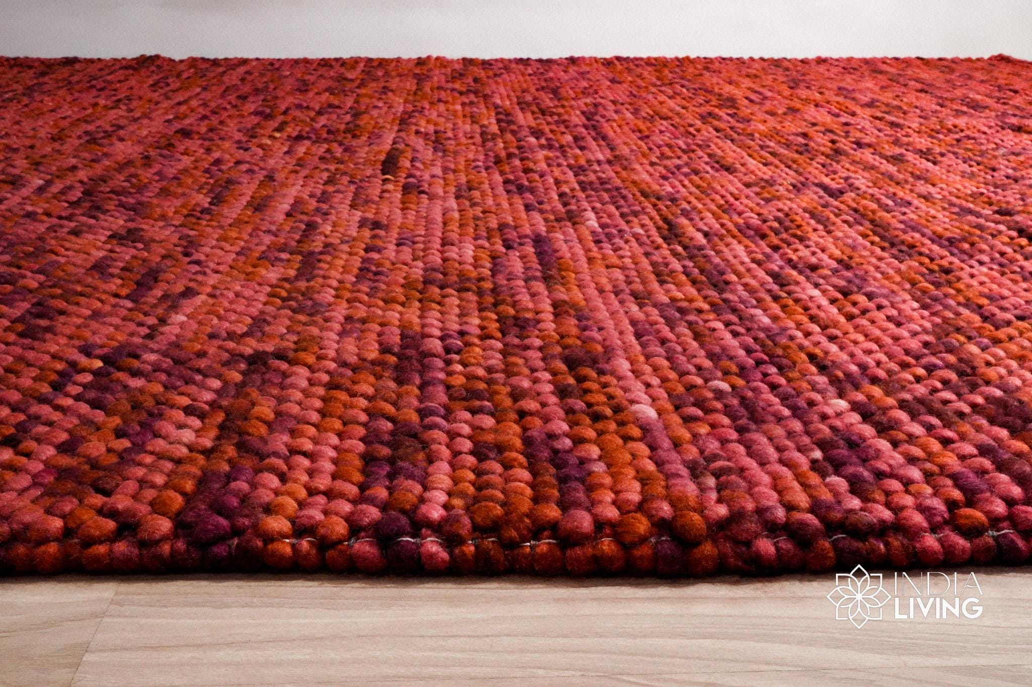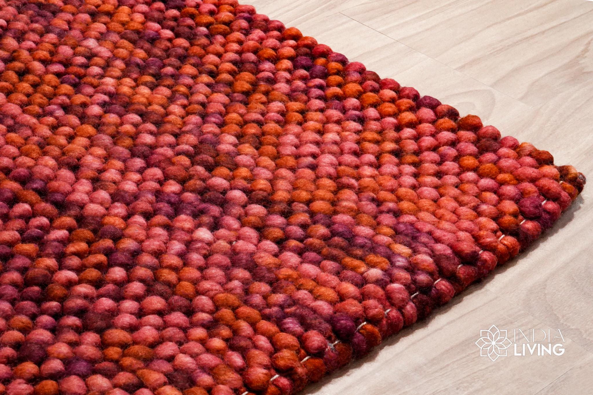 Terracotta Red Wool Rug, Handwoven Chunky Bubble Thick Pile Pet-Friendly Carpet, Custom made in all sizes