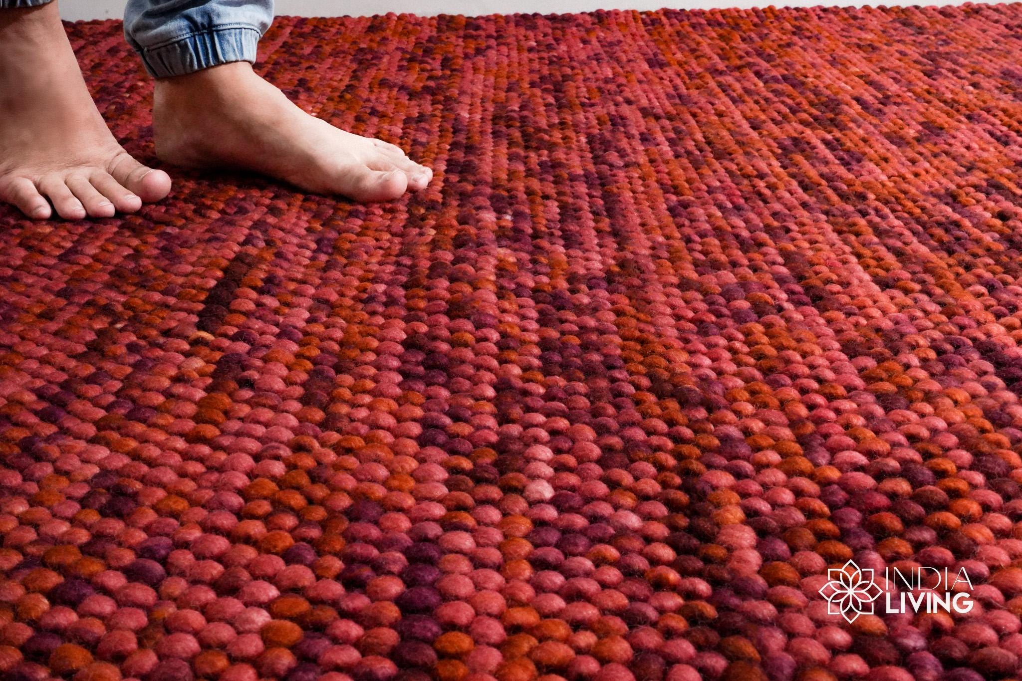 Transform your living space with our colourful custom made wool rug, meticulously crafted from premium felted chunky wool for a plush, thick pile experience. Available in many colours, this handwoven carpet not only adds vibrancy to any room but also features a pet-friendly design, ensuring durability and comfort for your furry friends. The tactile nature of the wool provides a soft underfoot feel, while its vibrant hues create an inviting atmosphere, making it an ideal choice for both contemporary and traditional decor.